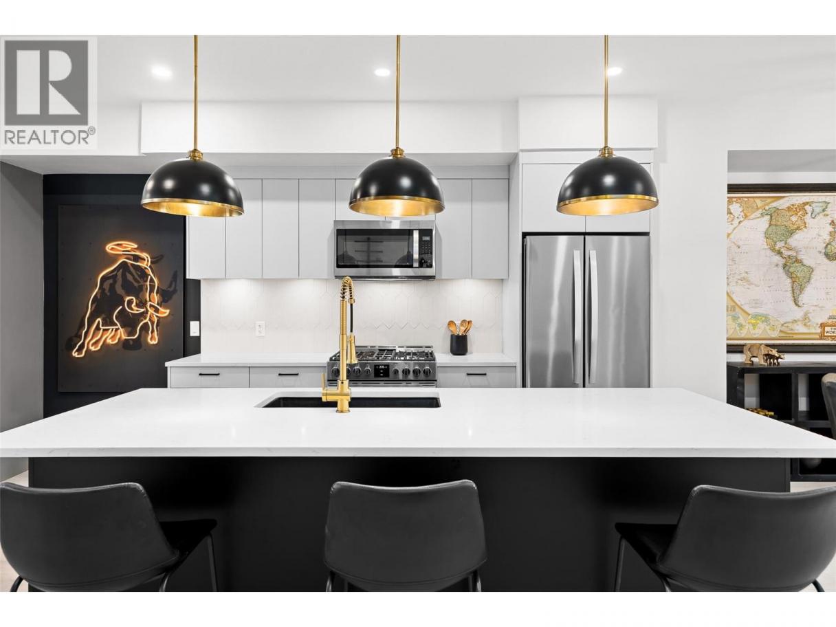 $75K in updates elevate this modern 3 bed/ 3 bath townhouse in The Nest at Findlay, ideally tucked into a quiet area of Rutland North with future development planned nearby. The open-concept main level features updated flooring, a statement kitchen island unique to the unit, upgraded lighting and plumbing fixtures, added blinds for privacy, and a gas range that anchors the kitchen as a true gathering space. The home showcases a sleek, masculine colour palette throughout and a thoughtful three-level layout with living spaces on the main, all bedrooms on the upper floor, and direct access to the attached double-car garage below - complete with EV chargers. On the upper level, the spacious primary bedroom offers a walk-in closet and a beautifully upgraded ensuite with heated floors, complemented by two additional bedrooms and a full bath. This newer build is ideally located close to transit, the highway, and the airport, blending quiet residential living with everyday convenience. Opportunities like this don’t last - contact our team today to book your private viewing today! (id:6769)