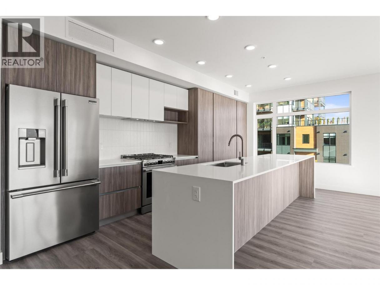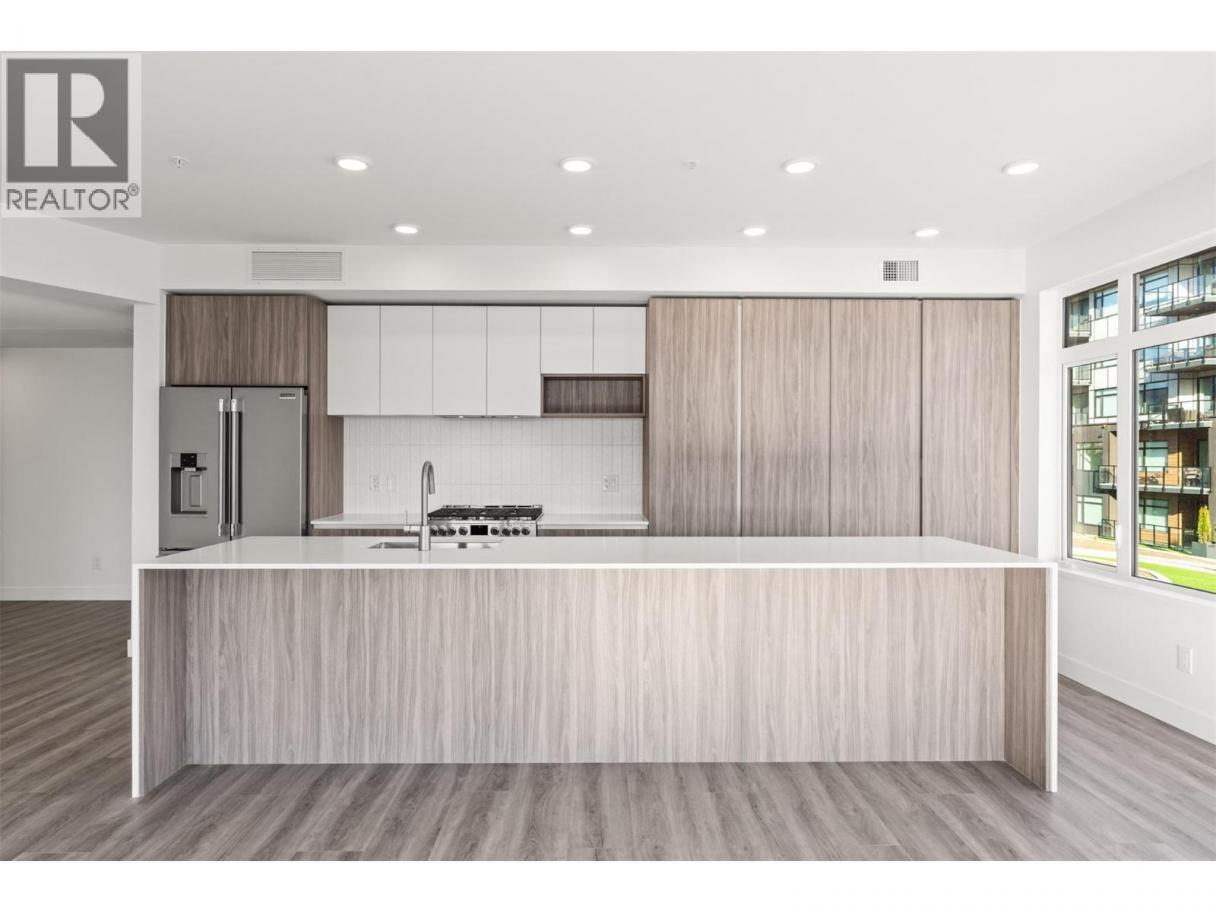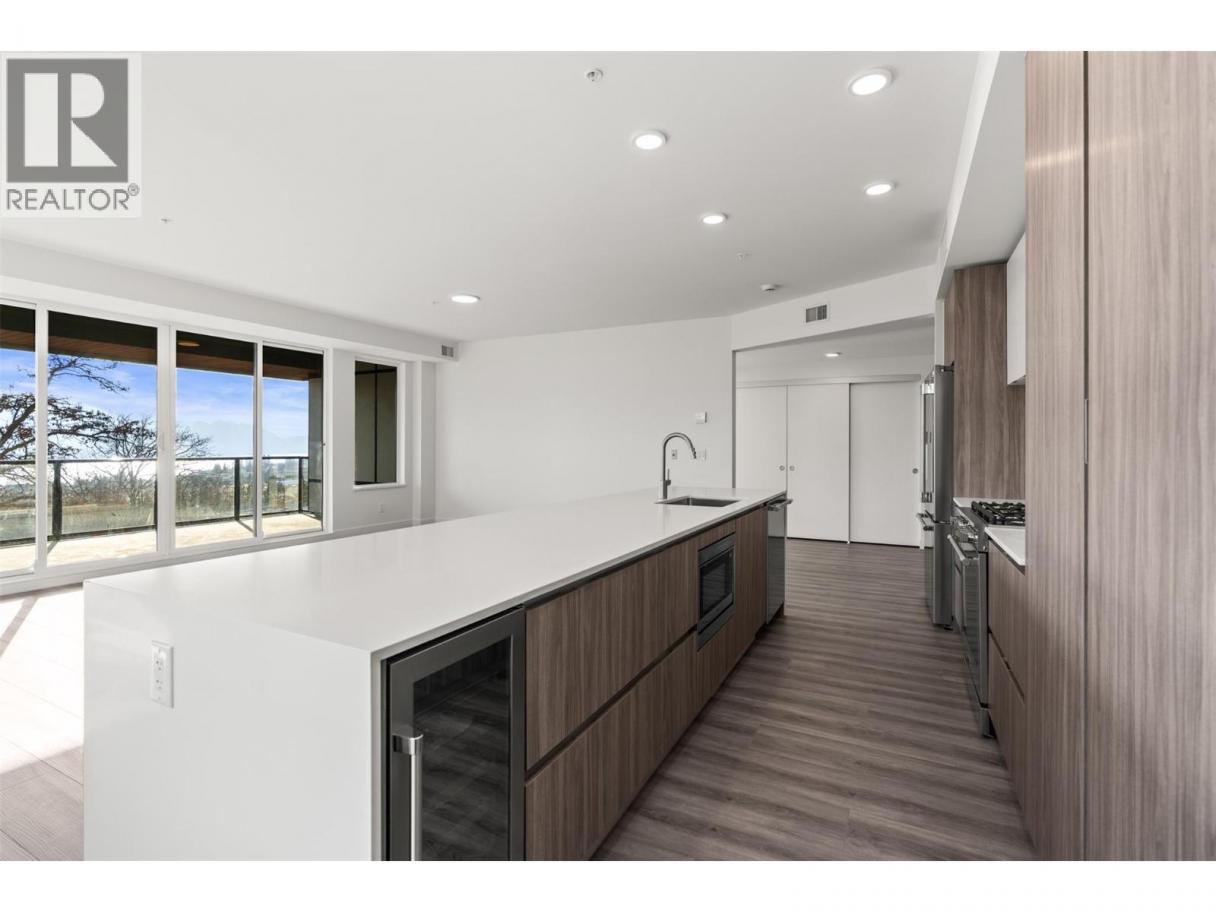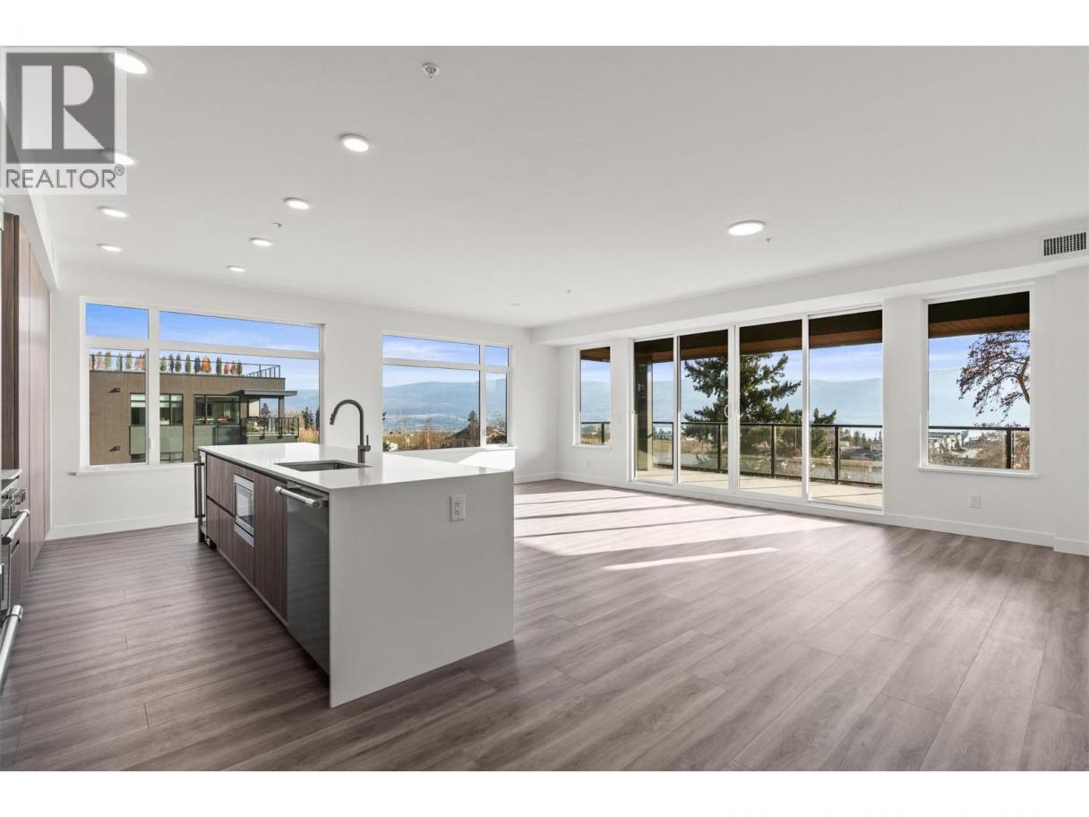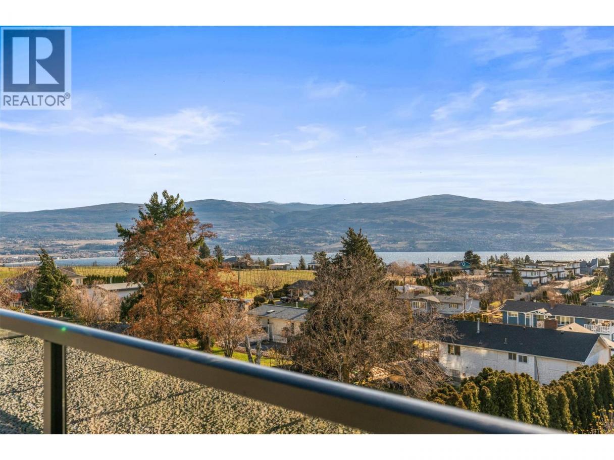 Indulge in elevated Okanagan living in this HUGE 2 bedroom + den, 2 bathroom corner home where inspired design meets spectacular scenery. An expansive wraparound deck showcases views of the lake, vineyards, and mountains, while floor-to-ceiling windows flood the interior’s 1549 sf with natural light from dawn to dusk. Two parking stalls & two storage lockers make this residence perfect for downsizers. The showpiece of the home is a chef-worthy kitchen highlighted by an oversized quartz island with waterfall edge. Premium features include a gas cooktop, built-in wine fridge, pantry wall, microwave, custom drawer organizers, imported Italian cabinetry, & seamless luxury vinyl plank flooring throughout. The thoughtfully planned layout positions the bedrooms on opposite sides of the residence, providing privacy for both owners and guests. The primary retreat offers fabulous water & vineyard views, a walk-through closet, and a spa-inspired ensuite complete with heated tile floors. Additional highlights include a generous balcony, and pet-friendly living for up to 2 pets. Residents enjoy resort-style amenities including an onsite greenhouse, outdoor pool and hot tub, fitness centre, dog wash, community gardens, secure parcel delivery, and Butterfly entry system. Perfectly situated steps from a new community centre, school, bistro, market, & sports court & just minutes from beaches, boat launches, and renowned wineries—this home blends modern luxury with the best of Okanagan living. (id:6769)