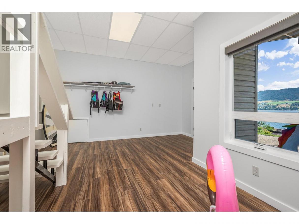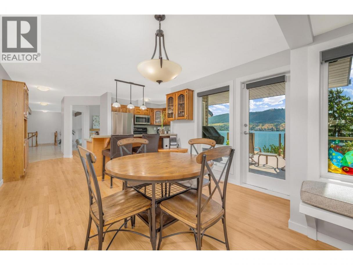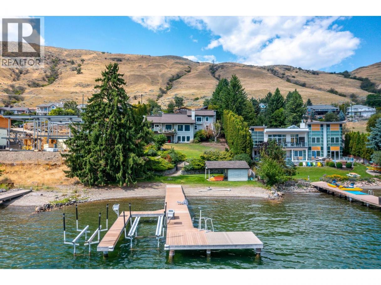 Welcome to your private 0.65-acre waterfront retreat on Okanagan Lake. This gated, multi-level home offers 98 feet of prime lakefront with a private dock and two boat lifts. With 5 bedrooms, 4 bathrooms, and a 2-bay garage, there’s space for family and guests. Car enthusiasts will love the garage with newly epoxy-coated floors and a car hoist. Solid core doors throughout enhance quality and privacy, while the three-level layout maximizes space. The primary suite crowns the top floor with lake views, a walk-in closet, and 3-piece ensuite. Both the main and lower levels feature two bedrooms each, separated by a full bathroom—ideal for family or guests. The bright, open kitchen with breakfast nook flows to a formal dining room for effortless entertaining. An oversized living room with fireplace captures panoramic lake views, while the lower-level family room offers flexible space for media or games. Outside, the fully fenced and irrigated yard is beautifully lit, with lighting controls conveniently located inside—ideal for family life, pets, and entertaining. At the water’s edge, the private dock features 8,000-lb and 6,000-lb lifts. A beachside shed and covered patio create a lakeside retreat. Swim, paddle, or cruise from your backyard. A rare opportunity for space, privacy, and true Okanagan lakefront living. (id:6769)