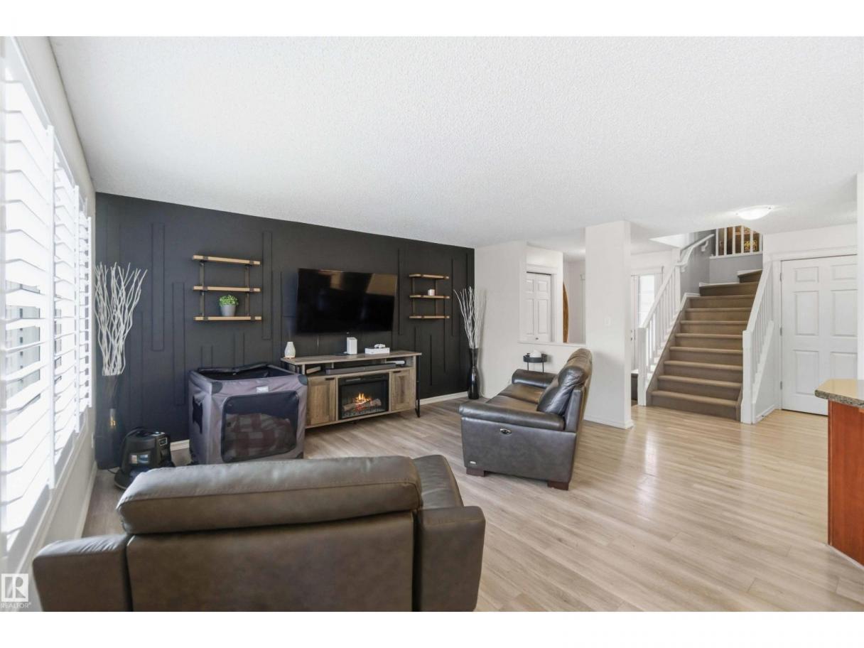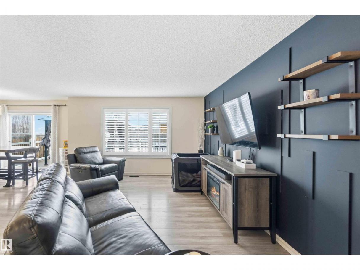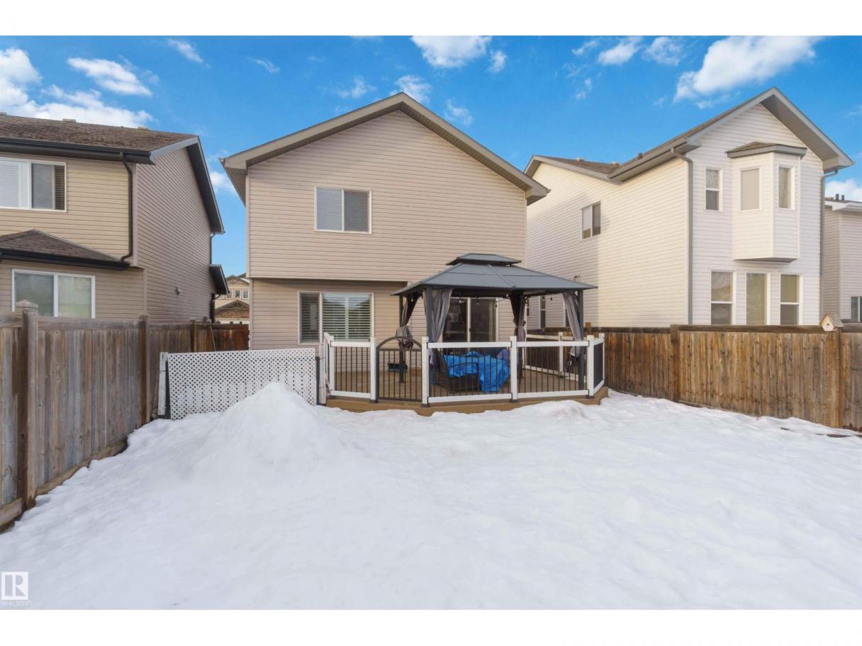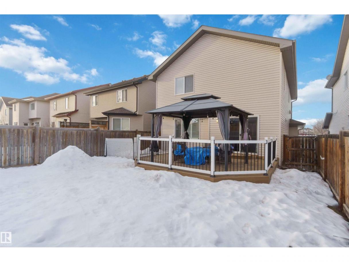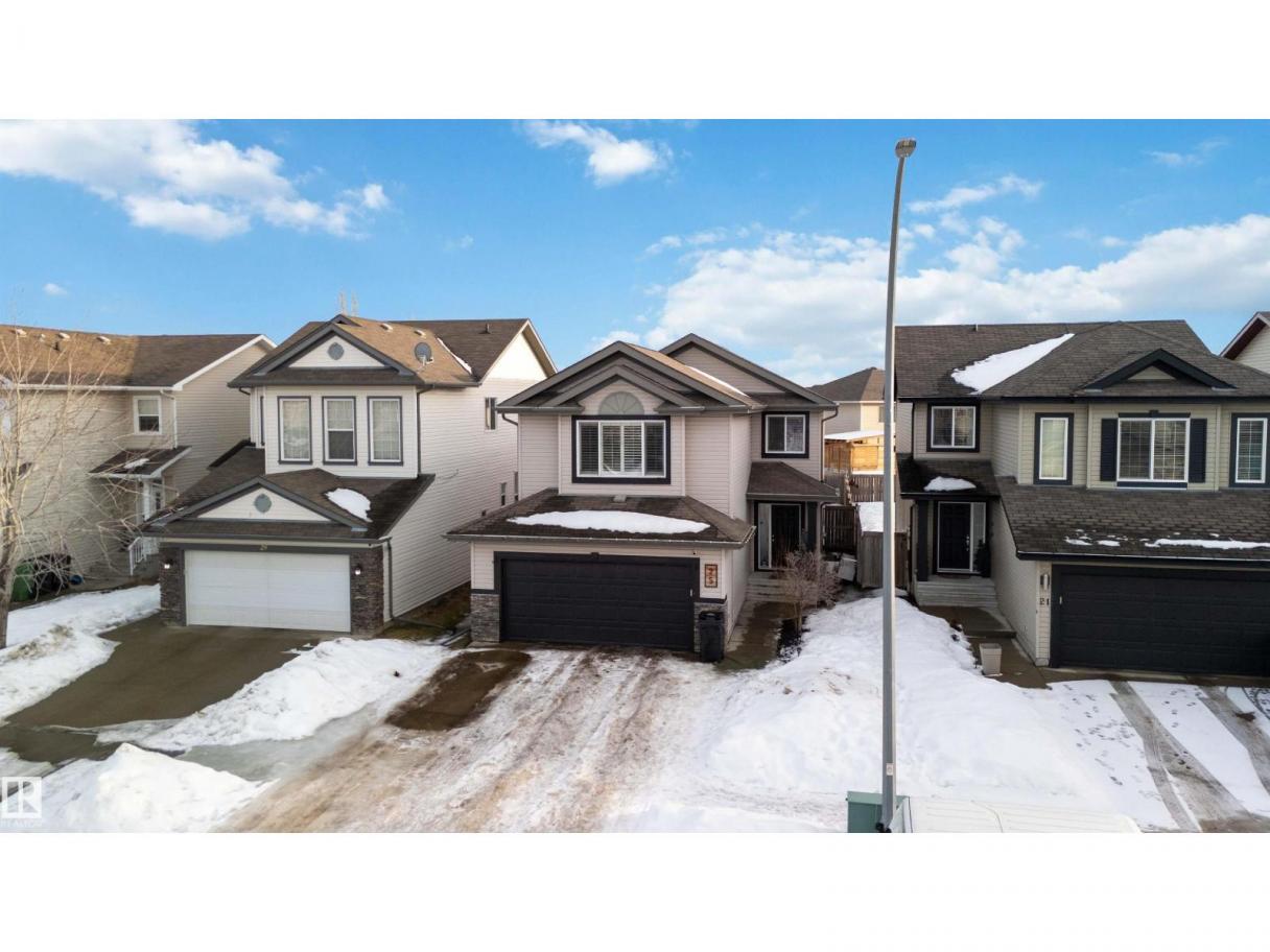 Welcome to this well-maintained two-storey home in Fort Saskatchewan. The main level features a spacious kitchen with rich dark cabinetry and stainless steel appliances, flowing into a bright living area filled with natural light from large windows. This floor also includes a convenient two-piece bathroom and a generously sized laundry room. Upstairs, the primary bedroom offers a comfortable retreat complete with a large private ensuite. Two additional bedrooms and a full four-piece bathroom round out the upper level. The finished basement adds valuable living space with a cozy family room and an additional bedroom—ideal for guests, a home office, or a growing family. Outside, enjoy the fully fenced and landscaped backyard with a deck just off the back door, perfect for relaxing or entertaining. All this home needs is YOU! (id:6769)