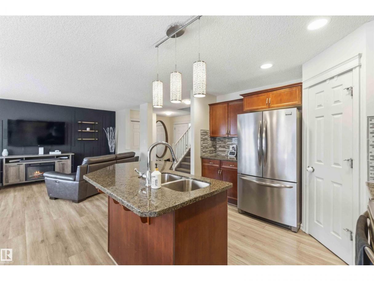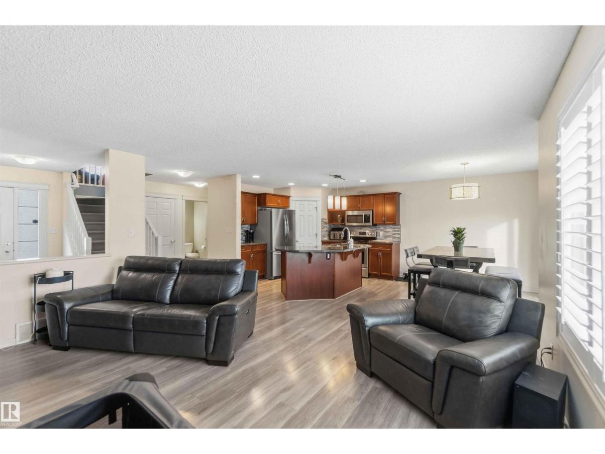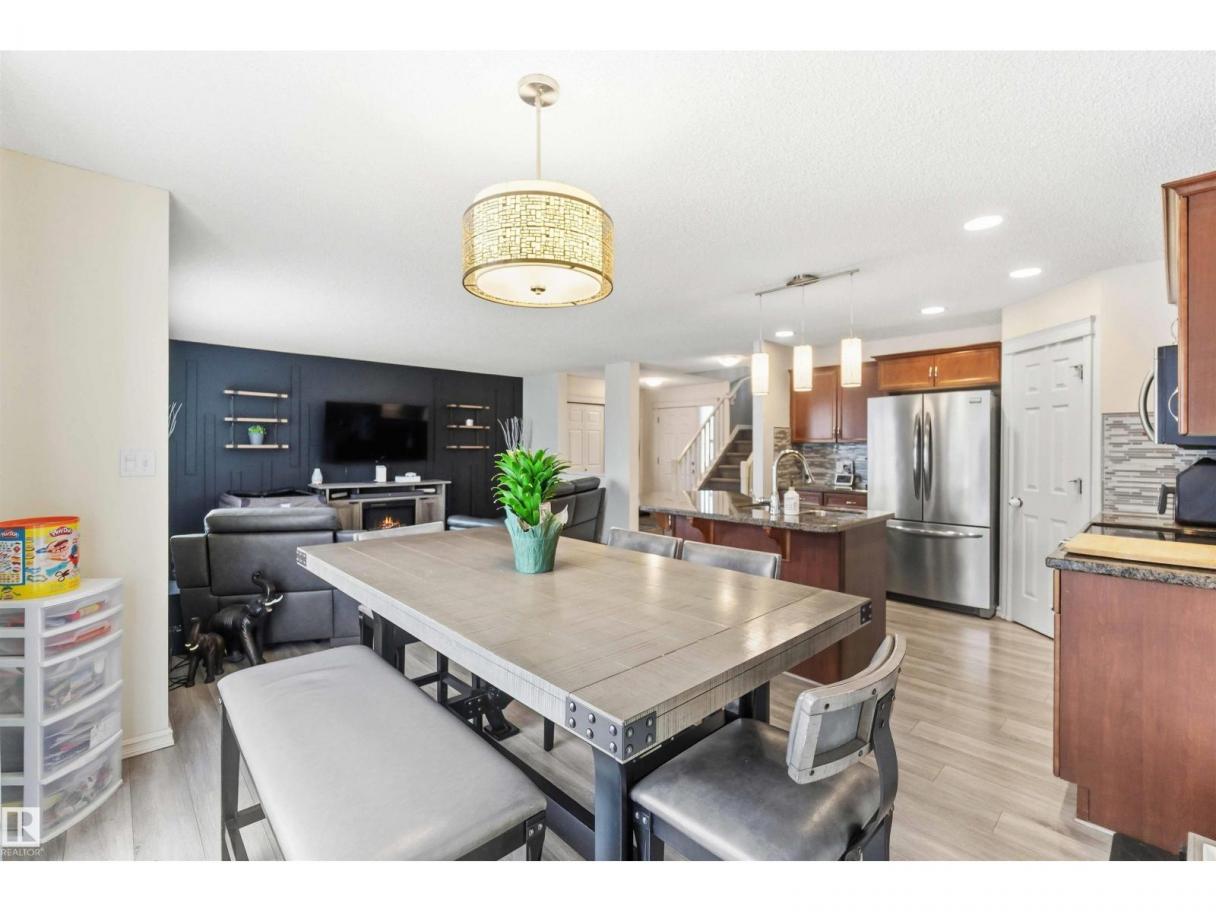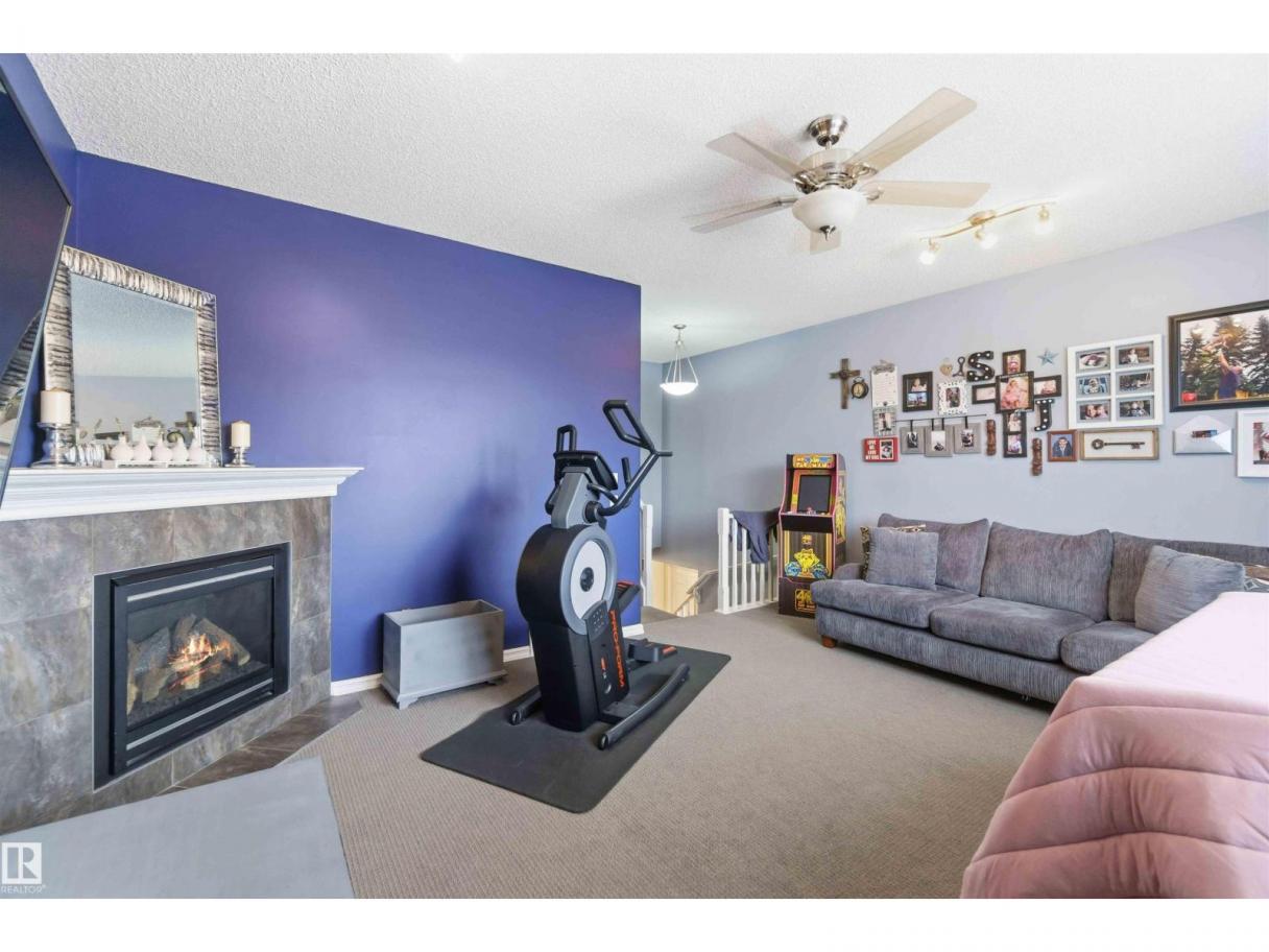 Welcome to this well-maintained two-storey home in Fort Saskatchewan. The main level features a spacious kitchen with rich dark cabinetry and stainless steel appliances, flowing into a bright living area filled with natural light from large windows. This floor also includes a convenient two-piece bathroom and a generously sized laundry room. Upstairs, the primary bedroom offers a comfortable retreat complete with a large private ensuite. Two additional bedrooms and a full four-piece bathroom round out the upper level. The finished basement adds valuable living space with a cozy family room and an additional bedroom—ideal for guests, a home office, or a growing family. Outside, enjoy the fully fenced and landscaped backyard with a deck just off the back door, perfect for relaxing or entertaining. All this home needs is YOU! (id:6769)