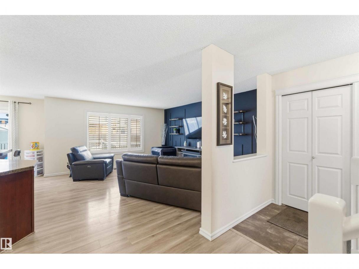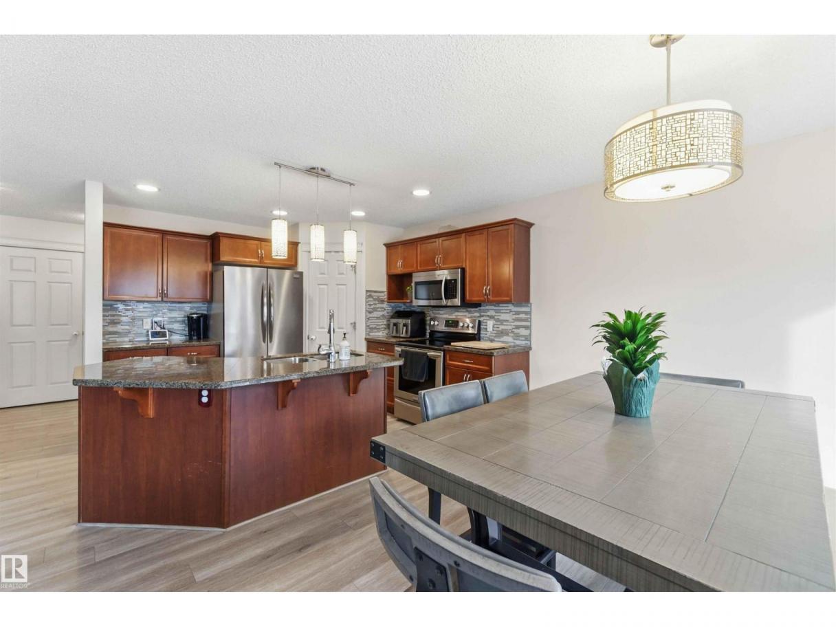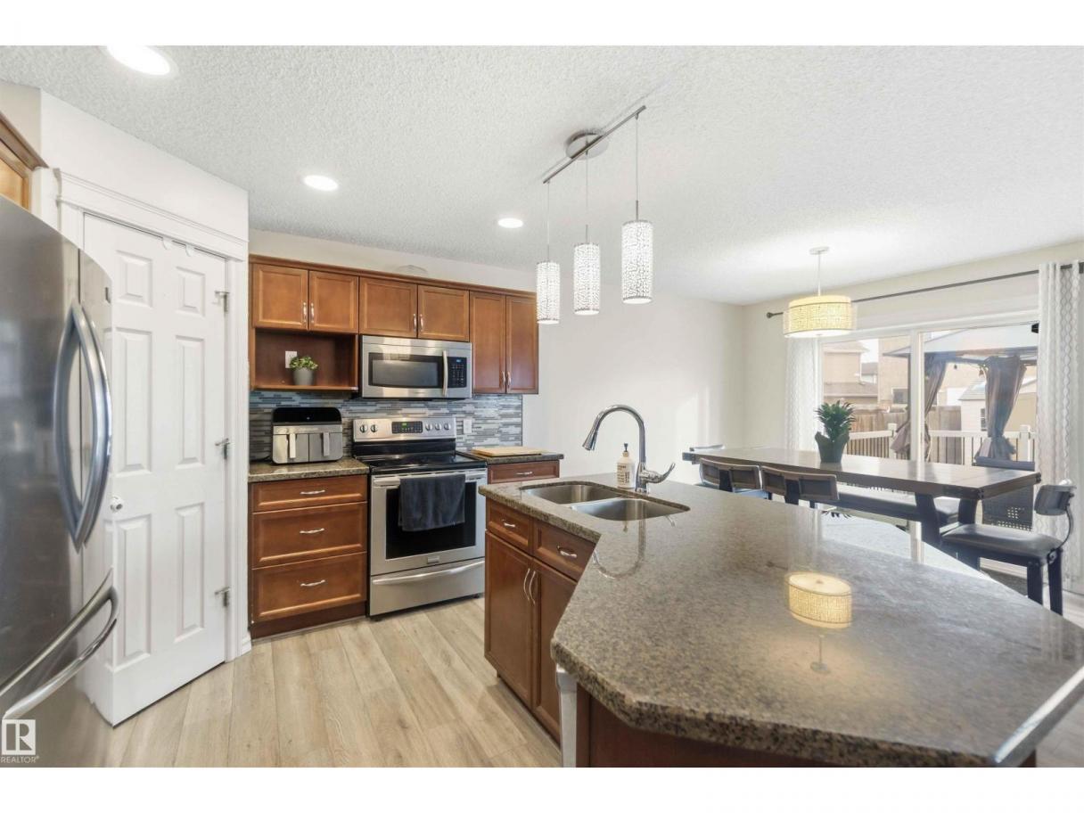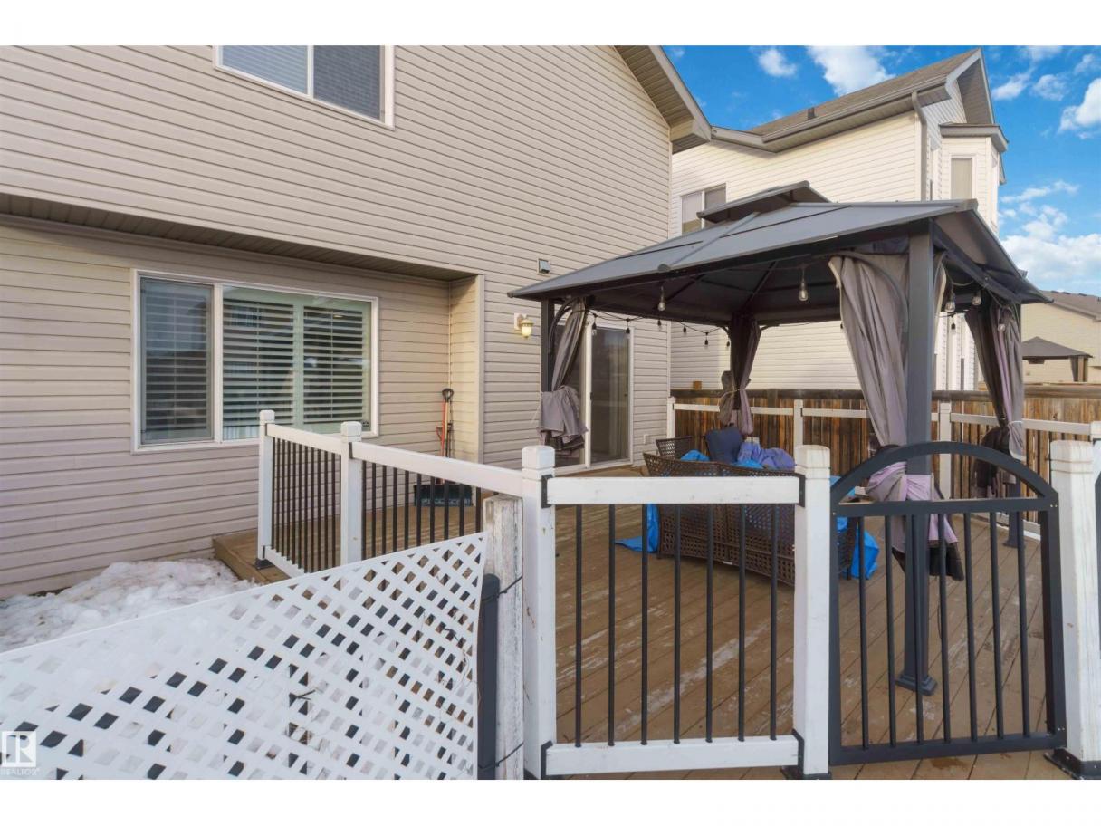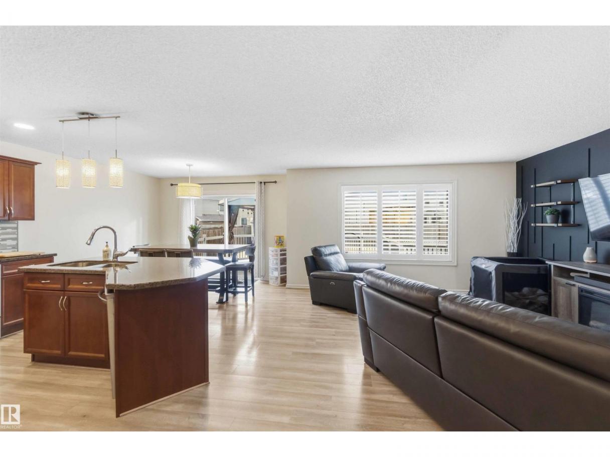Welcome to this well-maintained two-storey home in Fort Saskatchewan. The main level features a spacious kitchen with rich dark cabinetry and stainless steel appliances, flowing into a bright living area filled with natural light from large windows. This floor also includes a convenient two-piece bathroom and a generously sized laundry room. Upstairs, the primary bedroom offers a comfortable retreat complete with a large private ensuite. Two additional bedrooms and a full four-piece bathroom round out the upper level. The finished basement adds valuable living space with a cozy family room and an additional bedroom—ideal for guests, a home office, or a growing family. Outside, enjoy the fully fenced and landscaped backyard with a deck just off the back door, perfect for relaxing or entertaining. All this home needs is YOU! (id:6769)