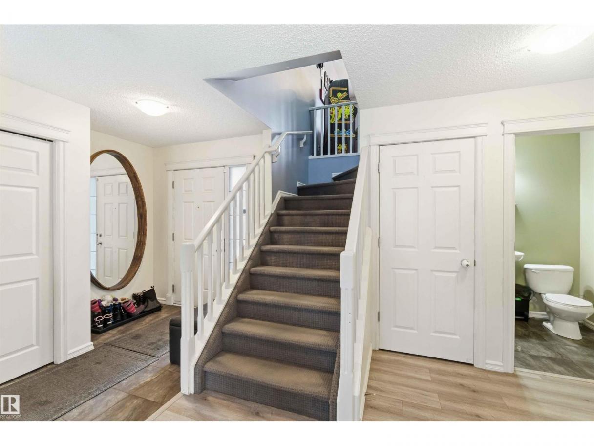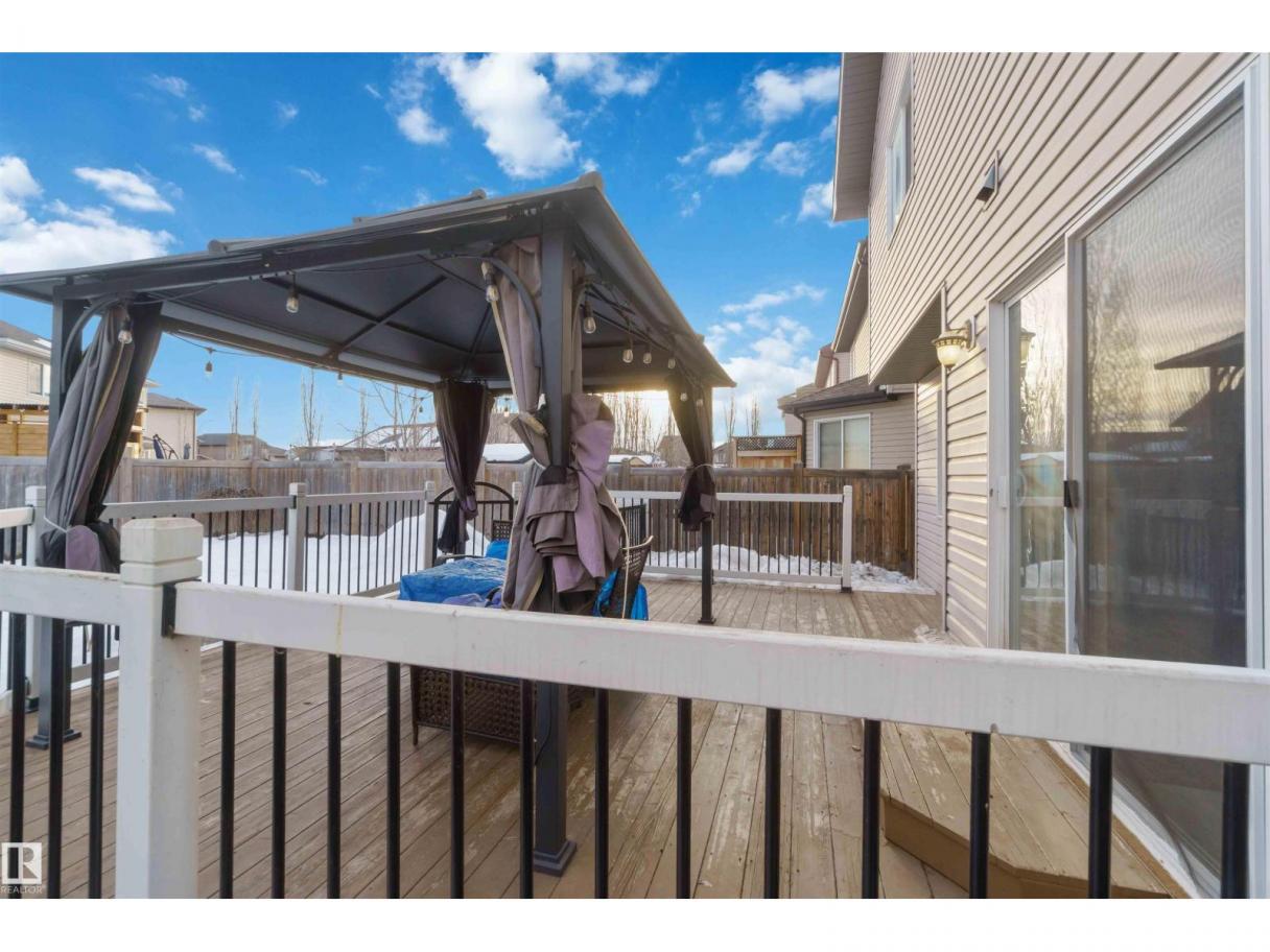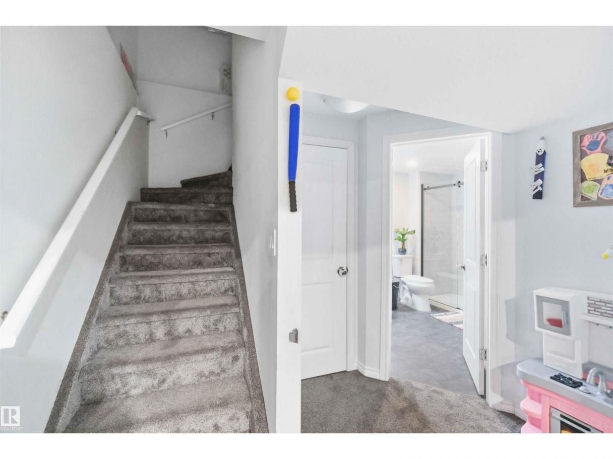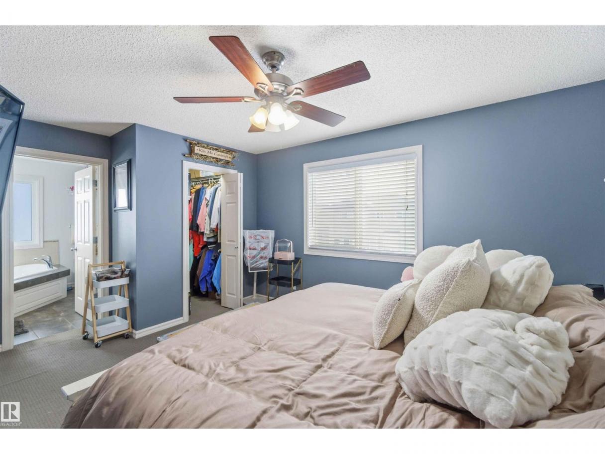 Welcome to this well-maintained two-storey home in Fort Saskatchewan. The main level features a spacious kitchen with rich dark cabinetry and stainless steel appliances, flowing into a bright living area filled with natural light from large windows. This floor also includes a convenient two-piece bathroom and a generously sized laundry room. Upstairs, the primary bedroom offers a comfortable retreat complete with a large private ensuite. Two additional bedrooms and a full four-piece bathroom round out the upper level. The finished basement adds valuable living space with a cozy family room and an additional bedroom—ideal for guests, a home office, or a growing family. Outside, enjoy the fully fenced and landscaped backyard with a deck just off the back door, perfect for relaxing or entertaining. All this home needs is YOU! (id:6769)