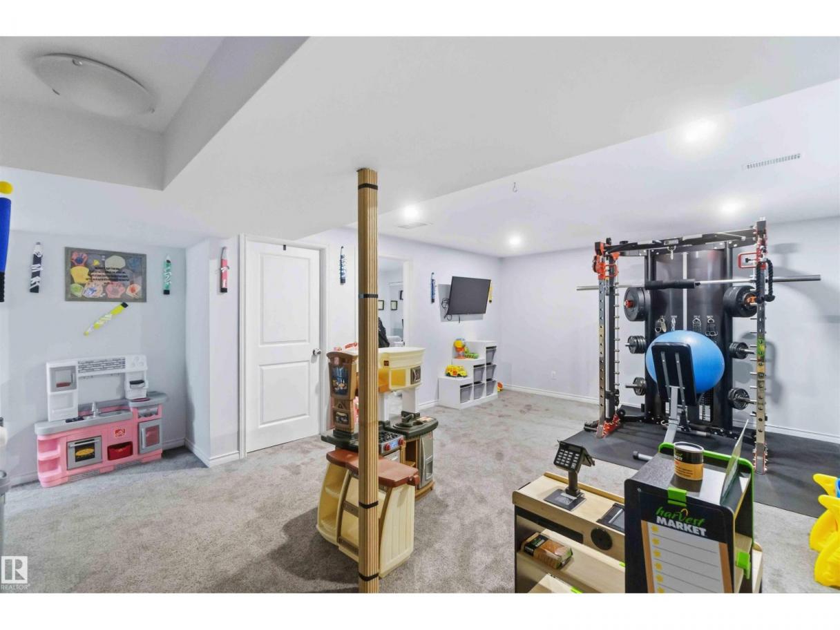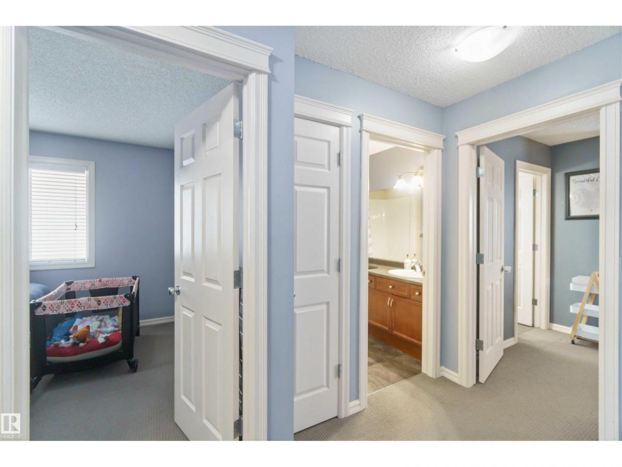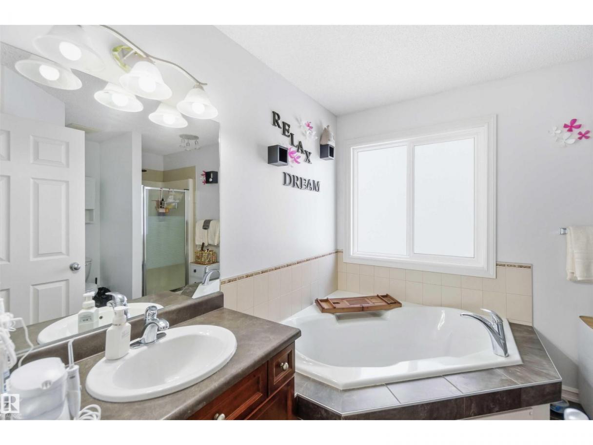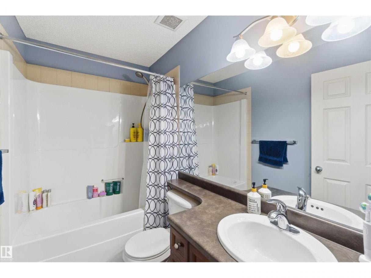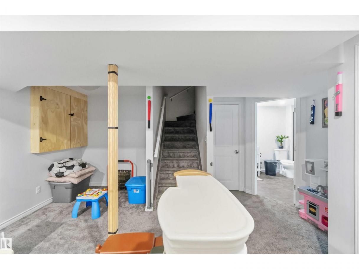 Welcome to this well-maintained two-storey home in Fort Saskatchewan. The main level features a spacious kitchen with rich dark cabinetry and stainless steel appliances, flowing into a bright living area filled with natural light from large windows. This floor also includes a convenient two-piece bathroom and a generously sized laundry room. Upstairs, the primary bedroom offers a comfortable retreat complete with a large private ensuite. Two additional bedrooms and a full four-piece bathroom round out the upper level. The finished basement adds valuable living space with a cozy family room and an additional bedroom—ideal for guests, a home office, or a growing family. Outside, enjoy the fully fenced and landscaped backyard with a deck just off the back door, perfect for relaxing or entertaining. All this home needs is YOU! (id:6769)
