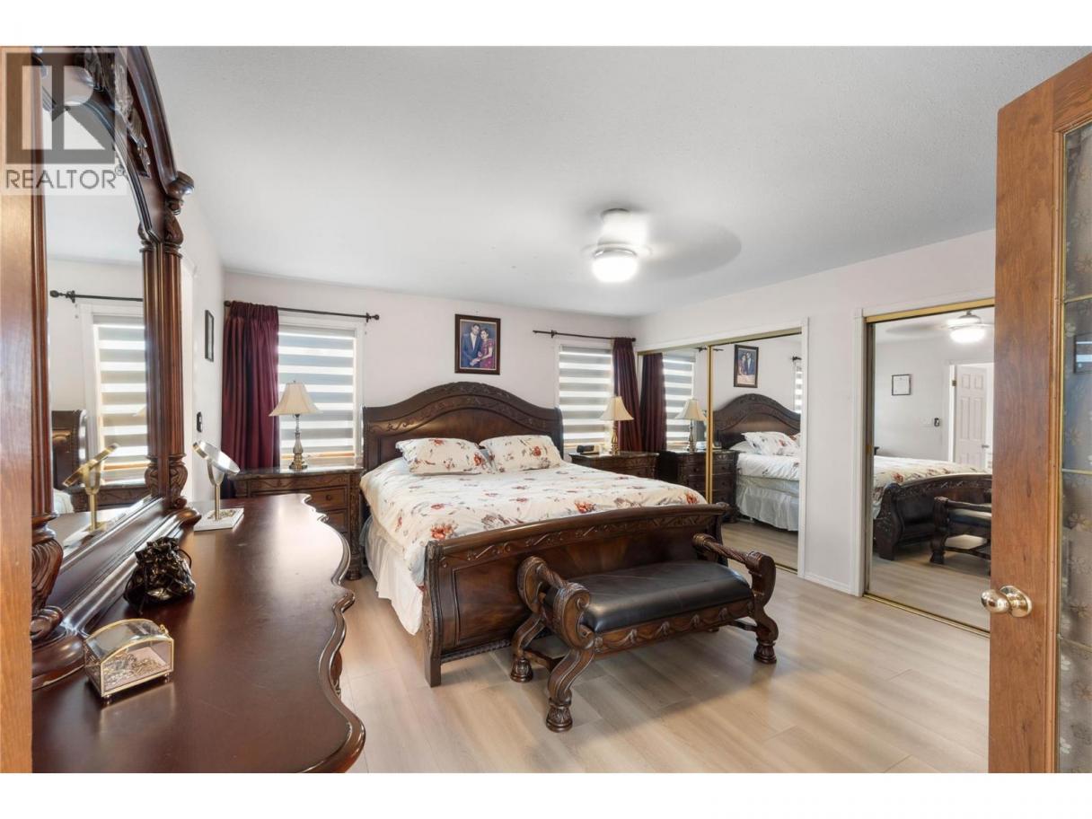 This elegant two-storey home combines classic charm with modern comfort plus the full basement ready to finish as an in-law suite or room for larger family needs. From the moment you arrive, the home’s impressive street appeal and manicured landscaping set the tone for what’s inside. With a double garage, RV parking, and extra driveway space, there’s room for everything. Step into the welcoming foyer where an elegant curved staircase leads to the upper level. The sunken living room and formal dining area feature easy-care laminate flooring—ideal for both everyday living & stylish entertaining. The spacious kitchen, with natural light from a vaulted skylight, boasts newer stainless-steel appliances and new countertops, creating a perfect space for family meals and gatherings. The adjoining family dining area overlooks a cozy sunken family room with a gas fireplace and patio doors opening onto a covered BBQ deck. The private, fenced backyard has underground sprinklers and mature fruit trees and backs on a daycare. A handy stairwell from the yard offers outside access to the unfinished basement, perfect for extra storage or your future development ideas. Two additional bedrooms and a convenient laundry room are located on the main floor. Upstairs, the spacious primary suite features a spa-inspired ensuite with a jetted tub and bidet, along with two more well-sized bedrooms for the kids. This exceptional home is ready to welcome your family and create memories for years to come. (id:6769)