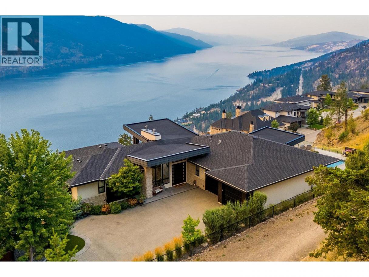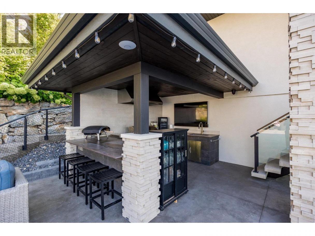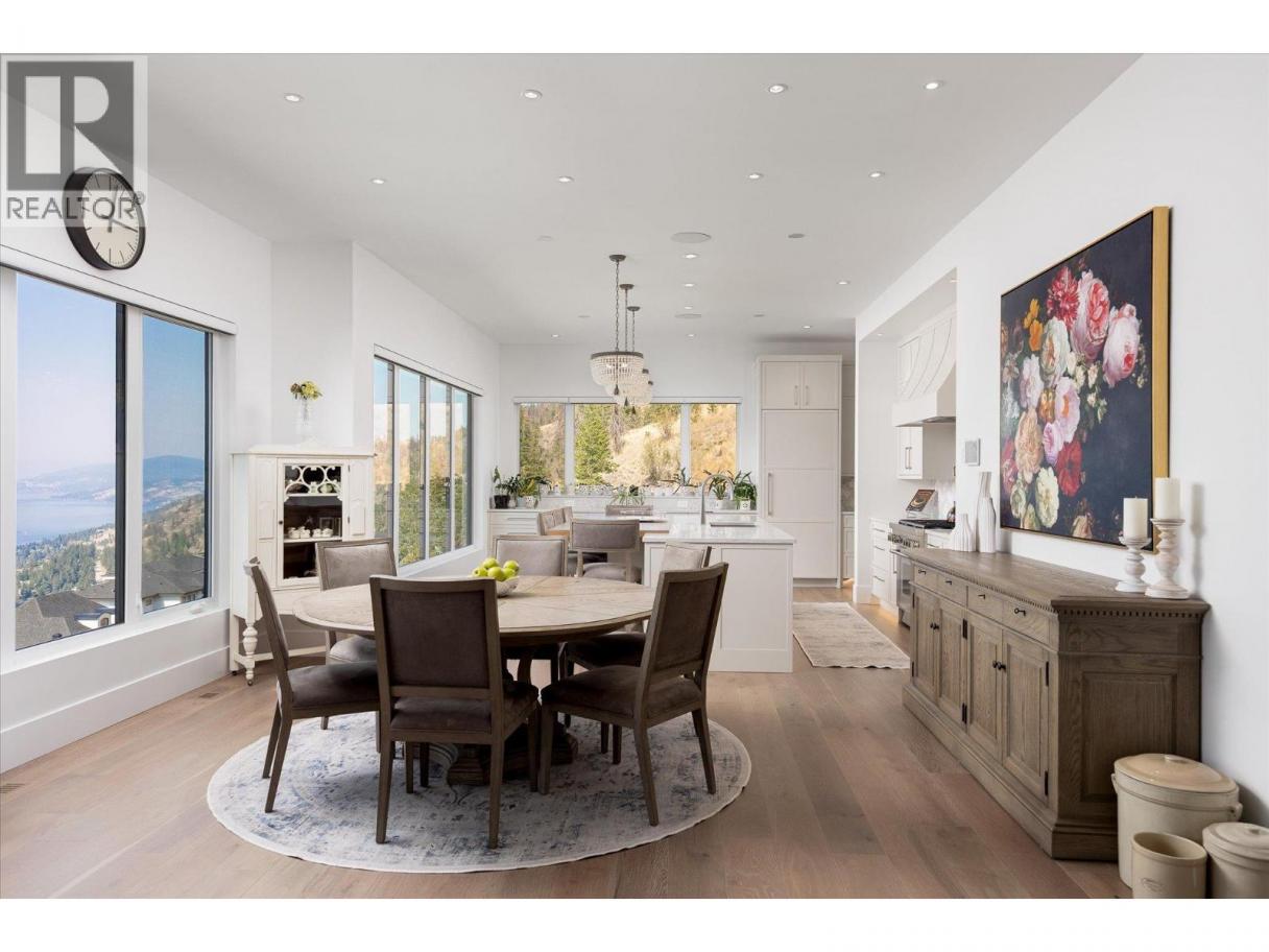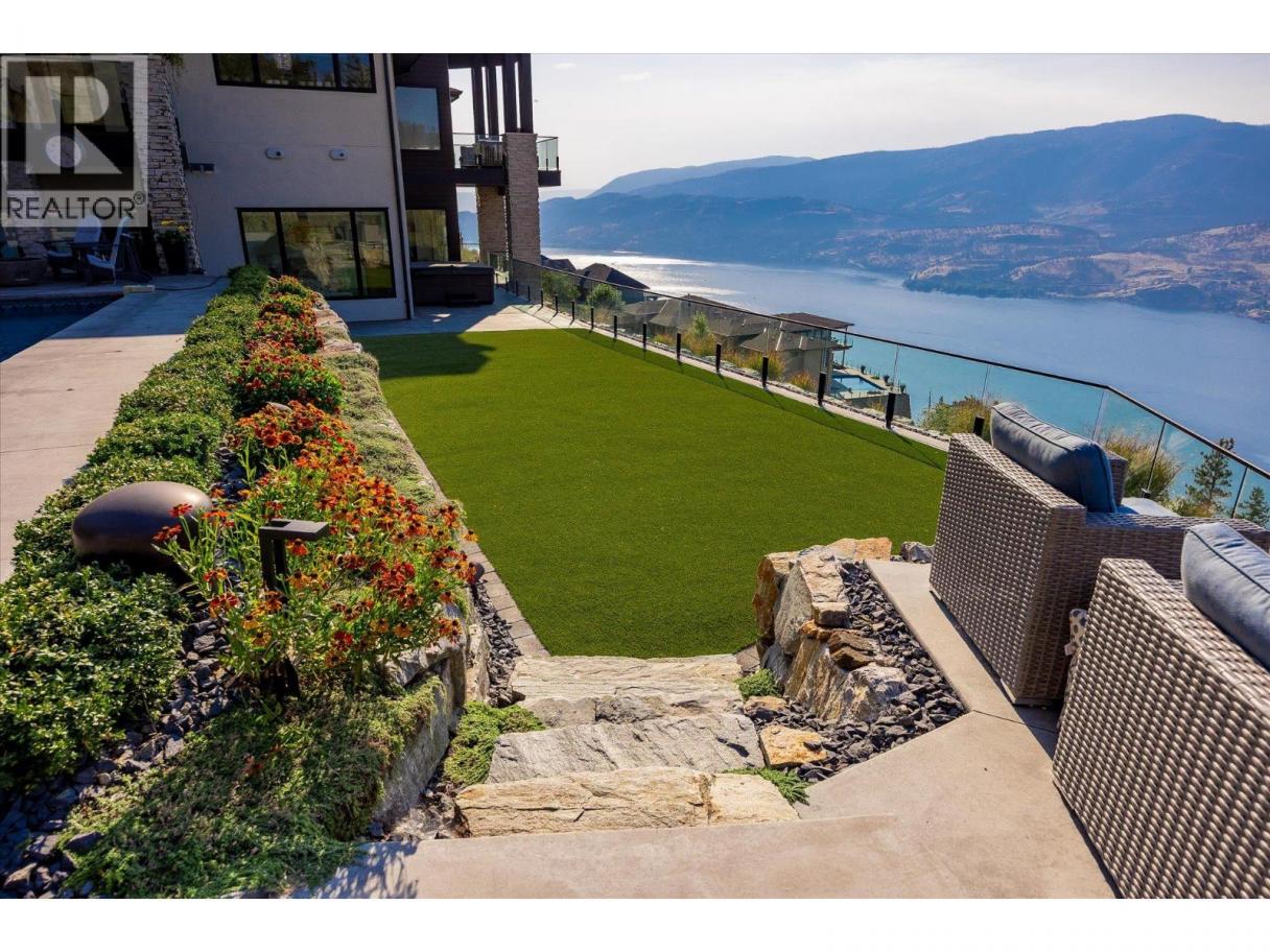 NEW PRICE!! Located in one of Kelowna’s most desirable neighborhoods, this property captures 180-degree panoramic views of the lake and mountains. Set on a quiet cul-de-sac, it offers rare privacy while remaining just minutes from downtown, wineries, golf, restaurants, and all the best of Okanagan living. The open-concept main level seamlessly connects indoor and outdoor living. A chef’s kitchen, designed by Carolyn Walsh, features a Thermador six burner range, two panelled fridges and dishwashers, a panelled freezer along with a striking two-tone island. A new working pantry and custom wine room elevate the home’s entertaining potential. Two primary suites provide private retreats with spectacular lake views. The main-level suite includes a fireplace sitting area and spa-inspired ensuite with a curbless steam shower. The lower-level suite mirrors the same luxury finishes, offering flexibility for guests or family. Designed for entertaining, the lower level also boasts a twelve seat theatre, wet bar, and recreation space, with a separate entrance for guests. Lower level radiant in-floor heating keeps every space warm and inviting. Resort-style outdoor living awaits with a saltwater pool, pool bath, artificial turf yard, and an outdoor kitchen - ideal for summer gatherings. Combining luxury, functionality, and effortless living, this home also grants direct access to Knox Mountain Park and Kelowna’s outdoor lifestyle. With its privacy and breathtaking views, this property delivers the quintessential Okanagan experience. (id:6769)