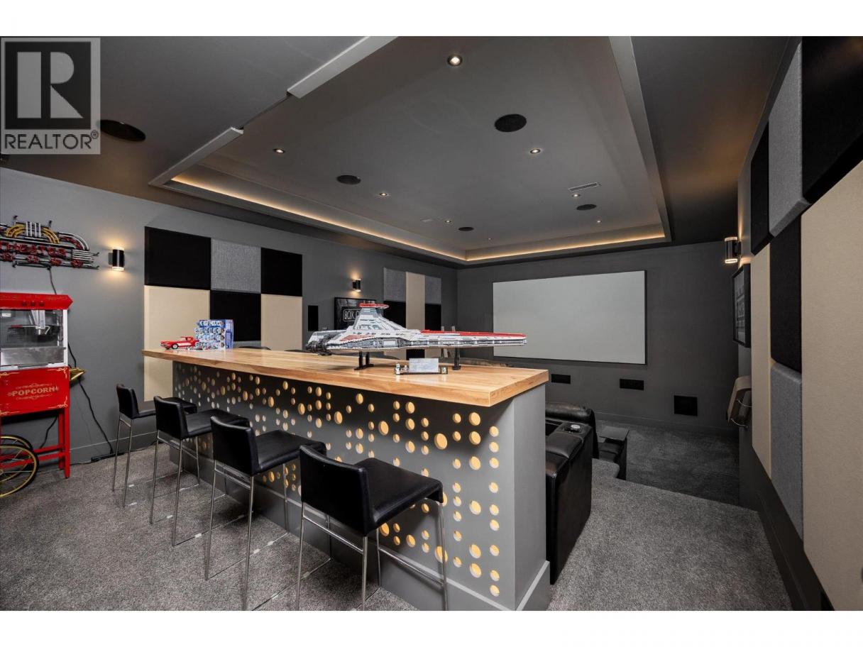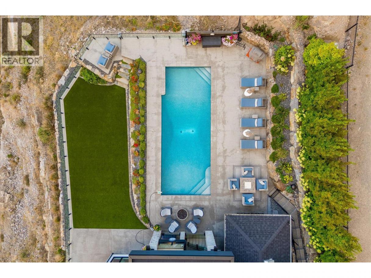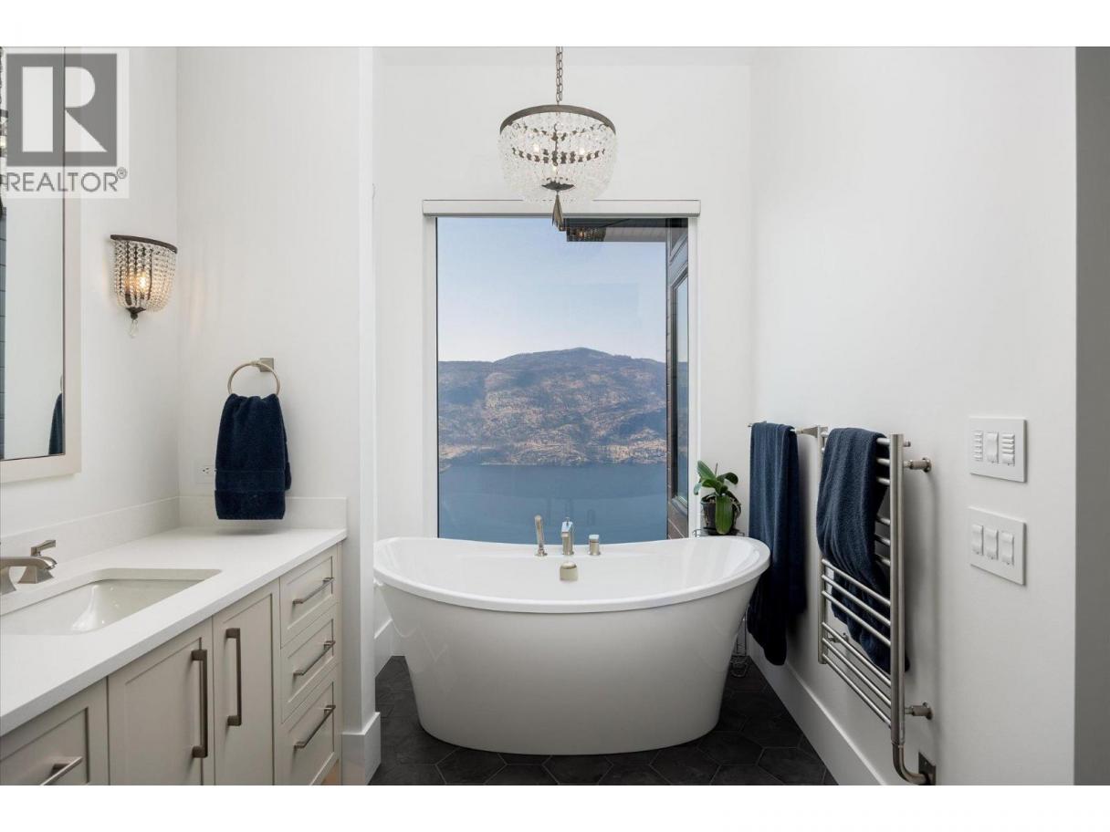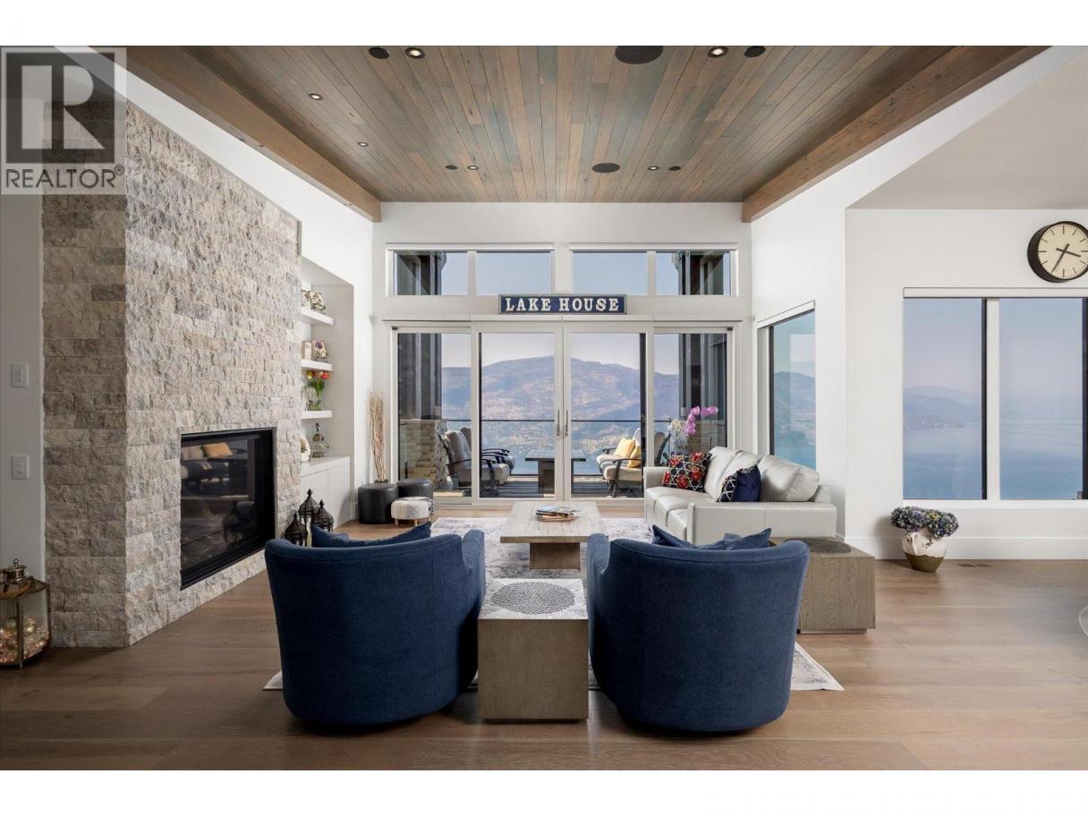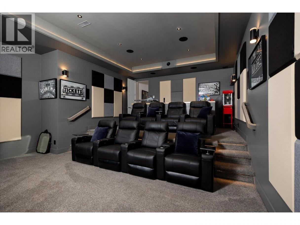 NEW PRICE!! Located in one of Kelowna’s most desirable neighborhoods, this property captures 180-degree panoramic views of the lake and mountains. Set on a quiet cul-de-sac, it offers rare privacy while remaining just minutes from downtown, wineries, golf, restaurants, and all the best of Okanagan living. The open-concept main level seamlessly connects indoor and outdoor living. A chef’s kitchen, designed by Carolyn Walsh, features a Thermador six burner range, two panelled fridges and dishwashers, a panelled freezer along with a striking two-tone island. A new working pantry and custom wine room elevate the home’s entertaining potential. Two primary suites provide private retreats with spectacular lake views. The main-level suite includes a fireplace sitting area and spa-inspired ensuite with a curbless steam shower. The lower-level suite mirrors the same luxury finishes, offering flexibility for guests or family. Designed for entertaining, the lower level also boasts a twelve seat theatre, wet bar, and recreation space, with a separate entrance for guests. Lower level radiant in-floor heating keeps every space warm and inviting. Resort-style outdoor living awaits with a saltwater pool, pool bath, artificial turf yard, and an outdoor kitchen - ideal for summer gatherings. Combining luxury, functionality, and effortless living, this home also grants direct access to Knox Mountain Park and Kelowna’s outdoor lifestyle. With its privacy and breathtaking views, this property delivers the quintessential Okanagan experience. (id:6769)