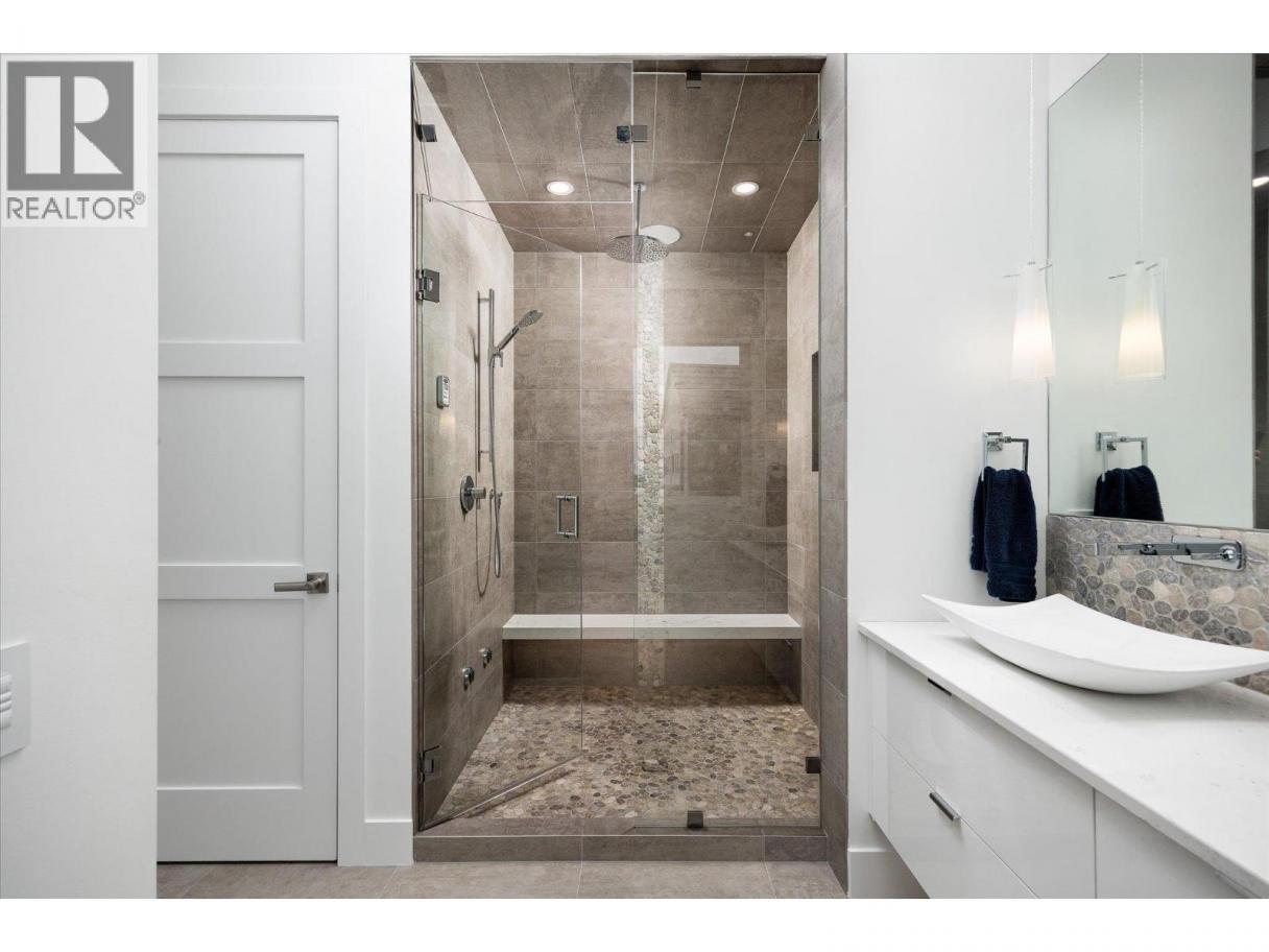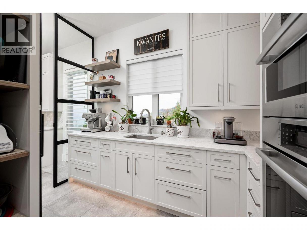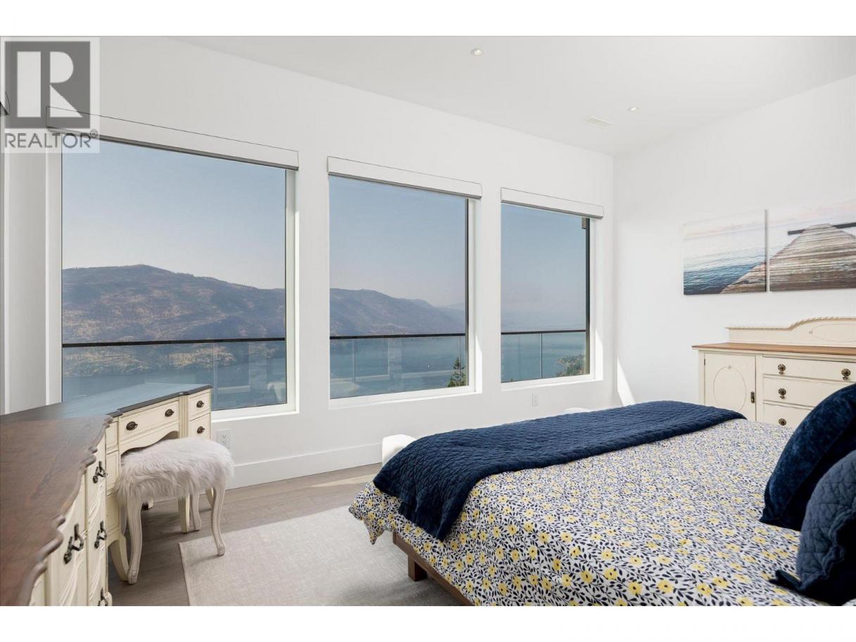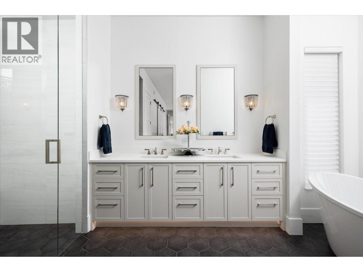 NEW PRICE!! Located in one of Kelowna’s most desirable neighborhoods, this property captures 180-degree panoramic views of the lake and mountains. Set on a quiet cul-de-sac, it offers rare privacy while remaining just minutes from downtown, wineries, golf, restaurants, and all the best of Okanagan living. The open-concept main level seamlessly connects indoor and outdoor living. A chef’s kitchen, designed by Carolyn Walsh, features a Thermador six burner range, two panelled fridges and dishwashers, a panelled freezer along with a striking two-tone island. A new working pantry and custom wine room elevate the home’s entertaining potential. Two primary suites provide private retreats with spectacular lake views. The main-level suite includes a fireplace sitting area and spa-inspired ensuite with a curbless steam shower. The lower-level suite mirrors the same luxury finishes, offering flexibility for guests or family. Designed for entertaining, the lower level also boasts a twelve seat theatre, wet bar, and recreation space, with a separate entrance for guests. Lower level radiant in-floor heating keeps every space warm and inviting. Resort-style outdoor living awaits with a saltwater pool, pool bath, artificial turf yard, and an outdoor kitchen - ideal for summer gatherings. Combining luxury, functionality, and effortless living, this home also grants direct access to Knox Mountain Park and Kelowna’s outdoor lifestyle. With its privacy and breathtaking views, this property delivers the quintessential Okanagan experience. (id:6769)