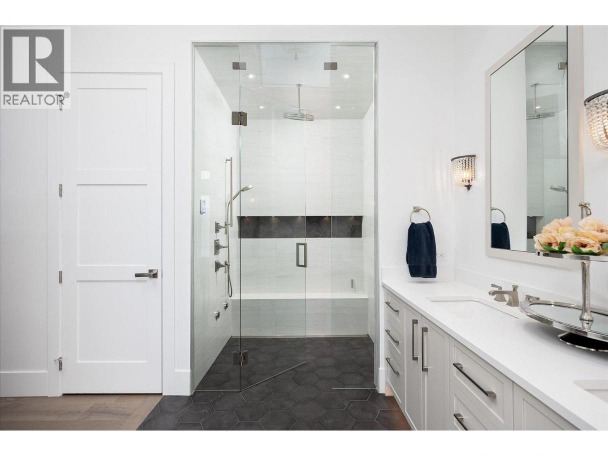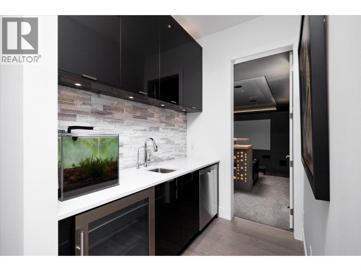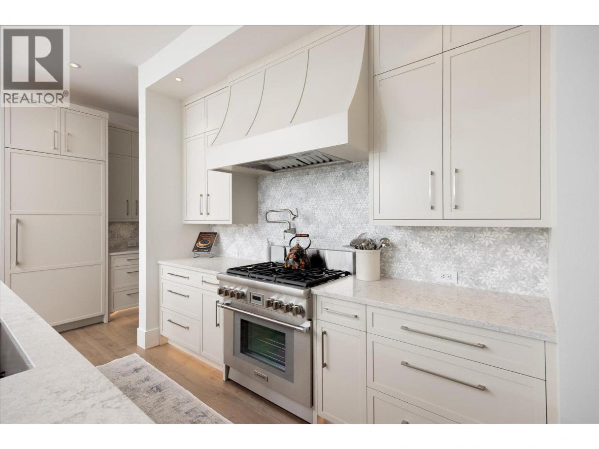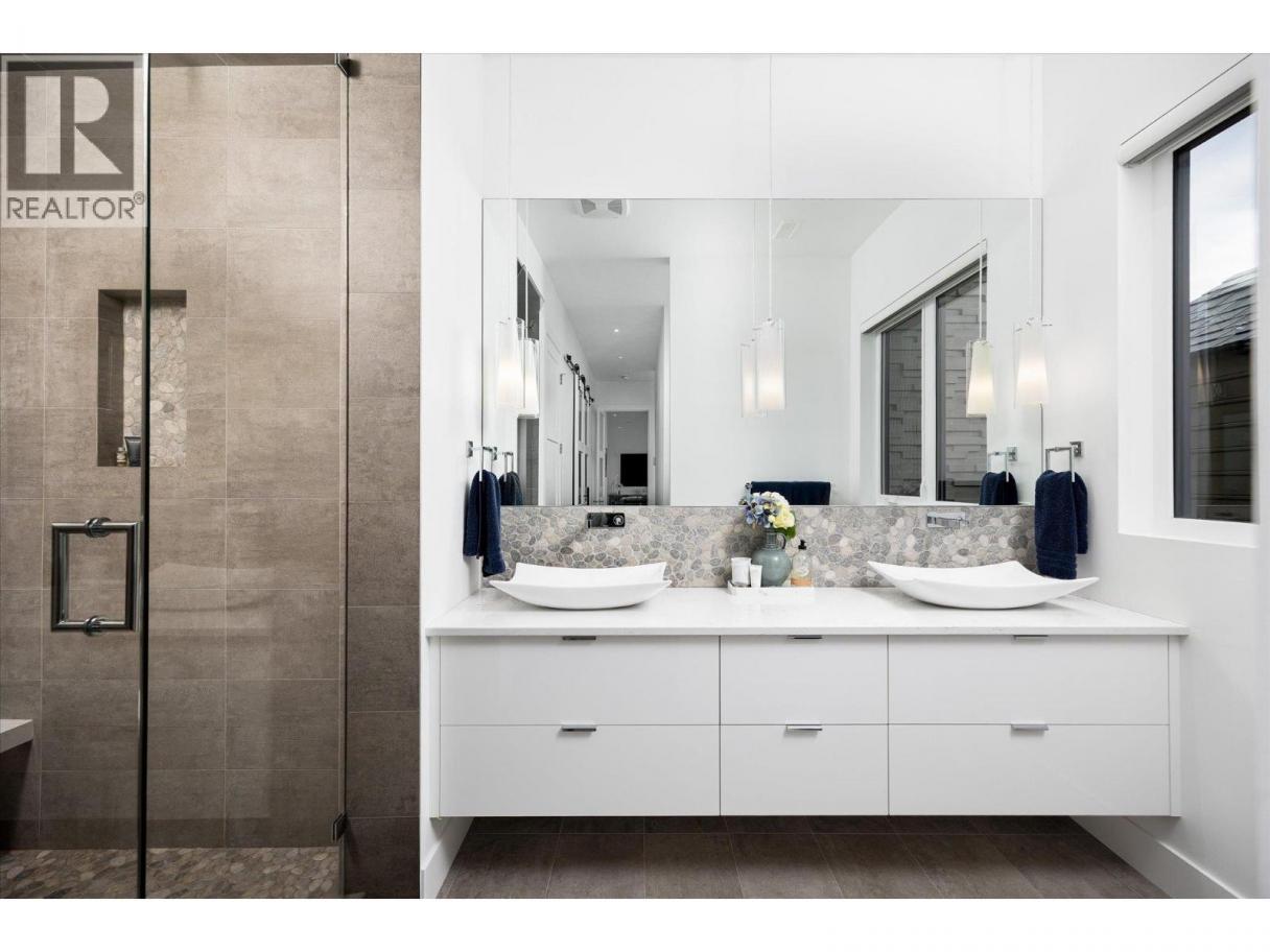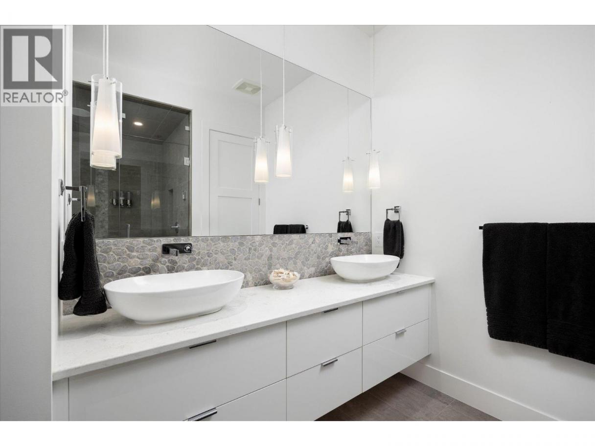 NEW PRICE!! Located in one of Kelowna’s most desirable neighborhoods, this property captures 180-degree panoramic views of the lake and mountains. Set on a quiet cul-de-sac, it offers rare privacy while remaining just minutes from downtown, wineries, golf, restaurants, and all the best of Okanagan living. The open-concept main level seamlessly connects indoor and outdoor living. A chef’s kitchen, designed by Carolyn Walsh, features a Thermador six burner range, two panelled fridges and dishwashers, a panelled freezer along with a striking two-tone island. A new working pantry and custom wine room elevate the home’s entertaining potential. Two primary suites provide private retreats with spectacular lake views. The main-level suite includes a fireplace sitting area and spa-inspired ensuite with a curbless steam shower. The lower-level suite mirrors the same luxury finishes, offering flexibility for guests or family. Designed for entertaining, the lower level also boasts a twelve seat theatre, wet bar, and recreation space, with a separate entrance for guests. Lower level radiant in-floor heating keeps every space warm and inviting. Resort-style outdoor living awaits with a saltwater pool, pool bath, artificial turf yard, and an outdoor kitchen - ideal for summer gatherings. Combining luxury, functionality, and effortless living, this home also grants direct access to Knox Mountain Park and Kelowna’s outdoor lifestyle. With its privacy and breathtaking views, this property delivers the quintessential Okanagan experience. (id:6769)