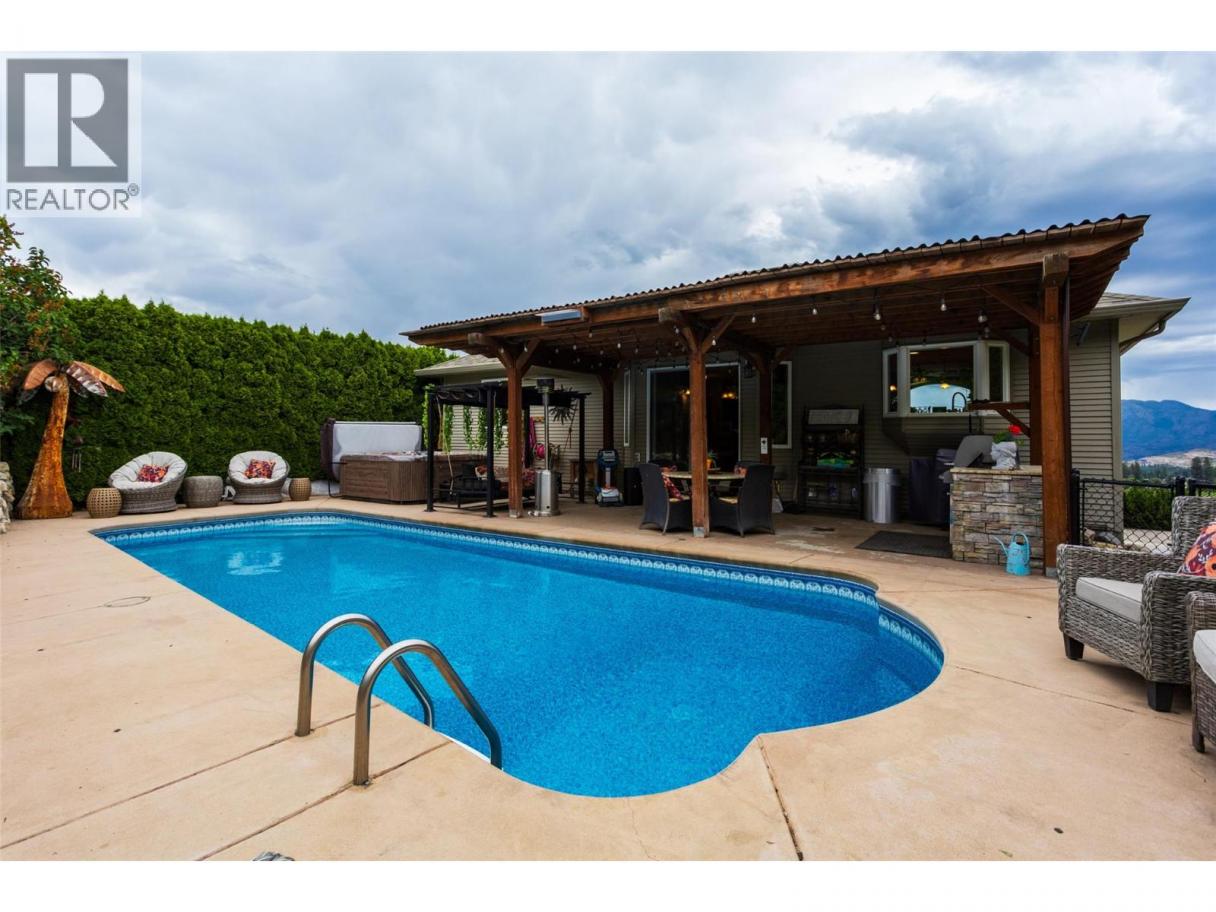 Welcome to 2838 Salish Road in Smith Creek — a beautifully appointed 5-bedroom, 3-bathroom family home that captures the essence of Okanagan living. Enjoy stunning lake, vineyard, and orchard views from this thoughtfully designed residence offering both comfort and style. The main floor features an open-concept layout with a spacious kitchen, ideal for everyday living and entertaining. The inviting living room with a gas fireplace opens to a generous deck where you can relax and take in the expansive valley and lake vistas. From the kitchen, sliding doors lead to a private backyard retreat with a newer in-ground heated pool (pool heater replaced in 2024)—perfect for summer gatherings and outdoor enjoyment. The primary suite provides a peaceful escape with a walk-in closet and a well-appointed en-suite. Two additional bedrooms on the main level offer flexibility for family or guests. The lower level includes two more bedrooms, a full bath, and a spacious recreation room, ideal for a home theatre, gym, or play area. With breathtaking views, a private pool, and a versatile floor plan, this home is perfectly suited for modern family living. Experience the best of the Okanagan lifestyle in this exceptional property. For a virtual tour, view the iGuide walkthrough or contact us today to schedule your private showing. (id:6769)