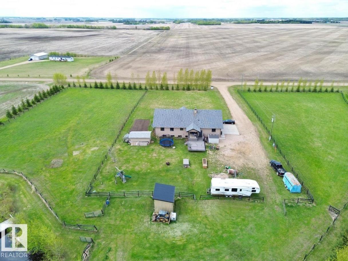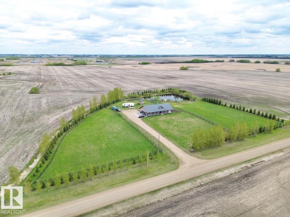 6 BED 3.5 BATH FULLY FINISHED BUNGALOW WITH OVERSIZED IN-FLOOR HEATED DOUBLE ATTACHED GARAGE ON 4.55 ACRES NOT IN A SUBDIVISION!! Surrounded by farmland and only 20 min to St. Albert this property gets the best of both worlds when it comes to proximity and privacy! The property is landscaped, boasts 2 mature garden spaces and fruit beds, includes a garden shed, horse shelter and is fully fenced ready for horses! This Original-Owner-home features over 3200 sqft of finished space, ICF construction to the roof for superior insulation and sound barrier, geo-thermal heating, vaulted ceilings, open-concept kitchen/dining/living area, high efficiency wood fireplace, hardwood/tile floors on the main floor, main floor laundry, oversized bedrooms including the kingsized primary suite renovated in 2023. Other upgrades include new windows in 2022/23 as well as a 2 tiered composite deck that is perfect for entertaining! This property is a true piece of paradise! Don't miss out on this great property! (id:6769)