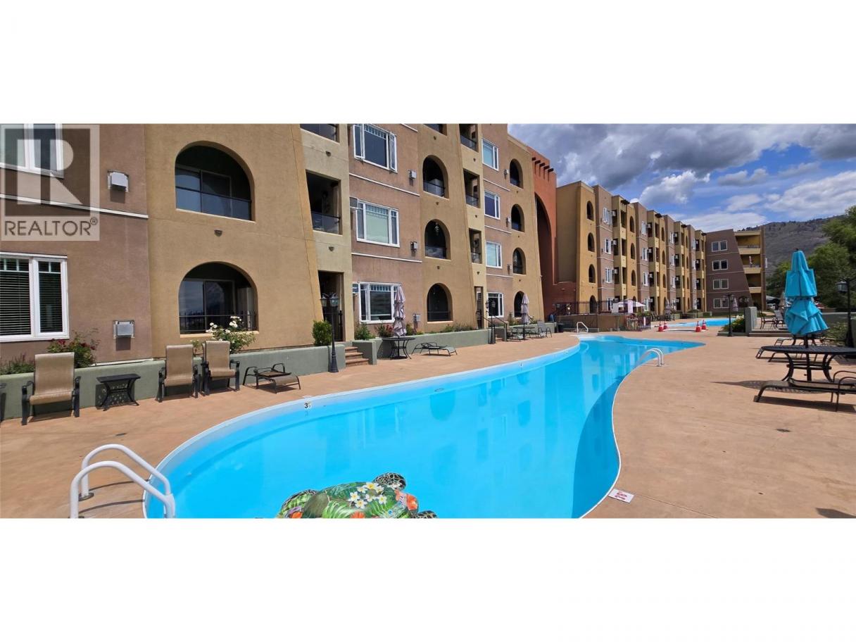 Live your best life at Desert Mirage. Nothing to do here but move in and start enjoying all this unit has to offer. Bright kitchen with stainless appliances opens onto spacious eating area where there's lots of room to gather with friends. Floors are tile and laminate in this bright unit, easy care for a lakeside home. There are 2 spacious bedrooms at opposite ends, Primary with spacious ensuite & 2nd bedroom with private access to a full bathroom. Each room has it's own a/c. Best of all each of these rooms have an amazing lakeview. If you need extra sleeping room the den can house your overflow guests. There's a corner gas fireplace for chilly days, 2 covered decks to extend outdoor year round outdoor enjoyment. It's hard to beat the location of this condo. Ground floor means you can park right outside your door and make unloading groceries easy! On the lake side your deck has easy access to the pool making heading in for a snack simple. Desert Mirage is a gated complex & offers 2 heated pools, hot tub; a great walking neighbourhood near restaurants, park & lakefront walkways. Located a short drive to 2 golf courses, town center & many award winning wineries. This home is perfect for retirement, a family holiday home or an investments. Call today to book a viewing. All measurements approximate and should be verified if important. (id:6769)