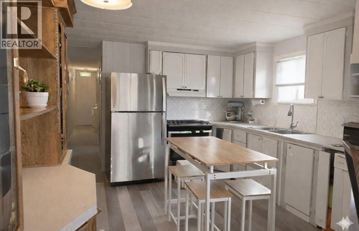 This nicely updated 3 bed / 1 bath single-wide mobile home is the perfect fit for a growing family, first-time buyer, or retiree looking for comfort and convenience. This welcoming community is pet, family, and rental-friendly—ideal for anyone looking to enjoy nature while staying connected to a friendly neighbourhood atmosphere. Inside, you’ll love the many upgrades including updated windows, newer flooring and paint, stylish zebra blind window treatments, and a refreshed kitchen featuring a newer stainless steel dual fuel range, newer stainless steel fridge, and a newer backsplash. The home also includes newer washer and dryer, plus peace of mind with an electrical inspection on file from 2017. Step outside to enjoy the covered deck, new sod, a huge garden, and a fully fenced yard with plenty of space for kids or pets. Storage is no issue with a newer vinyl garden shed plus an additional smaller shed. With three good-sized bedrooms and a great outdoor setup, this charming home is move-in ready and packed with value! Monthly pad rent is $742.99. (id:6769)