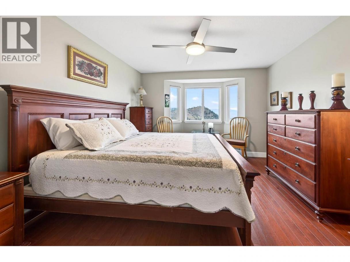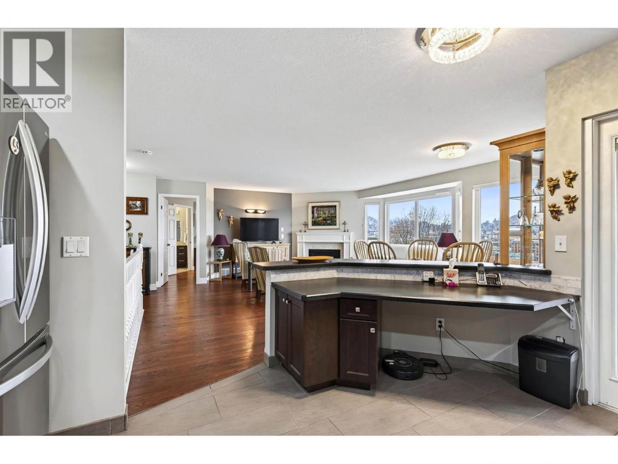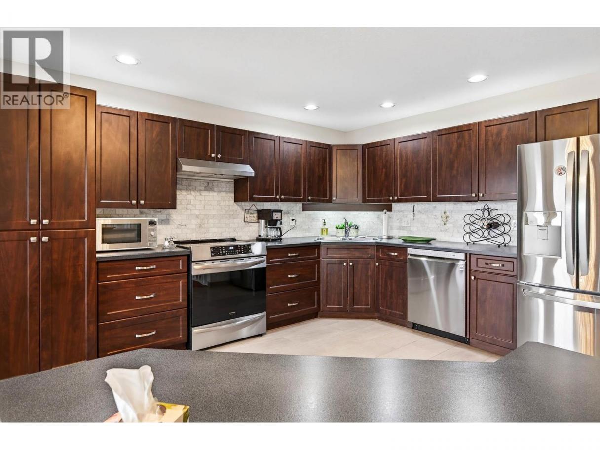 A desirable level entry townhouse with full walk out basement and an unobstructed view of the valley and mountains. One of the the best locations within the complex and also an end unit. The main floor features an oversized primary bedroom with ensuite and walk-in closet, main floor bathroom and a spacious 2nd bedroom/den. The combination living room and dining room area offers a desireable view out the picture windows and in general the townhouse capturess lots of sunshine. There is a gourmet kitchen with newer stainless steel appliances that leads to a covered deck thru french doors that offers a n/g BBQ connection. The main floor laundry area is conveniently located and offers front loading washer/dryer combo. Downstairs offers another huge bedroom, full bathroom and an oversize rec-room /office/tv area as well as a small workshop room and several other storage rooms. Additionally there is a Bonus room which would be a perfect Theater or Games room. This Home is wheelchair friendly with a stair lift from main to lower level. Central A/C, central vacuum and a 2 car garage and no more yard work. (id:6769)
