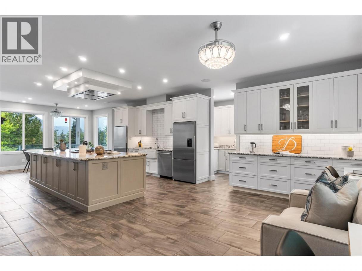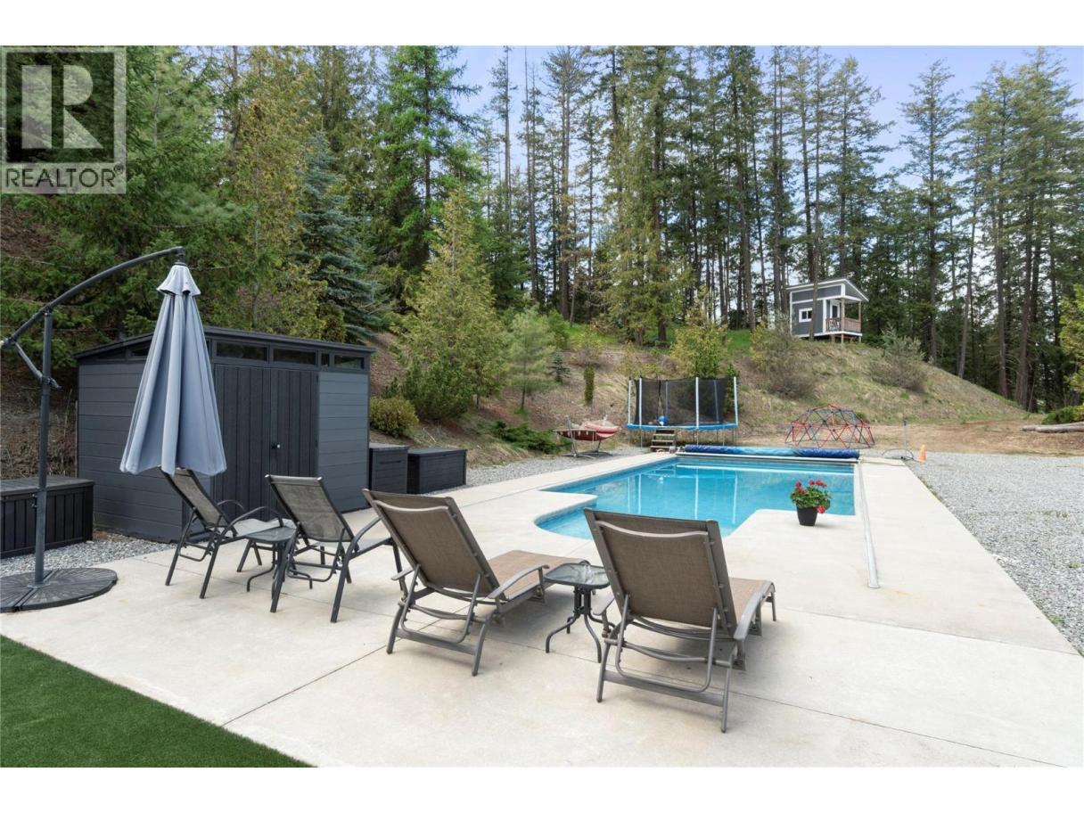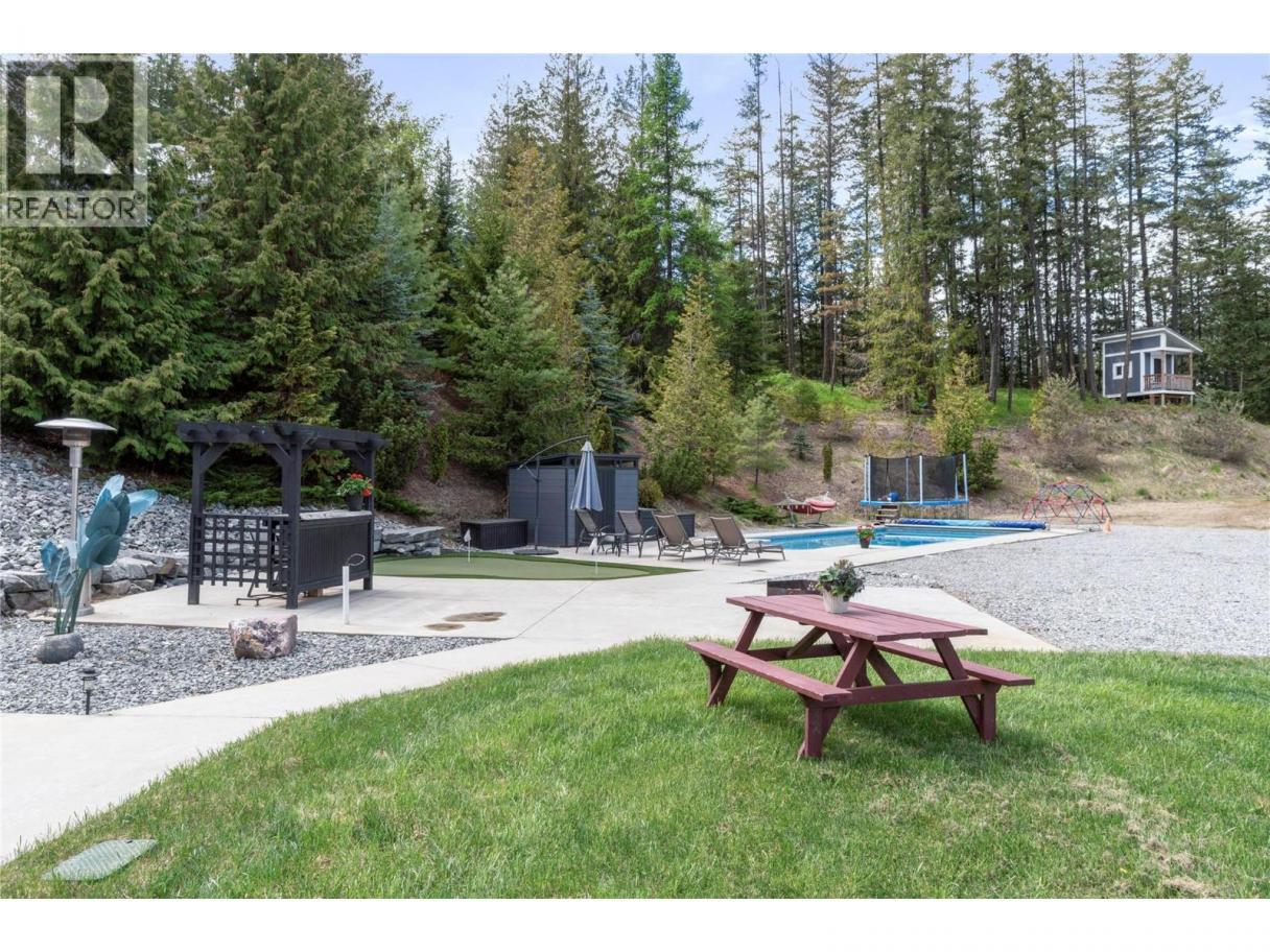 Welcome to your private lakeview retreat! This executive estate spans 10 manicured acres above Canoe Beach and offers the perfect blend of luxury and lifestyle. Designed for entertaining and relaxation, the property features 12+ private, mostly serviced RV sites for hosting family and friends, plus 3 charming guest bunkhouses—including a rare original McGuire Lake cabin. Enjoy an easy stroll to the beach or marina for the full lake life experience. The 2017 custom rancher with walkout basement offers over 7,500 sq ft of functional indoor and outdoor space, with 4 bedrooms, 4 bathrooms, and a den. The chef-inspired kitchen shines with dual fridges, gas cooktop, wall oven, built-in hutch, and walk-in butler’s pantry—ideal for gatherings of any size. The open great room showcases engineered hardwood, vaulted ceilings, a Delacourt wood-burning fireplace, and access to covered lakeview decks and a hot tub oasis. The primary suite features deck access, generous closets, double sinks, walk-in shower, and in-suite laundry. Downstairs includes a large family room, wet bar, and a fully equipped theatre with tiered leather seating, specialty lighting, and surround sound. Outdoors, unwind with a heated in-ground pool, putting green, firepit, and gas-heated dining patio. A gated paved drive, triple garage with workshop, 200-amp service, natural gas, and private well complete this exceptional one-of-a-kind property. (id:6769)