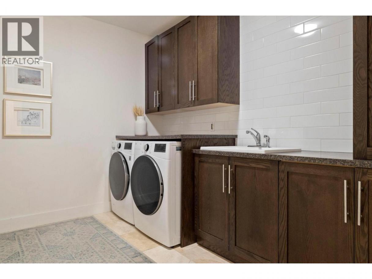 This exceptional luxury home is nestled on a quiet cul de sac in Kelowna’s prestigious Glenmore neighbourhood and was reimagined in 2023 by an award winning design and build team. Offering over 5,000 sq ft, it is ideal for elegant entertaining and multigenerational living. The stunning living room features soaring 18 foot vaulted ceilings, wide plank white oak flooring, statement wood beams, archways, and refined European inspired finishes. The custom chef’s kitchen includes integrated appliances, a six burner Wolf gas range, custom white oak cabinetry, quartz counters and backsplash, and an oversized walk in pantry. A main floor office with custom built ins overlooks the backyard. Upstairs are four generous bedrooms, including a primary retreat with private balcony, spa inspired ensuite, soaker tub, walk in shower, and walk in closet. The private backyard oasis offers a saltwater pool, hot tub, stamped concrete patio, gas fire pit, lush landscaping, and a full size basketball court that converts to a winter skating rink. RV parking and space for boats or trailers is included. Additional highlights include a movie room, private gym, triple garage and a flexible one or two bedroom walkout in law suite that is ideal for family, guests, or a mortgage helper. Minutes to downtown Kelowna and walking distance to schools, parks, and shopping, with mountain and sunset views and Sonos sound throughout. A rare Glenmore offering that combines luxury, lifestyle, and functionality. (id:6769)