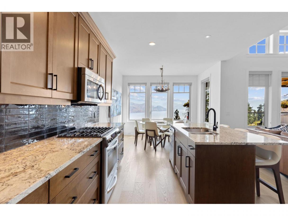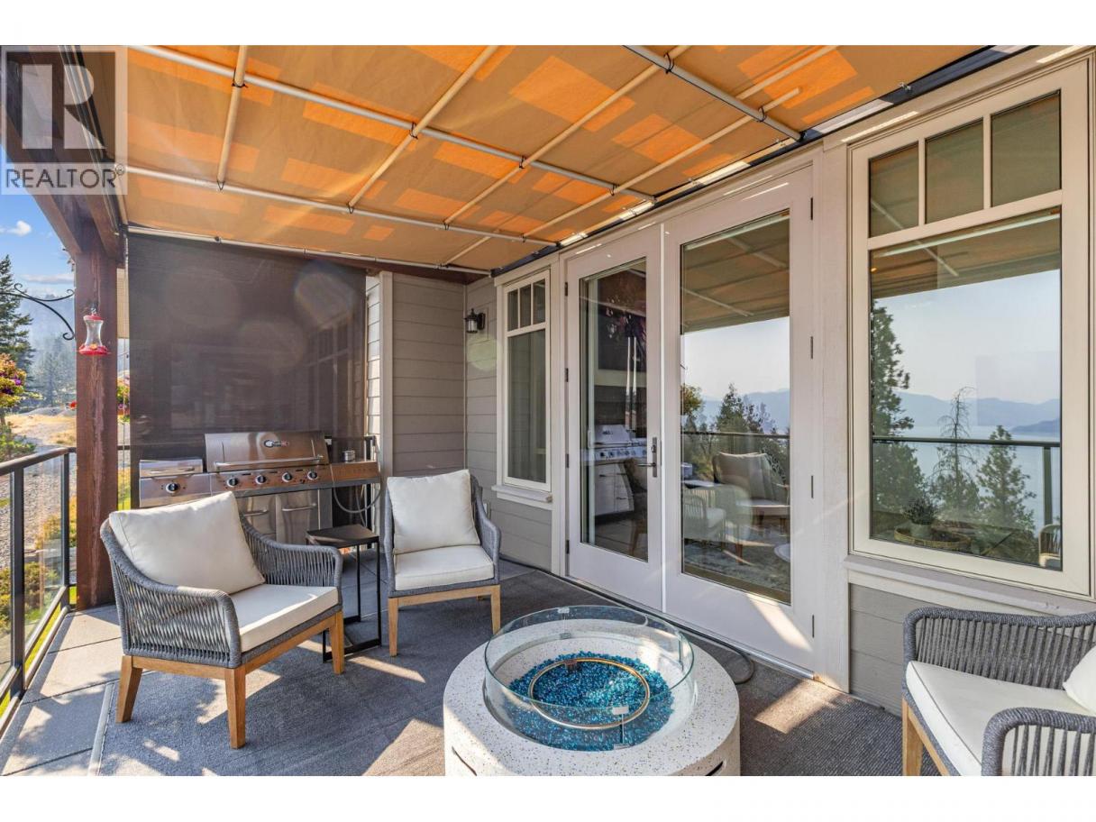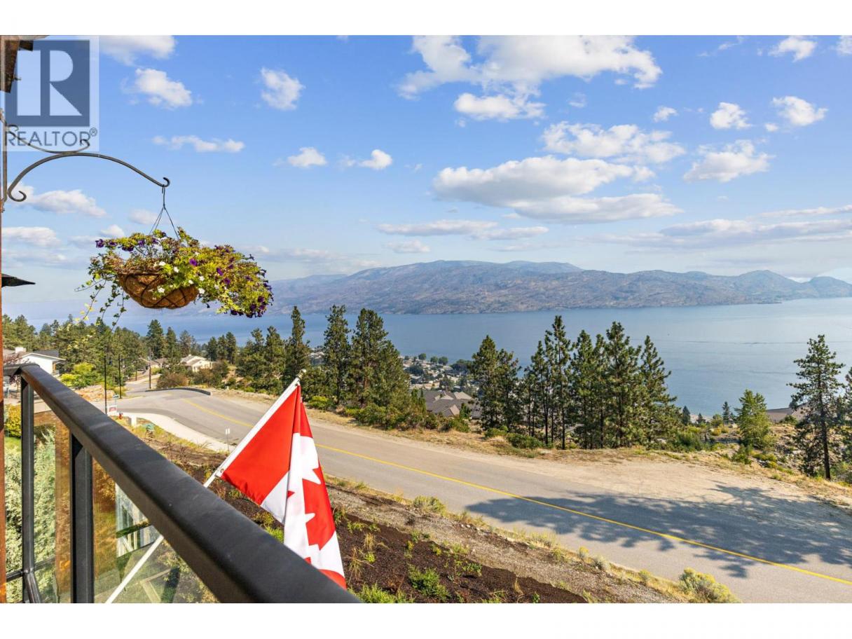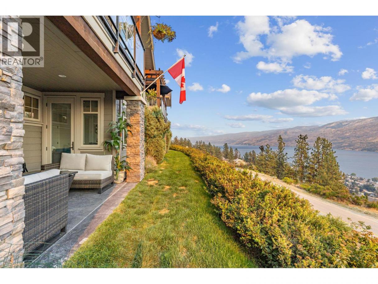 Wake up—or unwind—to boundless sunrise and sunset colors as cloud formations drift across panoramic lake views toward protected Okanagan Mountain Park, visible from nearly every room in this exceptional walk-out rancher in The Trails. Perfectly positioned above Peachland’s charming lakeside, this home blends privacy, tranquility, and convenience in one stunning setting. The bright, open main level features vaulted ceilings, expansive windows, and warm engineered hardwood that adds both elegance and comfort. Step onto the spacious deck with natural gas BBQ hookup—ideal for entertaining, relaxing, and taking in unforgettable sunsets. A cozy gas fireplace anchors the living space with year-round ambiance. The primary suite is a true retreat with French doors to the deck, a spa-inspired 5-piece ensuite with heated tile floors, and a generous walk-in closet. The lower level offers a sizeable, flexible family media or guest space with wet bar, linear fireplace, and built-in Murphy bed—perfect for visitors or extended stays. Geothermal (annual service included in strata fee) heating and cooling ensure efficient comfort in every season. Just minutes away, Peachland’s vibrant waterfront invites you to stroll the paved Beach Avenue walkway past shops, cafés, and restaurants, enjoy live outdoor music features along the boardwalk, swim at the lifeguarded Swim Bay, or cast a line from the wheelchair-accessible pier. Surrounded by hiking and biking trails and near an approved 9-hole golf course (see City of Peachland for updates), this is refined Okanagan living where lifestyle and location meet. (id:6769)