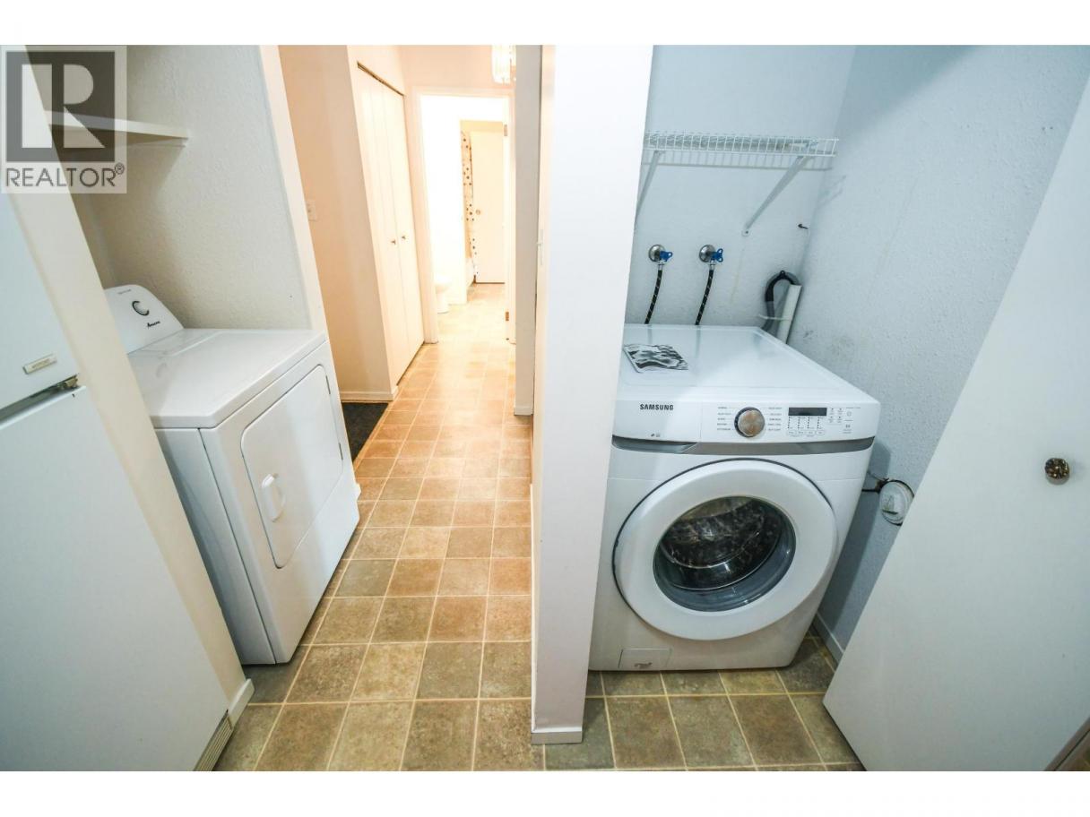 The ultimate downsizer option. Affordable living situated close to shopping & walking trails. This ground floor unit boasts 971 sq ft and features two primary bedrooms which reveal walk-in closets and 4 pce ensuites. The space is heated with an updated natural gas fireplace and only costs $29/mth year round with electric baseboard back-up heat. The interior is bright with a sizable living room with access to the quiet north facing patio, ideal dining room for family gatherings, fully equipped kitchen with modern backsplash, in-suite washer/dryer, storage/utility room. Also included is carport parking with plug in, interior recycle and garbage drop just down the hall. This unit stays cool during the summer months. All levies have been paid for the complete exterior renovations in progress. (id:6769)