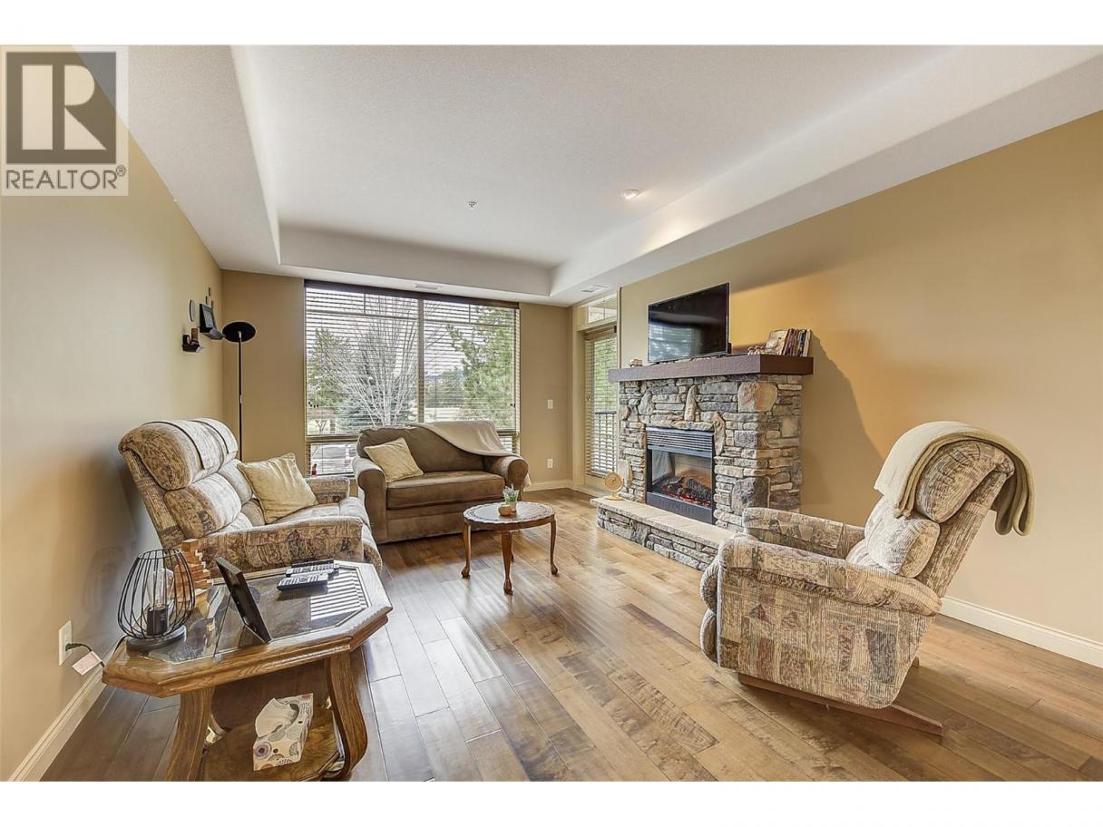 This beautiful 2 bed 2 bath condo is located in desirable Terravita in Shannon Lake just minutes to golf, beaches, wineries, shopping, restaurants and walking trails right outside your door - all just 15 minutes into the heart of Kelowna. From the minute you walk through the doors of this lovely home you know why this could be the perfect home for you. Boasting high end finishings including handscraped hardwood floors, a gourmet kitchen with stainless steel appliances, beautiful cabinetry, eating bar opening up to the great room with dining area, cozy fireplace and of course, the spectacular view of Shannon Lake Golf Course! The balcony is perfect for Okanagan entertaining and your guests will love the views of the golf course and mountains. The primary bedroom is huge and can easily accommodate a king size bed and all your furniture, two closets and large linen closet and a lovely ensuite with double shower, double sinks and undercabinet lighting. The second bedroom is on the other side of the living space which is great for privacy, a second full bath, laundry room and lots of closet space throughout. Secure underground parking (and ample visitor parking), extra large storage locker and secured gated community make this home a perfect fit! (id:6769)