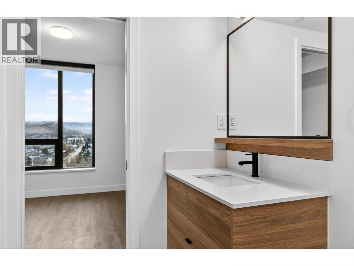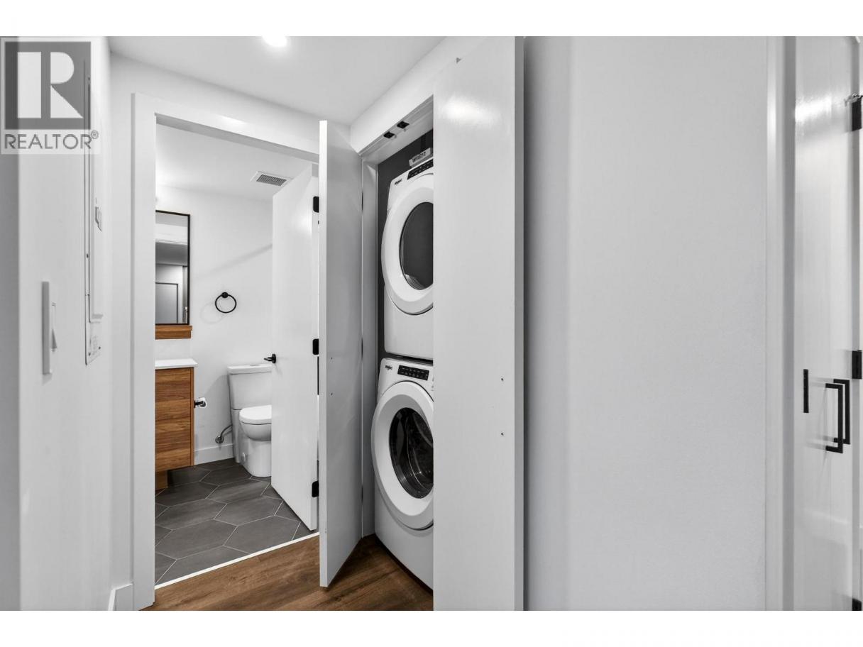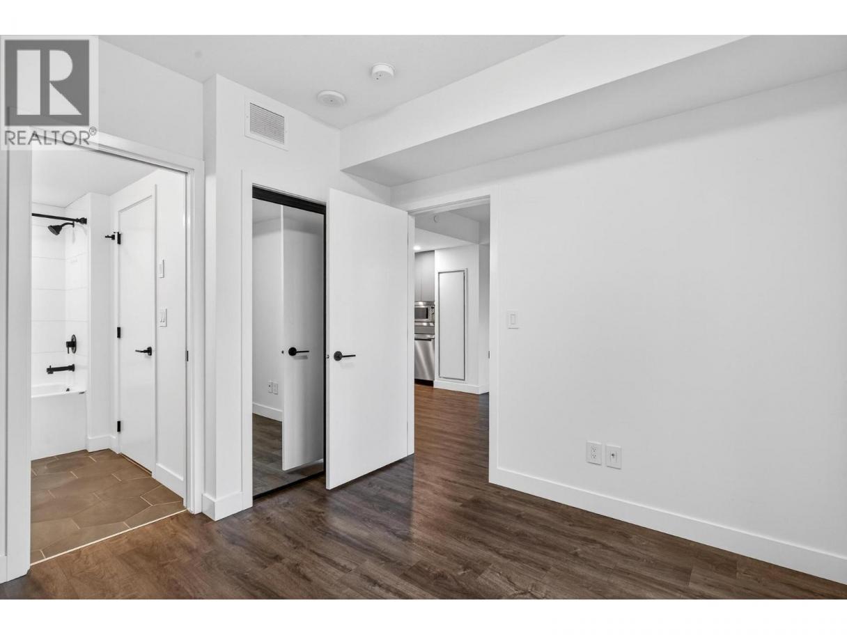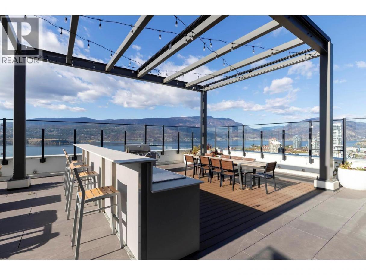 Right in the heart of Downtown Kelowna, this stylish one-bedroom condo in the prestigious Brooklyn high-rise offers a truly walkable urban lifestyle just steps from Okanagan Lake, dining, shopping, and more. Designed with modern living in mind, expansive windows fill the home with natural light while showcasing unobstructed east-facing mountain views of Dilworth, Knox and Black Mountain from the covered balcony. Inside, the thoughtfully designed layout features contemporary finishes including vinyl plank flooring and quartz countertops. The sleek kitchen comes fully equipped with a refrigerator, electric cooktop, oven, microwave, and dishwasher, while the open living space flows effortlessly for both everyday living and entertaining. The four-piece cheater ensuite features a tiled tub surround, and a convenient stacking washer and dryer is neatly tucked into the hall closet. Additional highlights include window coverings and efficient forced-air heating and cooling for year-round comfort. Brooklyn offers an exceptional collection of amenities, including a rooftop patio with a communal BBQ area and kitchen, a stunning rooftop terrace with panoramic lake and city views, a stylish resident lounge and social space, a dog wash station, secure underground parking, and bike storage. With ground-floor retail and a pet-friendly policy, this is modern downtown living at its finest - perfect for professionals, investors, or those seeking an elevated urban lifestyle! (id:6769)