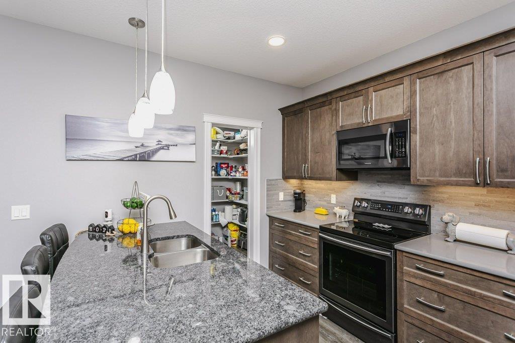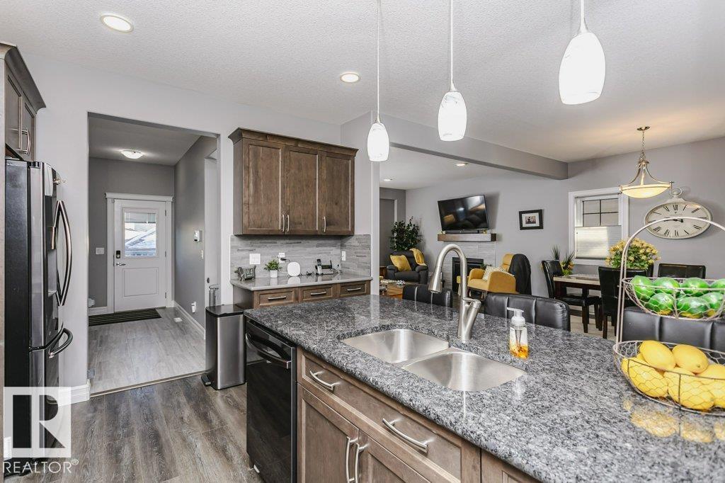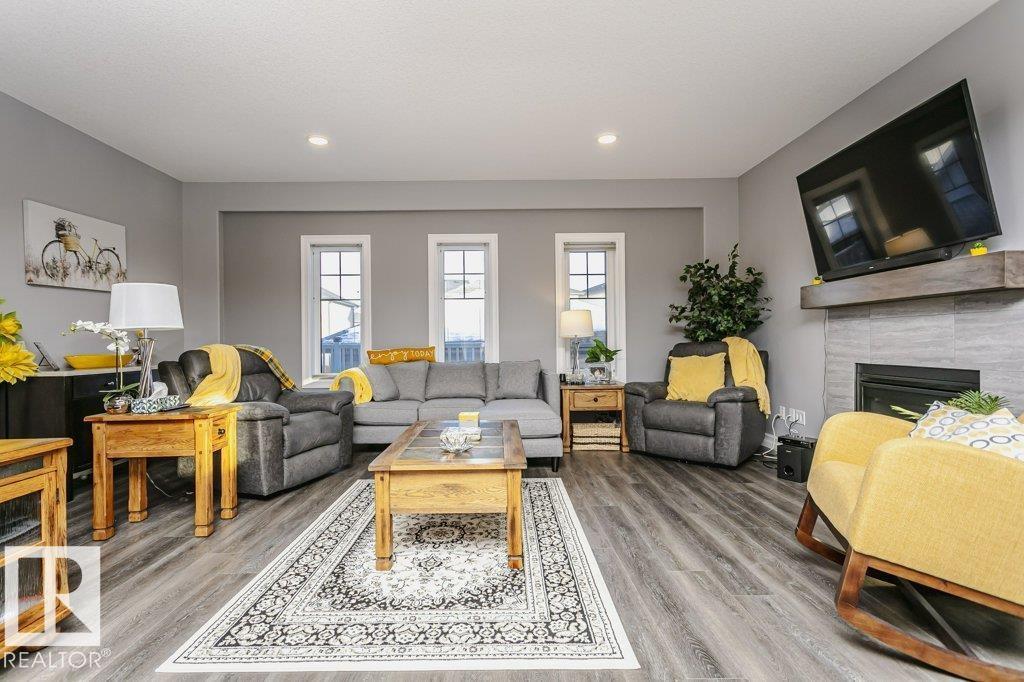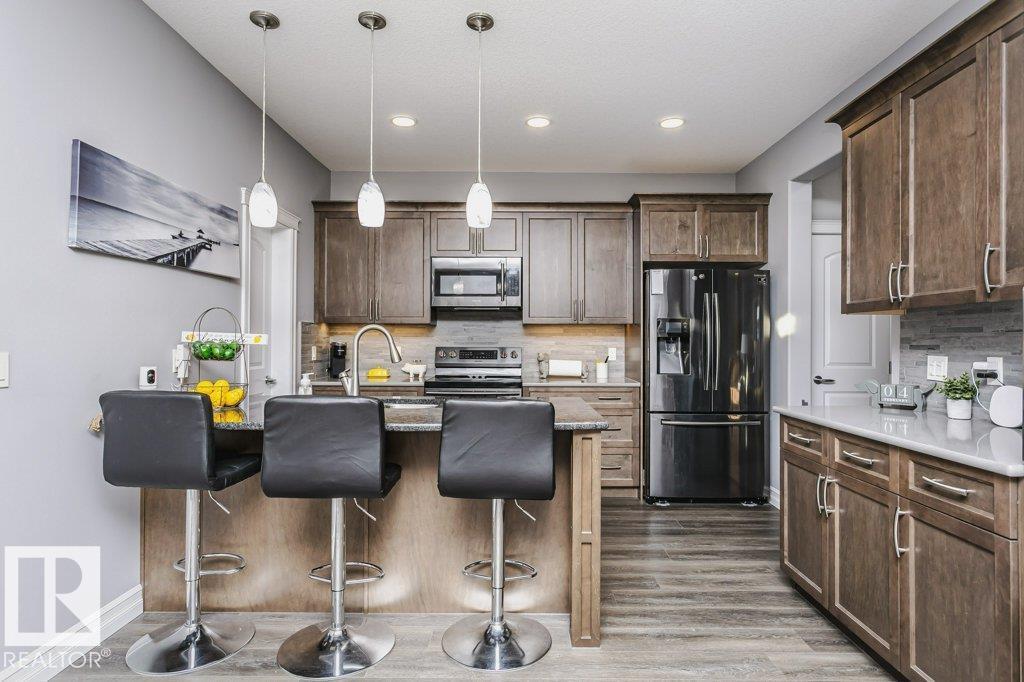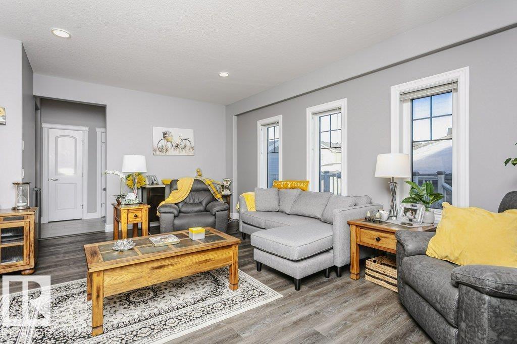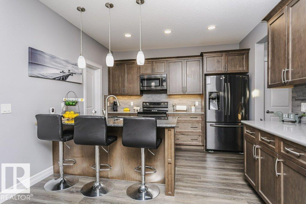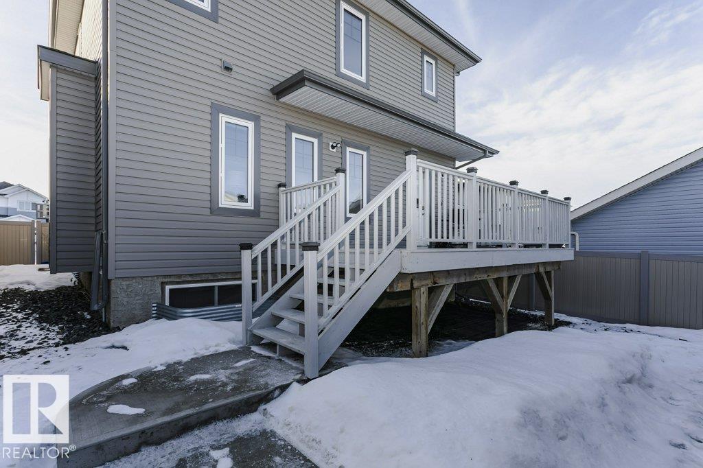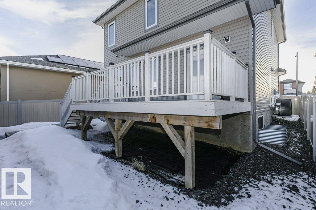 Custom-designed 2 Story home offers approx. 2,219 sq. ft. of beautifully finished living space with a rare rear lane & a 22’ x 25’ double detached garage with a 16’ x 8’ door. From the moment you enter, pride of craftsmanship is evident in the quality design and upscale finishes throughout. Enjoy 9' Ceilings on main & lower levels. The ceramic-tiled foyer opens to a bright open-concept living, kitchen & dining area complete with gas fireplace. The kitchen showcases custom hand-wiped maple cabinetry, quartz countertops, black fingerprint-resistant appliances and large pantry. Through the mud room access your 10’ x 20’ deck, landscaped & fenced yard. The main floor also includes a spacious office/den or bedroom and a 2-piece bath, vinyl plank flooring, plush upgraded carpet. An open riser staircase leads to the upper level with a generous primary bedroom, walk-in closet, 4-piece ensuite, 2 additional bedrooms & a full bath. This home also offers A/C, cul-de-sac location steps to River Valley and Parks (id:6769)