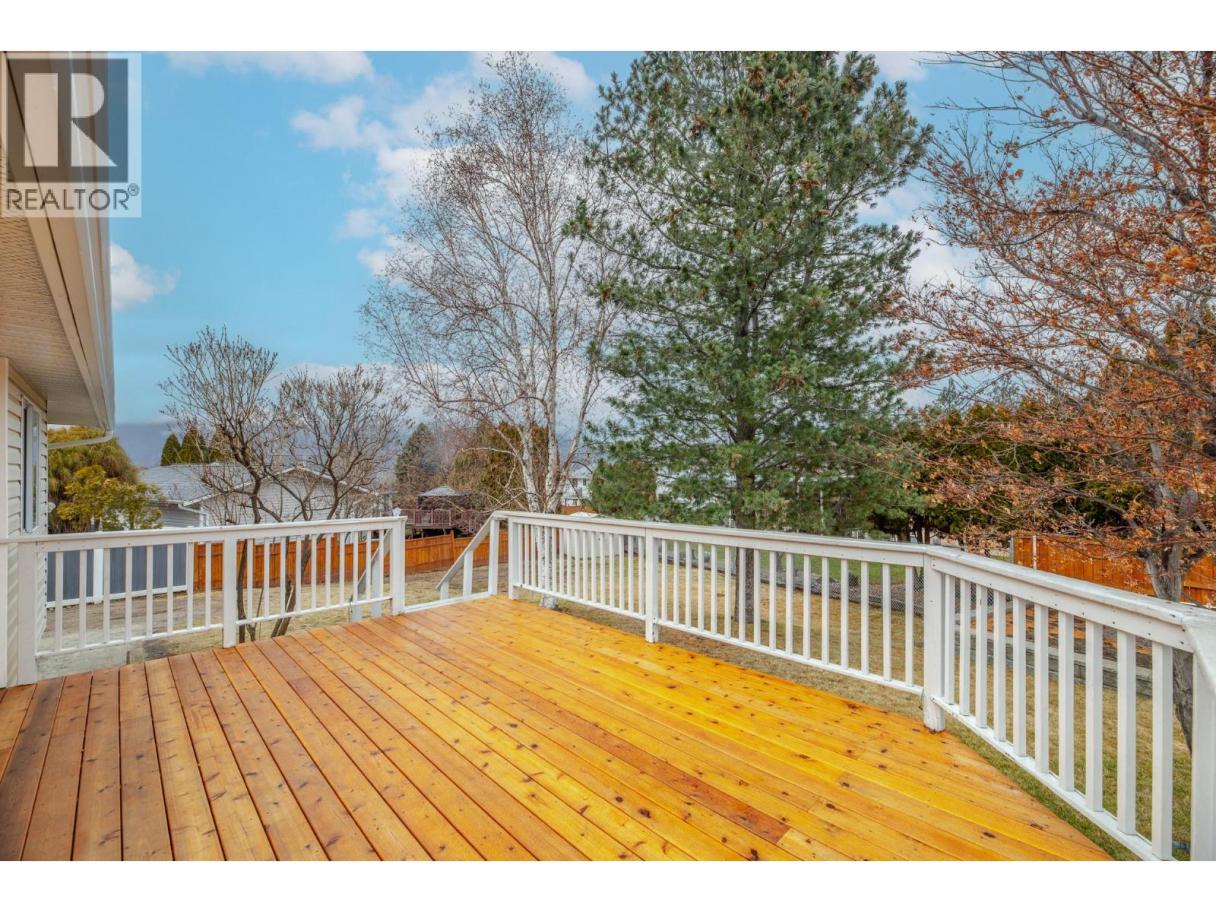 Welcome to your highly sought after WILTSE RANCHER with a well designed floor plan consisting of 5 bedrooms and 3 bathrooms located just a few walking steps to WILTSE ELEMENTARY and its very popular playground! A meticulously cared for home that has been refreshed with a FULL WALK OUT basement is MOVE IN READY! As you step into the foyer you'll enjoy a LARGE bright FRESHLY PAINTED living & dining area with a beautiful BOW window. Next to the dining room is a large functional kitchen great for family get togethers that overlooks your DECK with NEW CEDAR planking, a forested view and FULLY FENCED & IRRIGATED pool sized back yard. The yard also features a big play area and veggie patch! Also on the main level you'll find the primary suite & ensuite, 2 additional bedrooms, main bathroom and laundry area. On the lower level are the 4th and 5th bedrooms, a bathroom, a family/rec space to enjoy, loads of STORAGE, and is perfect for guests or turning it into a SUITE with outdoor access that could be the mortgage helper you are looking for or a future AirBnB! A NEW $20K dollar retaining wall and RV parking addition has just been added next to the FLAT driveway so bring all of your RV toys! A NEW hot water tank has also just been installed while the high efficiency furnace & A/C were replaced in 2021. The garage has a 220 volt outlet for the handy person. WILTSE is one of the best places to live close to everything...schools, parks, trails, transportation and the famous Skaha lake! (id:6769)