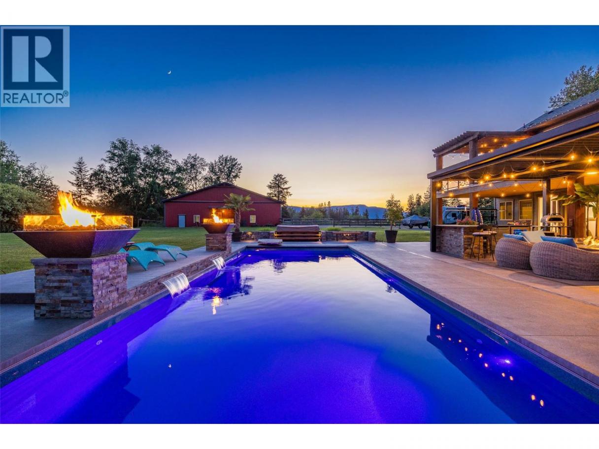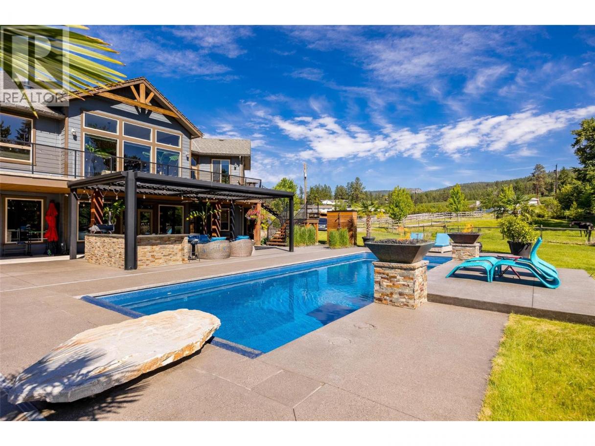 This is a MUST-SEE property that simply can't be captured in just a few words. A quality Craftsman-built custom home, thoughtfully designed for horse lovers with both indoor and outdoor arenas & covered loafing sheds, There is a FIVE-STAR luxury resort-style pool area, and a second residence—all set on five flat, lush, irrigated acres of prime land in South East Kelowna. This is truly the opportunity of a lifetime, priced well below replacement value. The current owners have reimagined and transformed this estate into a sanctuary of luxury, relaxation, and elevated quality of life. Imagine coming home from a ride and unwinding by the pool at sunset—surrounded by fire tables glowing, the glittering pool lights and a sky full of stars all complimented by the peaceful sounds of nature. It’s an authentic symphony that envelopes you and invites you to fully, and deeply enjoy the moment. There are countless special experiences awaiting the next owner, along with an array of exceptional features that enhance both the beauty and functionality of this remarkable estate property. For a complete list of details, including floor plans—or to book your own private sunset showing—contact your favourite real estate agent today. (id:6769)