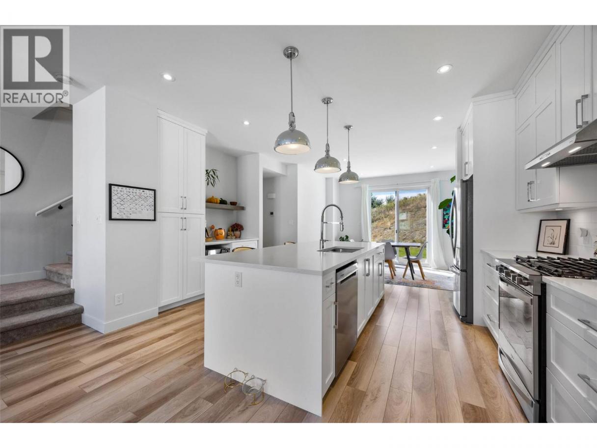 Welcome to this beautifully finished end-unit townhouse in the sought-after River Gate development at Sun Rivers. Sitting below the 6th hole, this home offers 1935 sq ft of living space across three levels and combines style and function in a prime location. The ground level entry offers a single-car garage and a large entry way. A bonus flex room currently used as workout room and 4-piece bathroom add extra convenience for guests or family. Under-stair storage and shelving in the garage make organization a breeze. On the main floor you will find an inviting open-concept space featuring a large bright kitchen with quartz countertops, a central island, gas range and a built-in coffee bar—perfect for morning routines or entertaining. Sliding glass doors lead to a private patio with fantastic views of the valley. Additionally, you have a natural gas BBQ hook-up and added greenspace thanks to the end-unit location. A 2-piece powder room rounds out the floor. Upstairs are three generous bedrooms including a spacious primary retreat on the view side, complete with a walk-in closet and luxurious 3-piece ensuite featuring a double vanity. A well-designed laundry area with built-in shelving is also located on the top level with another 4-piece main bathroom. Enjoy year-round comfort with geothermal heating and cooling, 200AMP service, and the peace of mind of a newer home with no GST. Just a short walk to local shopping, dining, and golf, this home offers both lifestyle and convenience. Book your showing today to join this great community! (id:6769)