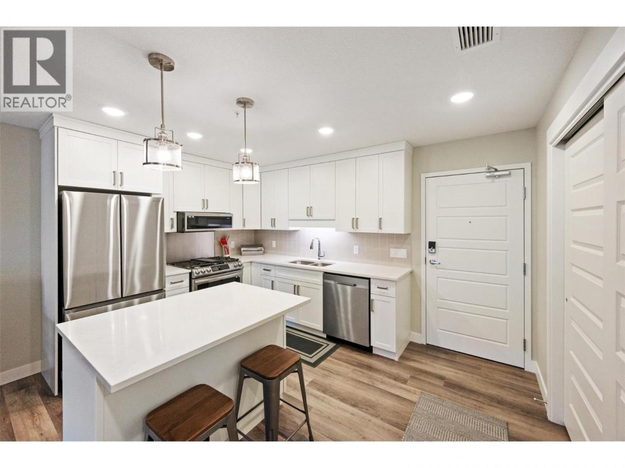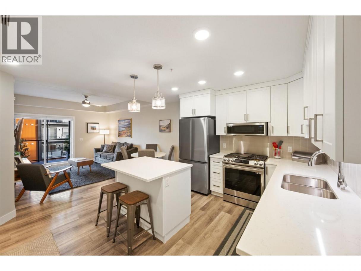 Welcome to Brightwater. Beautifully furnished and concrete built, this quiet 2 bedroom condo offers the ultimate lakeside retreat. Triple pane windows along with your personal heat pump Wi-Fi controlled ensure exceptional serenity, and with 8 years remaining on the home warranty, peace of mind comes included. One of the rare suites featuring an upgraded kitchen with natural gas stove and a deck side gas BBQ hookup, it’s perfect for hosting and enjoying fireworks or long summer evenings outdoors. This home is also among the select few that come with two parking stalls, 1 outside and a 2nd in a heated/AC controlled garage. The building features a secure pin pad entry, and access to a community fitness room and workshop. Brightwater is just steps from a public beach and surrounded by stunning mountain and vineyard views, this property is ideal as a full time residence or a lock and leave getaway. A truly effortless way to enjoy living in a lakeside community. (id:6769)
