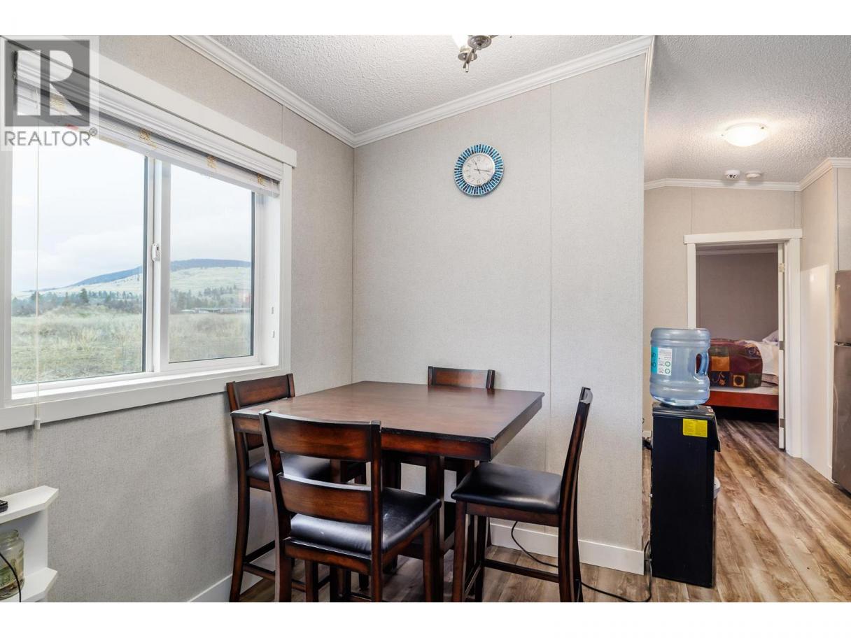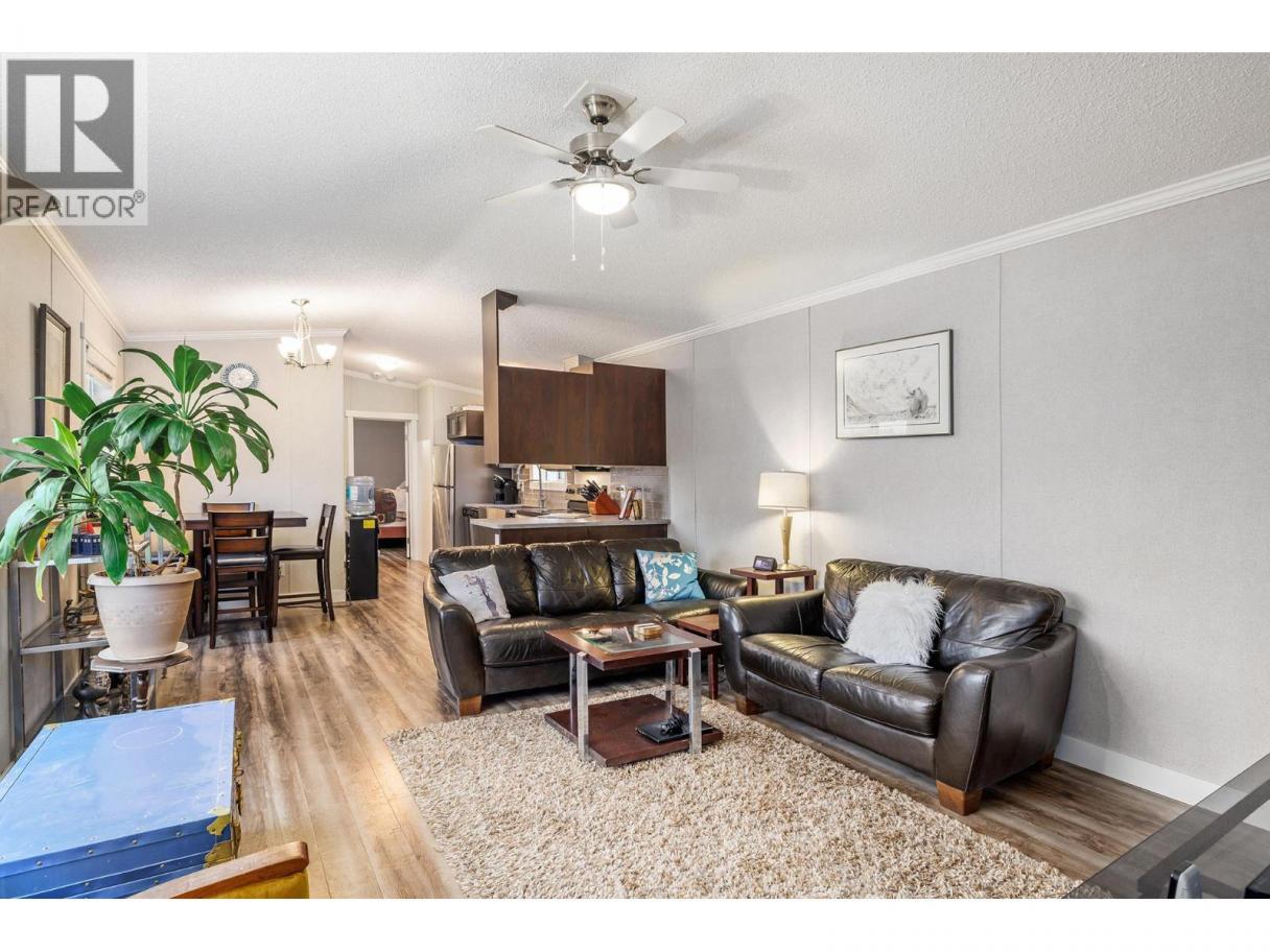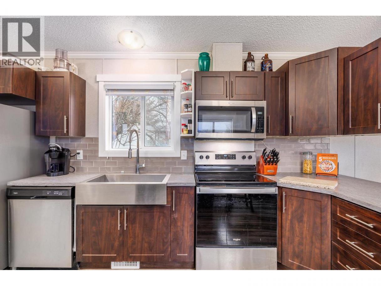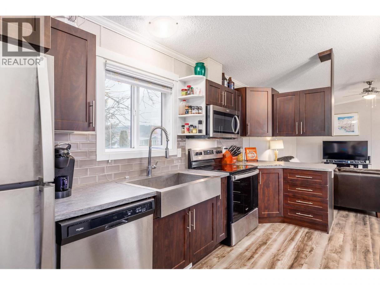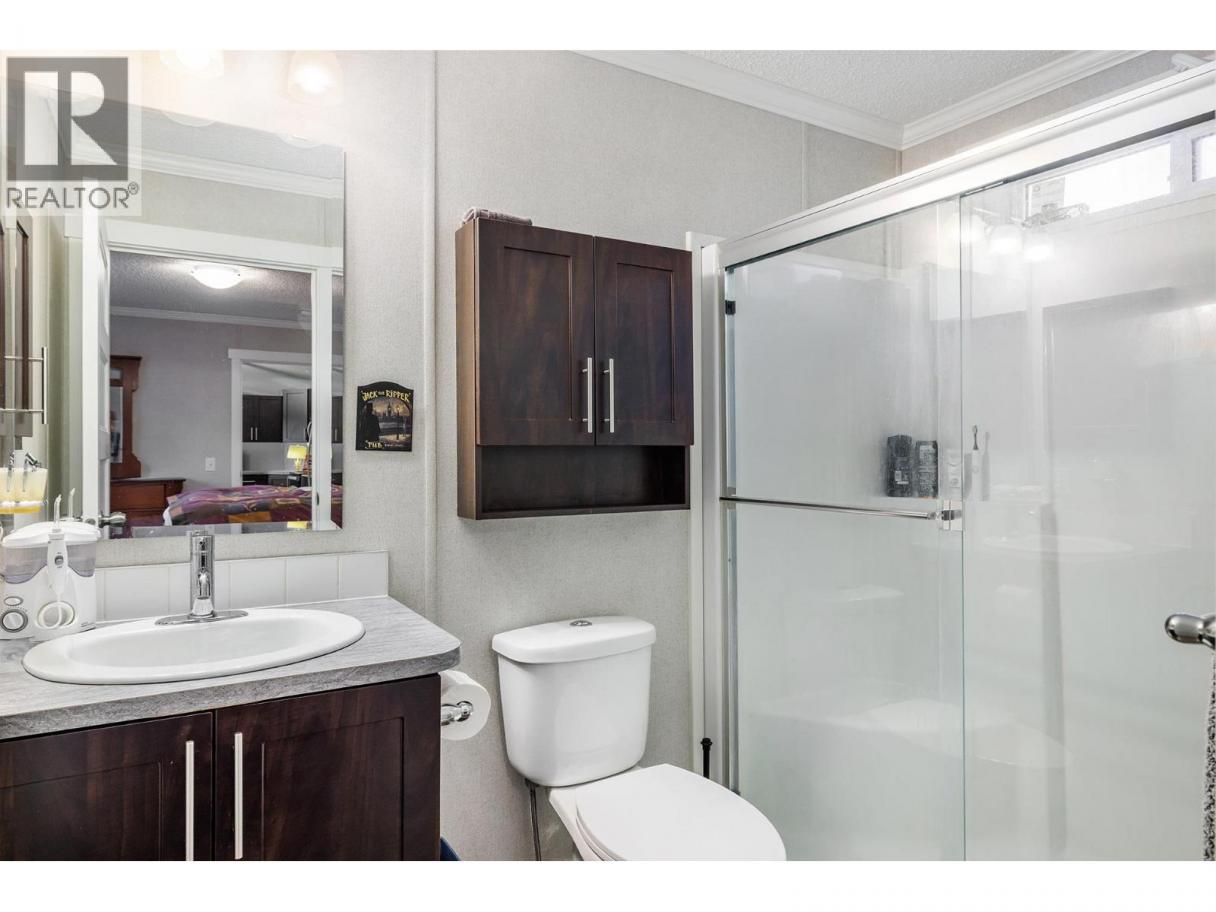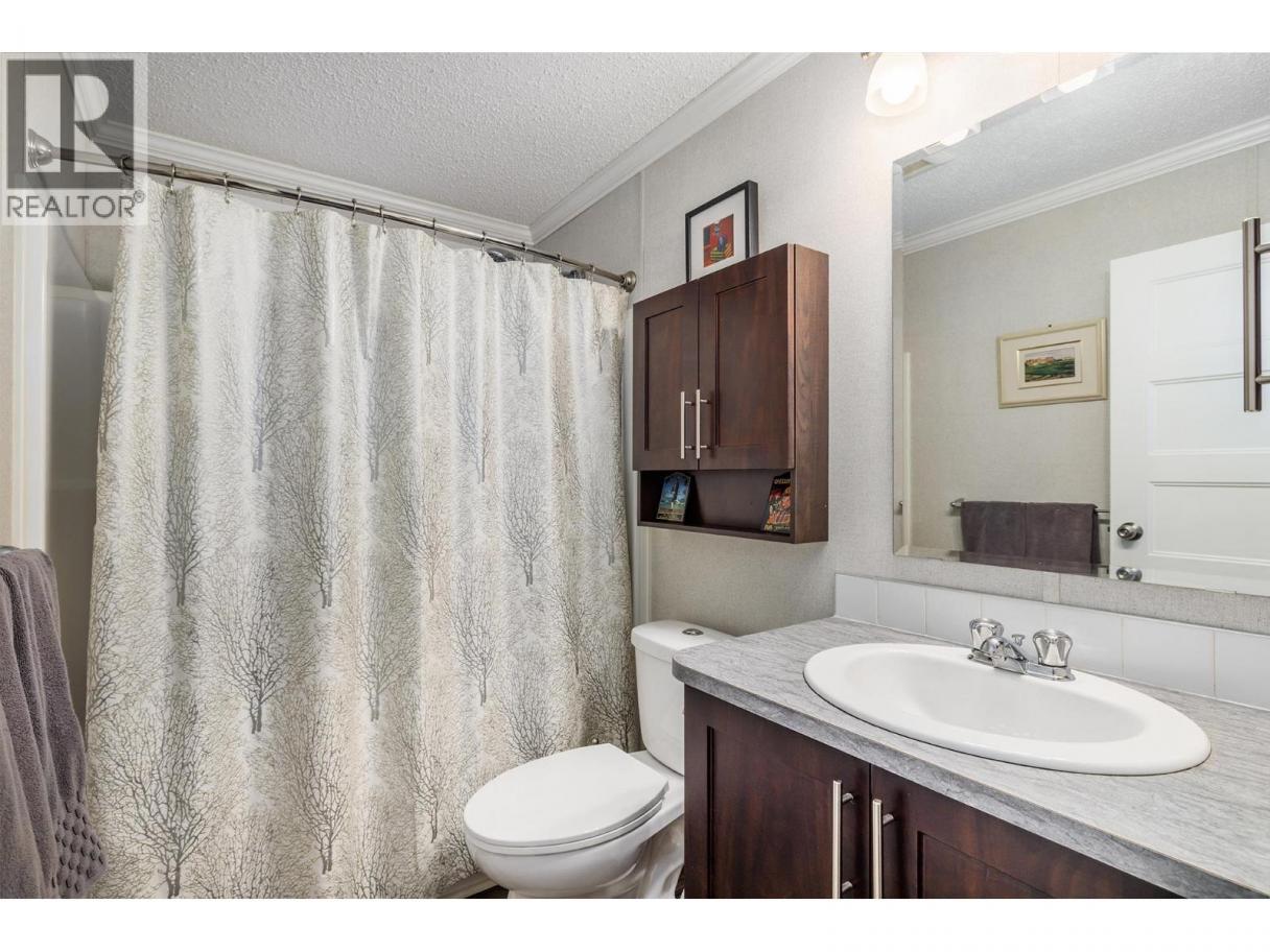 Stylish, modern living at Duck Lake Estates! Built in 2021, this beautiful 905 sq. ft. manufactured home offers 2 bedrooms and 2 bathrooms in a bright, open-concept layout. Cathedral ceilings enhance the spacious feel, while the thoughtfully designed floor plan places the bedrooms at opposite ends for optimal privacy. The stylish kitchen is the heart of the home, equipped with stainless steel appliances, an over-sized farm house sink, and ample work space. The primary bedroom includes a walk-in closet and a private ensuite with 5-ft walk-in shower. A convenient laundry/mud room provides exterior access in addition to the main front entry. Situated on a generous lot looking out over green space, this property includes a 7’x7’ shed and ample space to potentially add a carport or garage. Conveniently located just steps to the Okanagan Rail Trail - and minutes from the airport, UBCO, shopping, restaurants, and lakes. Two pets are permitted (no size restrictions). A perfect blend of comfort, style, and location, this home is move-in ready and waiting to welcome its next owners—book your private showing today. (id:6769)