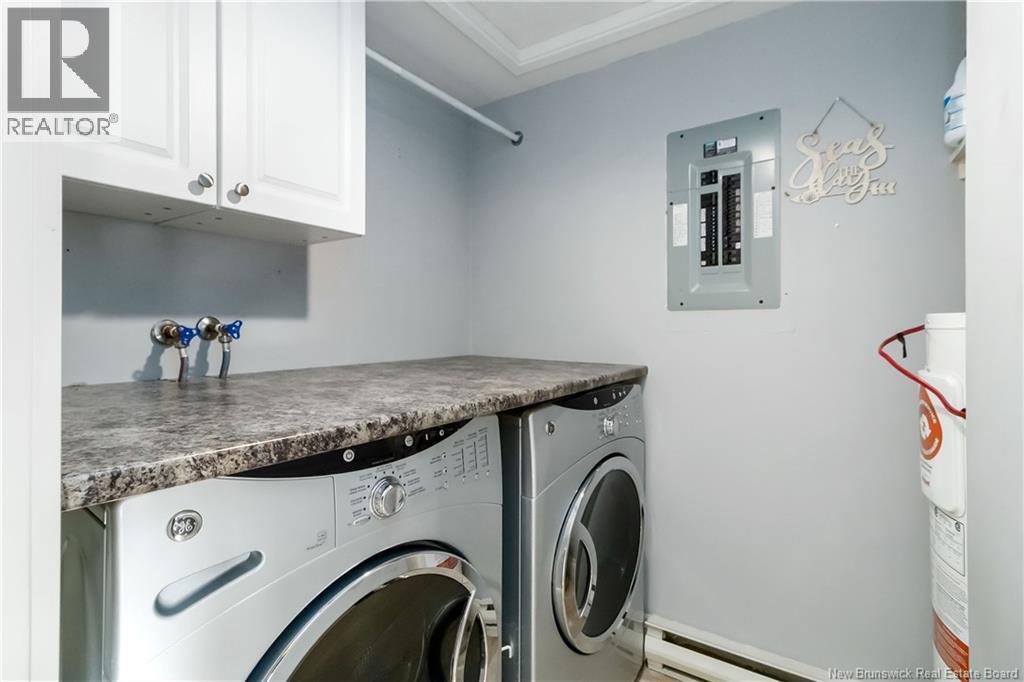Beautifully updated top-floor condo overlooking Jones Lake, ideally located steps from walking trails and minutes to downtown. This well-maintained unit offers a rare blend of privacy, space, and functionality seldom found in condo living. Primarily brick construction with wood siding facing the lake provides durability, energy efficiency, and timeless curb appeal. Bright open-concept living and dining area is filled with natural light and features hardwood floors throughout, complemented by ceramic tile in the bathrooms. The updated kitchen offers stylish cabinetry, quality finishes, and a practical layout ideal for everyday living and entertaining. The spacious primary bedroom includes a walk-in closet and a private two-piece ensuite, while the second bedroom is generously sized and located near the full bathroom. Separate laundry room adds convenience, and storage is exceptional for a condo. The oversized attached garage includes an extra-large storage area; perfect for bikes, seasonal items, or hobby gear; an outstanding and rarely available feature. Additional highlights include energy-efficient upgrades, a ductless mini-split heat pump, and a quiet owner-occupied setting. A rare opportunity to enjoy lake views, trails, and downtown amenities while benefiting from space, storage, and efficiency in central Moncton. (id:6769)