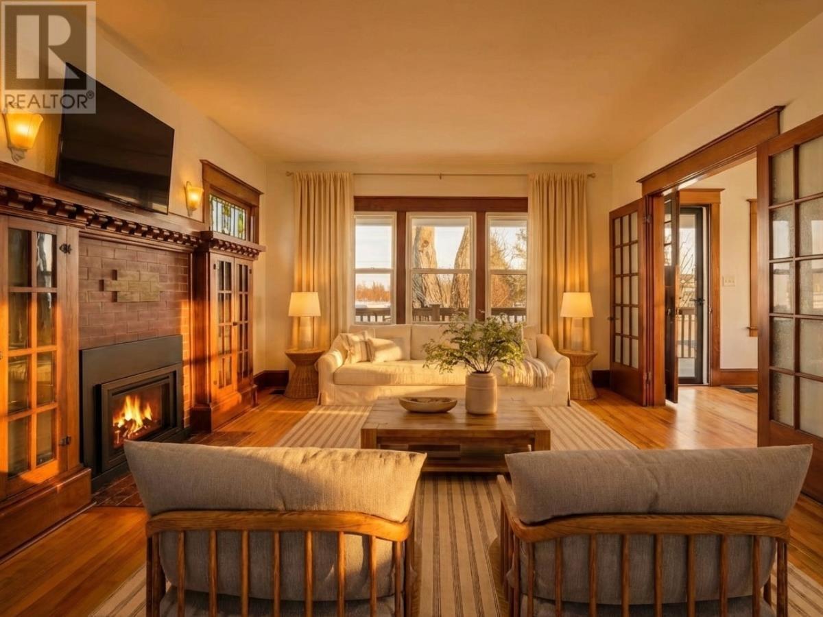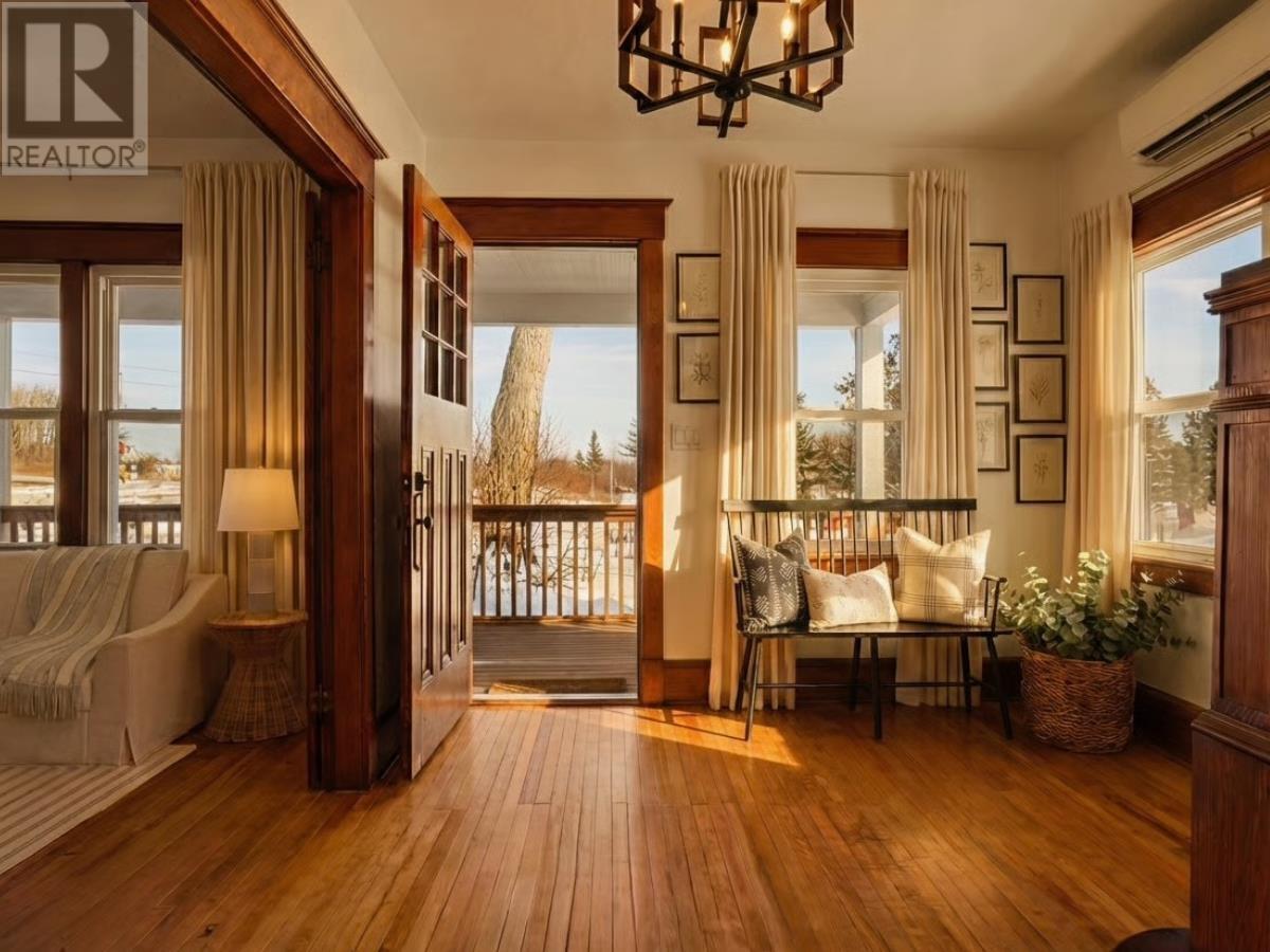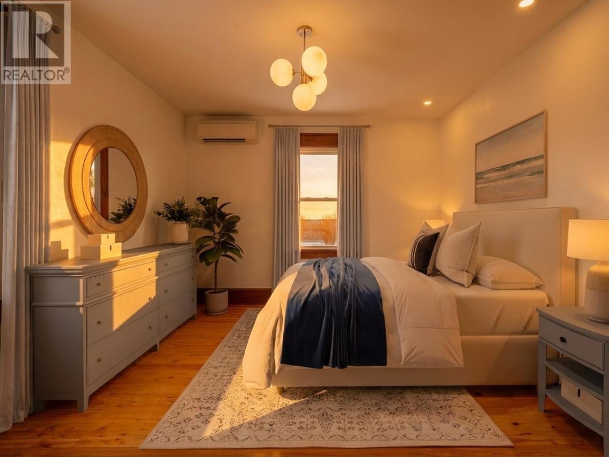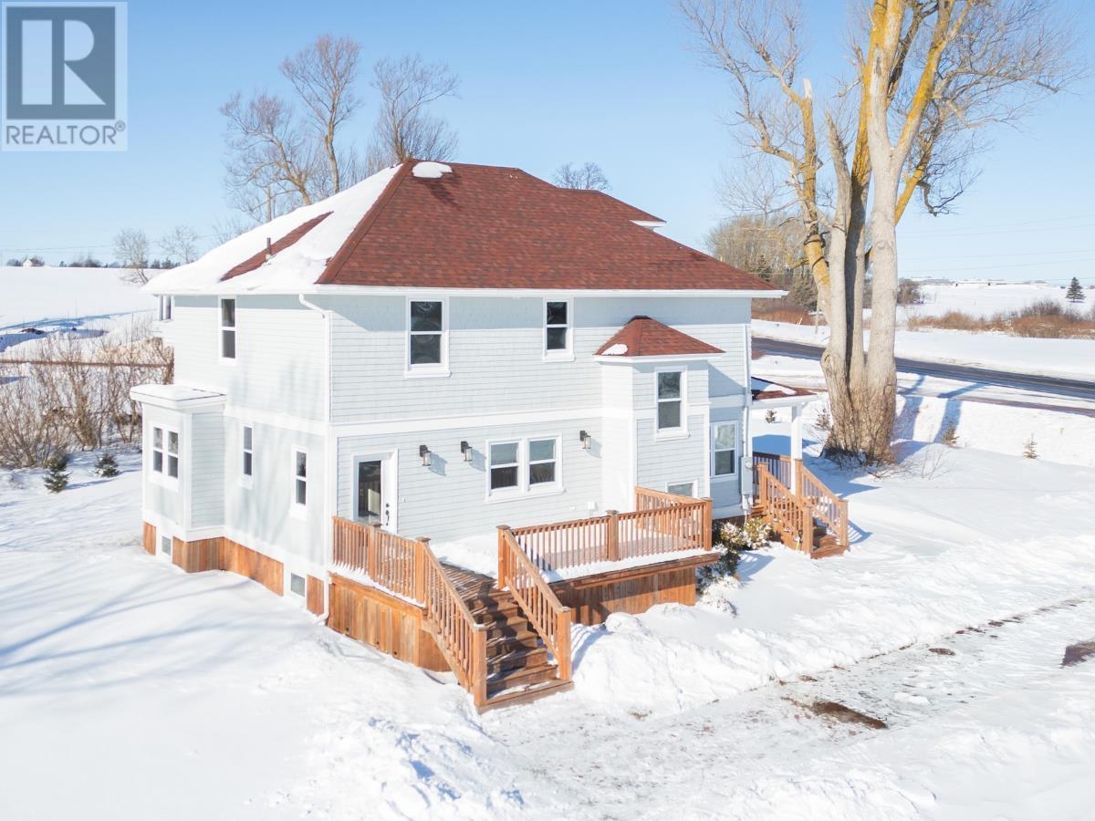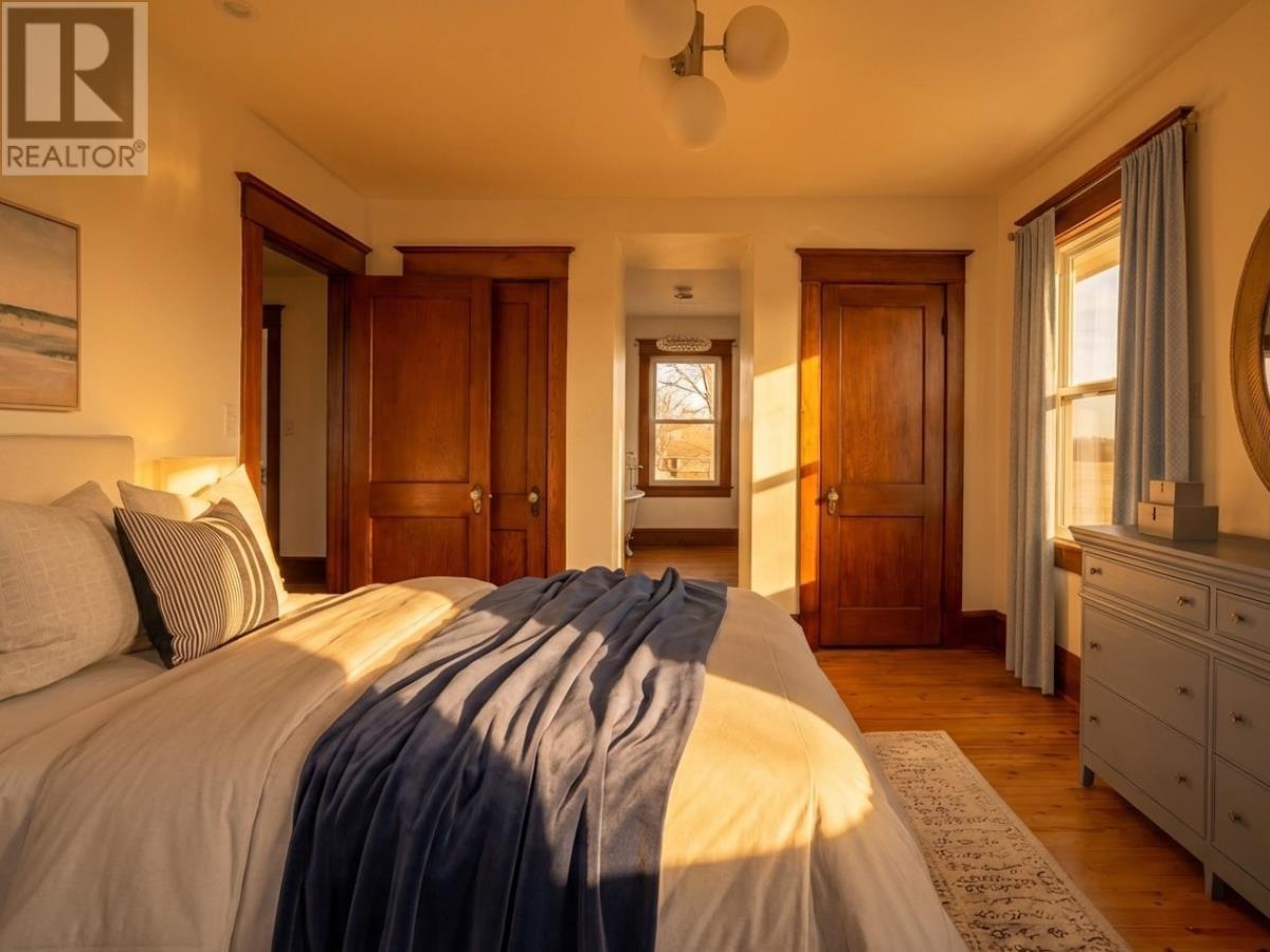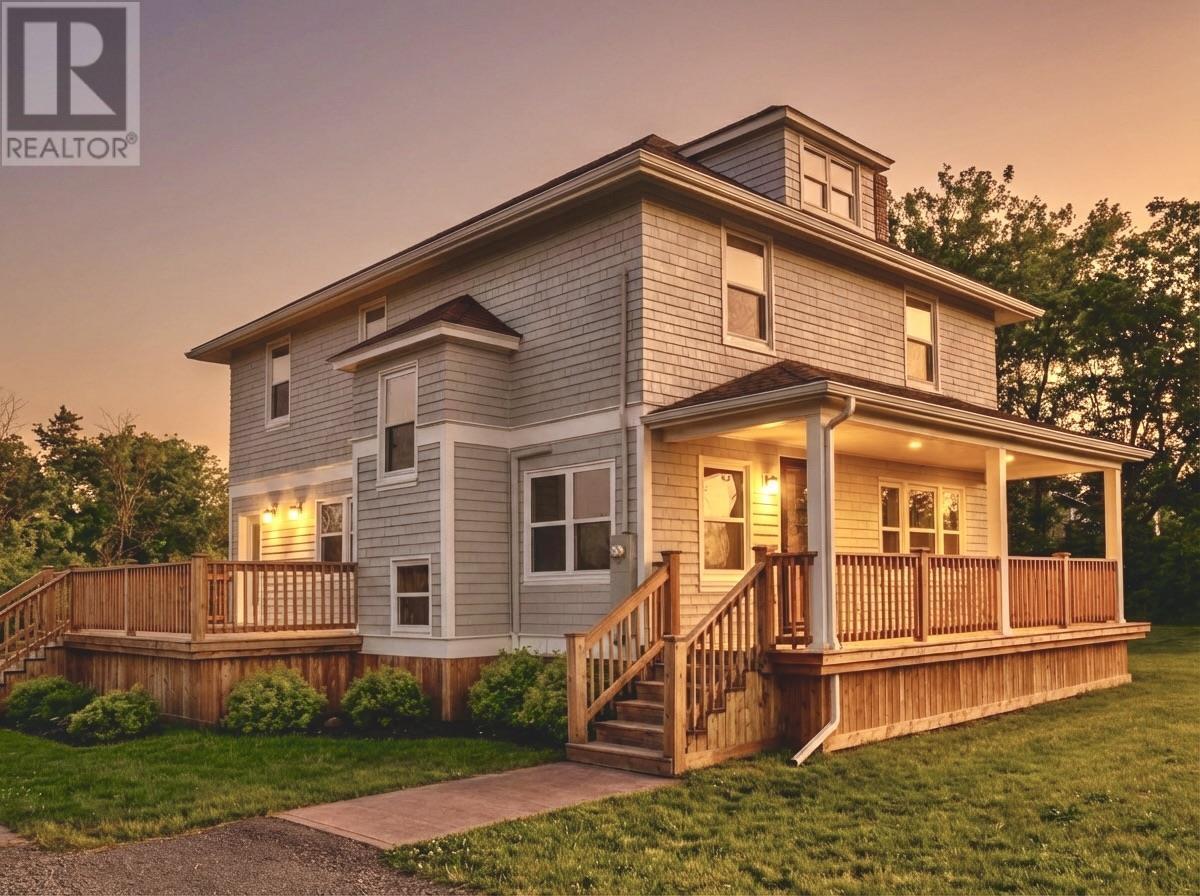 Set on 1.25 acres along the banks of the Vernon River, this restored historic American Foursquare is a rare waterfront residence in the heart of Eastern Prince Edward Island, ideally positioned between Charlottetown and Montague. The setting is calm and expansive, with the river as a constant presence beyond the home. The restoration has been approached with care and restraint, preserving what gives the property its lasting character: original hardwood and pine floors, rich unpainted natural wood trim, and the timeless proportions that define this classic architectural form. A covered front entry introduces generous principal rooms, including a main-level powder room, a dedicated office or study, and elegant spaces designed for both gathering and quiet everyday living. At the centre, a beautifully appointed kitchen opens to a waterview deck where mornings begin over the river and evenings settle into stillness. The second level offers four bedrooms, including a serene primary suite overlooking the water, complete with a freestanding tub and separate shower, as well as a full guest bathroom. Above, the finished attic provides an inspired bonus level, a light-filled retreat for creative work, reading, studio space, or play. The finished lower level expands the home dramatically with a huge living room, two additional bedrooms, a versatile flex room ideal for a gym or storage, a full bathroom, and a designated laundry room. With extensive mechanical improvements, including multiple heat pumps, updated services, and a fully finished concrete foundation, this waterfront home is a rare example of completeness, where heritage craftsmanship and modern comfort meet in exceptional balance. Photos Virtually Staged. (id:6769)