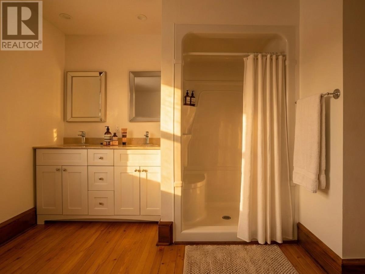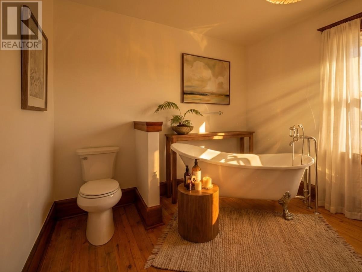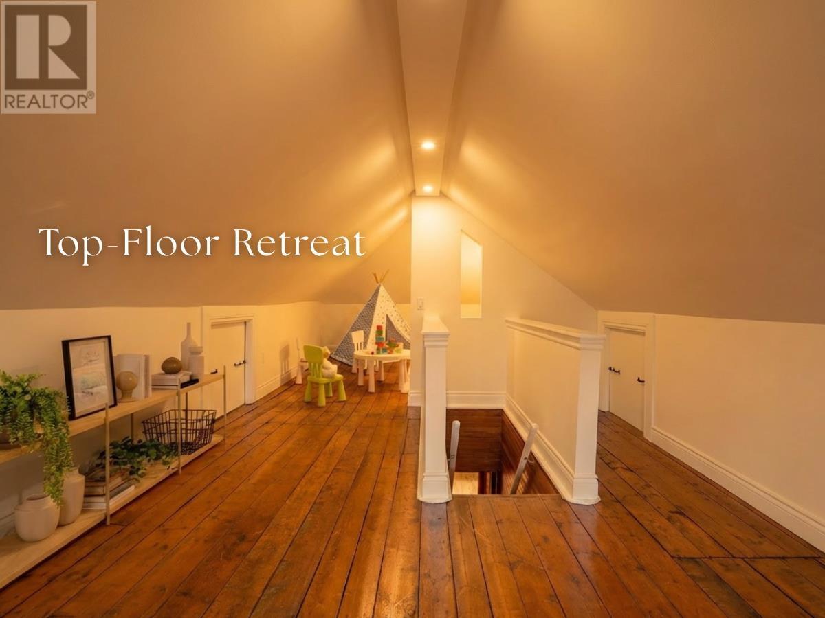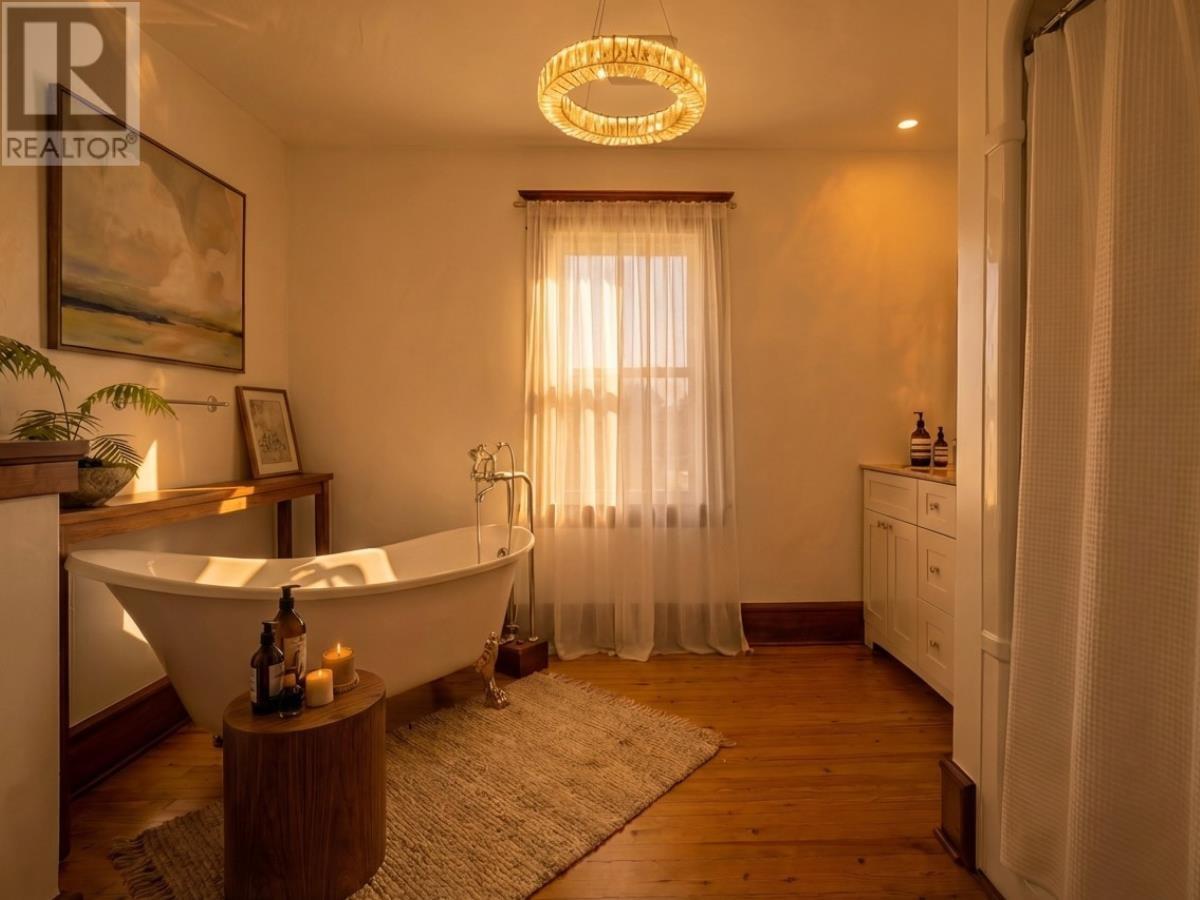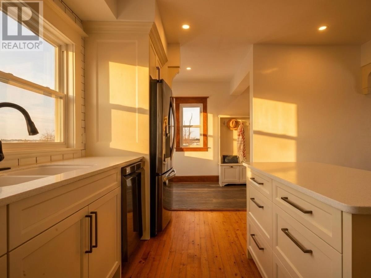 Set on 1.25 acres along the banks of the Vernon River, this restored historic American Foursquare is a rare waterfront residence in the heart of Eastern Prince Edward Island, ideally positioned between Charlottetown and Montague. The setting is calm and expansive, with the river as a constant presence beyond the home. The restoration has been approached with care and restraint, preserving what gives the property its lasting character: original hardwood and pine floors, rich unpainted natural wood trim, and the timeless proportions that define this classic architectural form. A covered front entry introduces generous principal rooms, including a main-level powder room, a dedicated office or study, and elegant spaces designed for both gathering and quiet everyday living. At the centre, a beautifully appointed kitchen opens to a waterview deck where mornings begin over the river and evenings settle into stillness. The second level offers four bedrooms, including a serene primary suite overlooking the water, complete with a freestanding tub and separate shower, as well as a full guest bathroom. Above, the finished attic provides an inspired bonus level, a light-filled retreat for creative work, reading, studio space, or play. The finished lower level expands the home dramatically with a huge living room, two additional bedrooms, a versatile flex room ideal for a gym or storage, a full bathroom, and a designated laundry room. With extensive mechanical improvements, including multiple heat pumps, updated services, and a fully finished concrete foundation, this waterfront home is a rare example of completeness, where heritage craftsmanship and modern comfort meet in exceptional balance. Photos Virtually Staged. (id:6769)