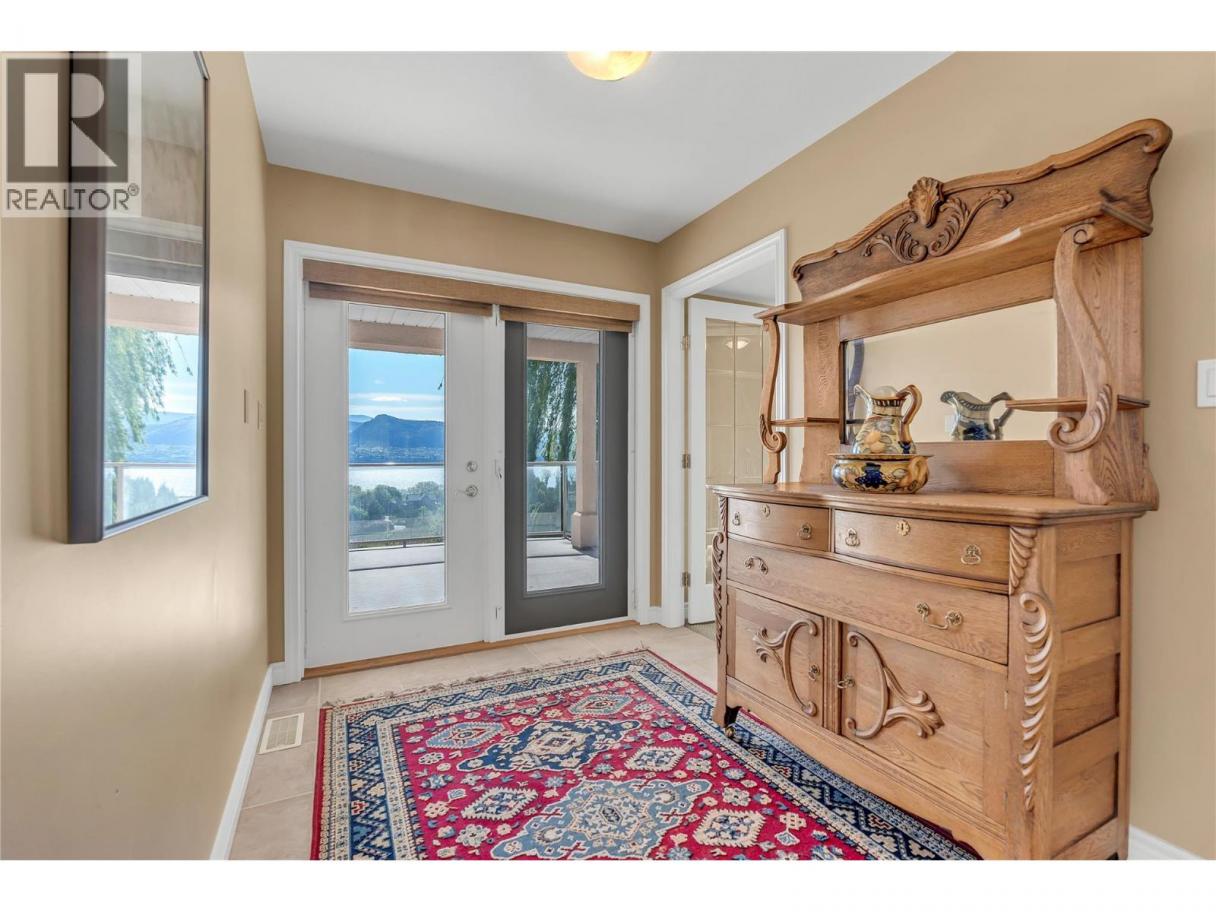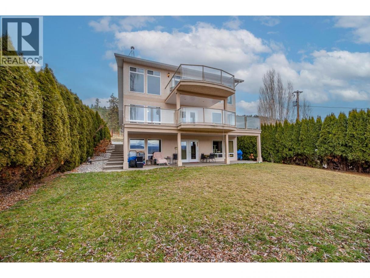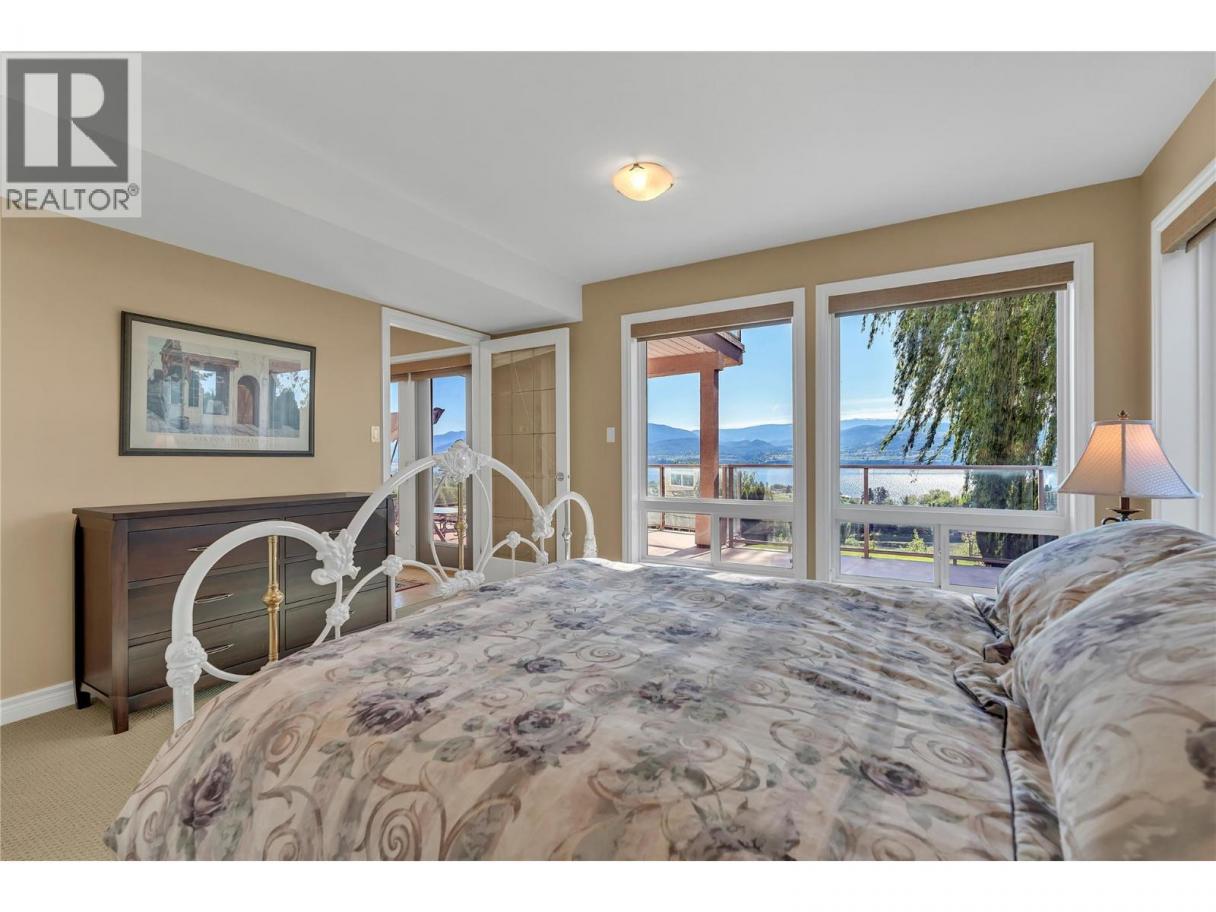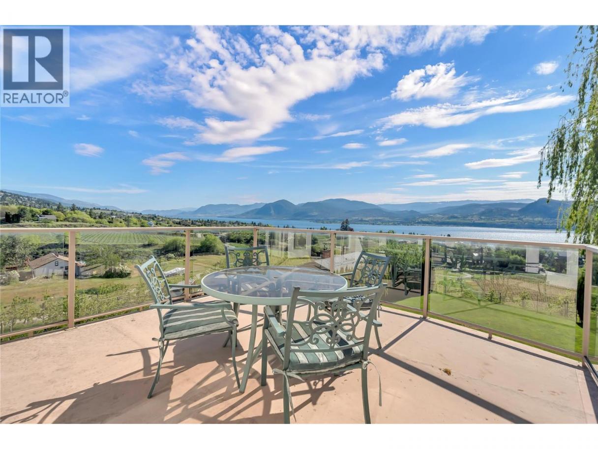 Gorgeous Lake Views | Flexible Living in Naramata | 15 Min to Penticton. Set above Okanagan Lake with sweeping 180-degree views of water and vineyards, this solidly built 2004 custom home offers nearly 3,500 sq ft of flexible living space just minutes from Naramata Village. The home’s unique, view-oriented layout is designed to take full advantage of its setting. The entry level features three bright bedrooms, two full bathrooms, and laundry, creating a quiet and practical bedroom level separate from the upper level living spaces. Up the curved staircase is the heart of the home, where cherrywood floors, a cozy standalone fireplace, and two living areas frame stunning lake views. The kitchen, dining area, and entertaining deck are perfectly positioned for gatherings, while two additional flex rooms provide space for home offices, hobbies, or storage. The walkout lower level includes a private two-bedroom, one-bath suite with its own entrance, laundry and patio—ideal for extended family, guests, or added flexibility over time. A low-maintenance, tree-lined backyard offers privacy without the upkeep. Minutes to wineries, beaches, the KVR Trail, and all that Naramata has to offer, this is a well-constructed home with exceptional views, adaptable space, and the freedom to enjoy now and personalize over time. 24 hours’ notice required for showings. (id:6769)