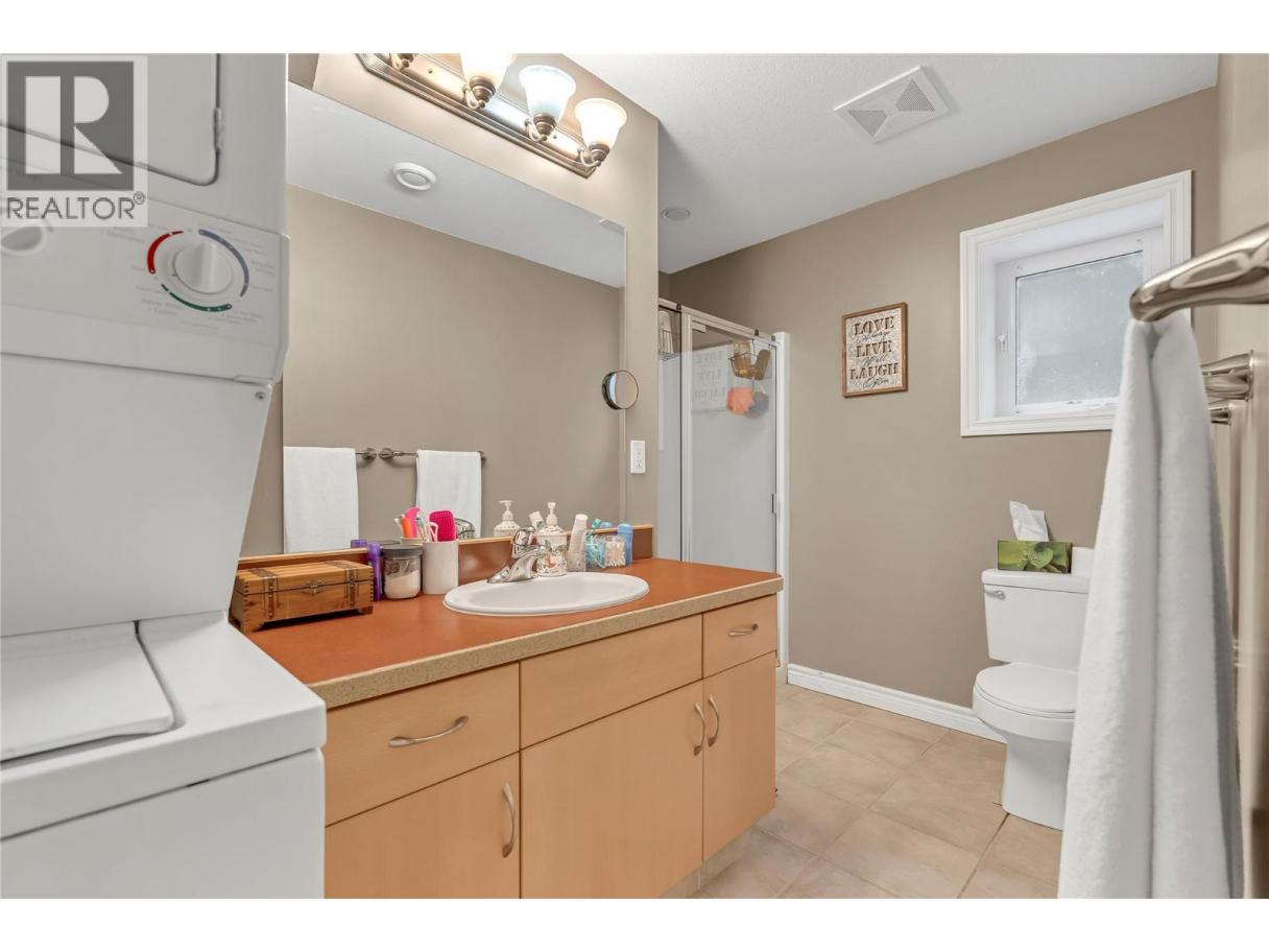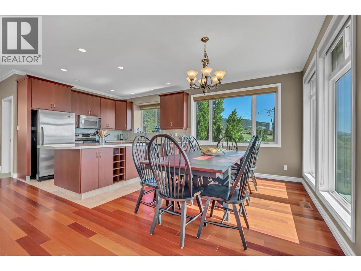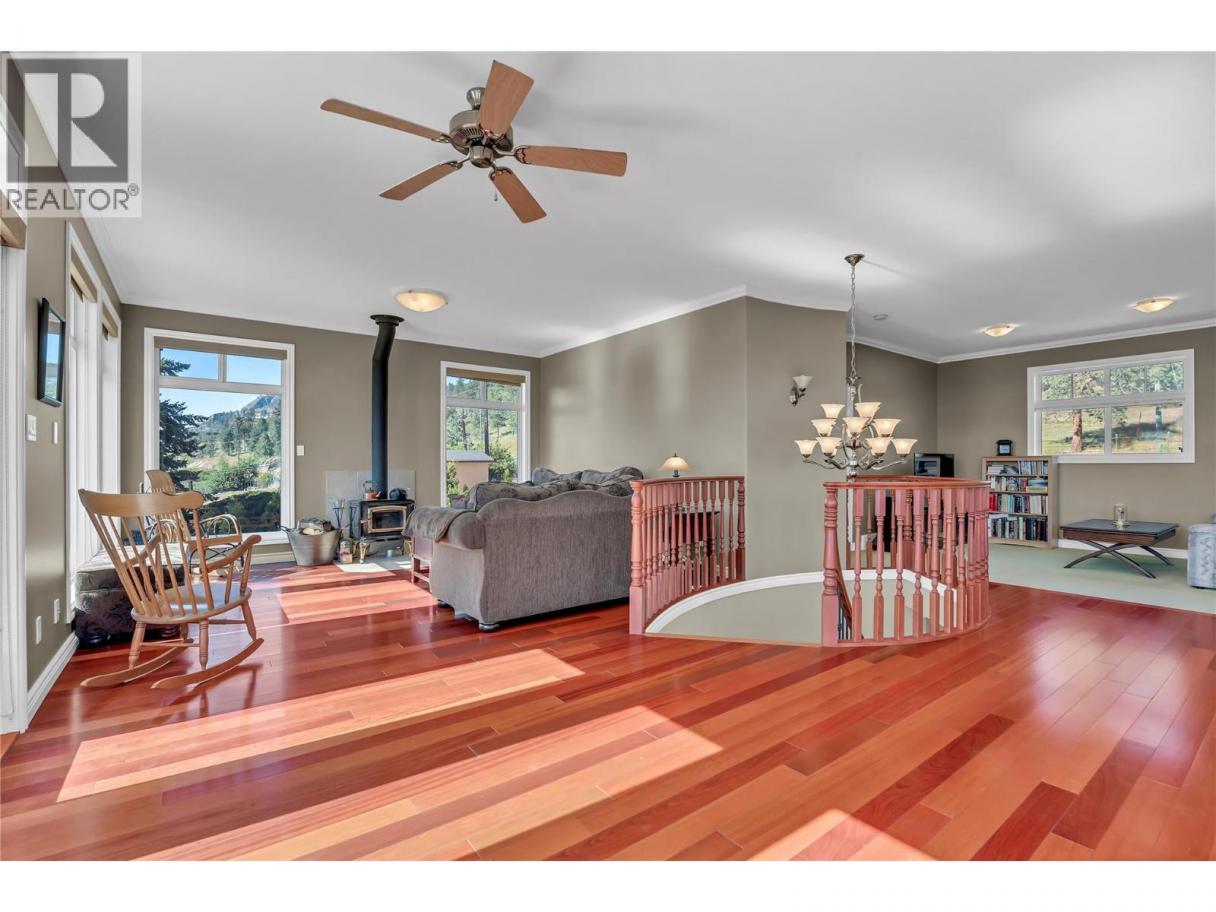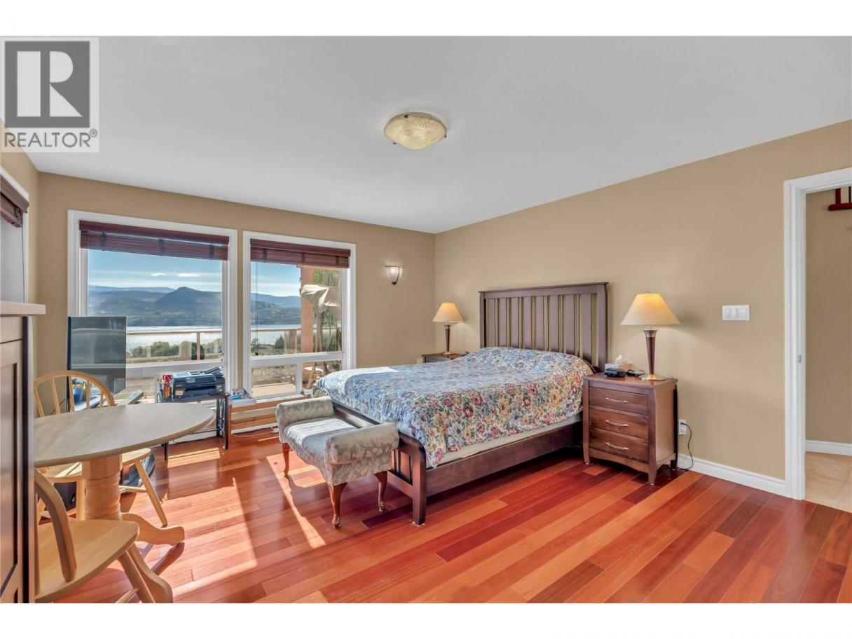 Gorgeous Lake Views | Flexible Living in Naramata | 15 Min to Penticton. Set above Okanagan Lake with sweeping 180-degree views of water and vineyards, this solidly built 2004 custom home offers nearly 3,500 sq ft of flexible living space just minutes from Naramata Village. The home’s unique, view-oriented layout is designed to take full advantage of its setting. The entry level features three bright bedrooms, two full bathrooms, and laundry, creating a quiet and practical bedroom level separate from the upper level living spaces. Up the curved staircase is the heart of the home, where cherrywood floors, a cozy standalone fireplace, and two living areas frame stunning lake views. The kitchen, dining area, and entertaining deck are perfectly positioned for gatherings, while two additional flex rooms provide space for home offices, hobbies, or storage. The walkout lower level includes a private two-bedroom, one-bath suite with its own entrance, laundry and patio—ideal for extended family, guests, or added flexibility over time. A low-maintenance, tree-lined backyard offers privacy without the upkeep. Minutes to wineries, beaches, the KVR Trail, and all that Naramata has to offer, this is a well-constructed home with exceptional views, adaptable space, and the freedom to enjoy now and personalize over time. 24 hours’ notice required for showings. (id:6769)