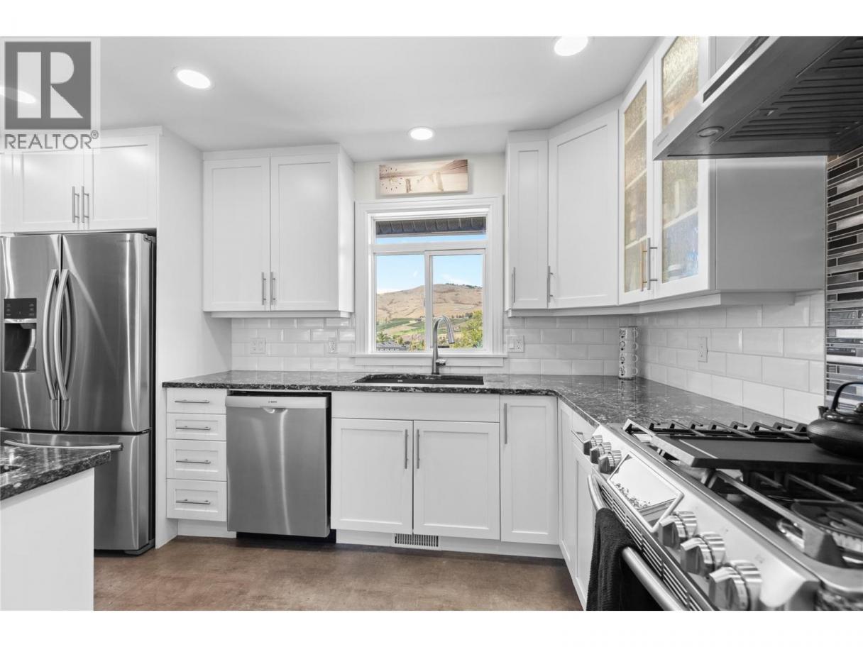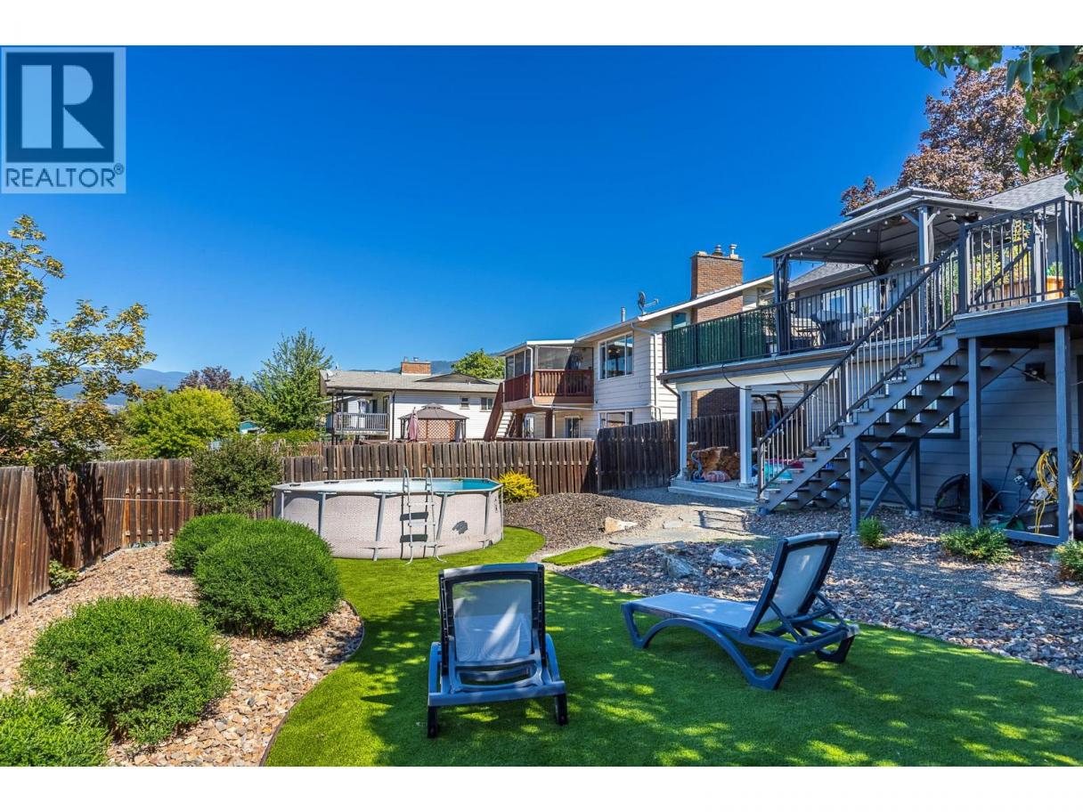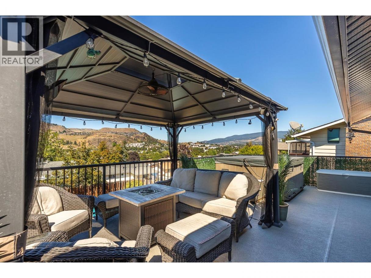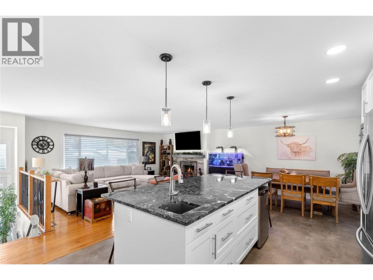 Welcome home! This move-in ready 5 bedroom, 3 bathroom plus den residence provides exceptional space for a growing family. Extensively updated in 2018, it showcases a bright, open concept kitchen, dining and living area. Ideal for entertaining, the chef’s kitchen features quartz counters, modern white soft-close cabinetry, a gas range, and an oversized island with bar seating. The sunlit living room offers hardwood floors, plenty of room for furnishings, and a cozy wood-burning fireplace. The main bath includes dual sinks, heated tile floors, and a tiled shower. Down the hall sits one of the 5 bedrooms, while the spacious Primary retreat at the end includes a spa-like ensuite with heated floors, walk-in shower, oversized soaker tub, built-in vanity and private water closet. French doors open to a serene patio and hot tub, the perfect spot to unwind while enjoying the view. The expansive upper deck is ideal for outdoor dining or lounging, with direct access from the dining room and Primary suite. Downstairs, a generous recreation room with gas fireplace, three additional bedrooms, laundry with 3-piece bath, and a den/office with separate entrance provide endless options. A covered lower patio extends your living space outdoors, backyard is low-maintenance with synthetic turf and rock scaping. With ample storage, versatile spaces, and a layout that balances comfort with style, this home is truly move-in ready. Book your private showing today and start imagining life here! (id:6769)