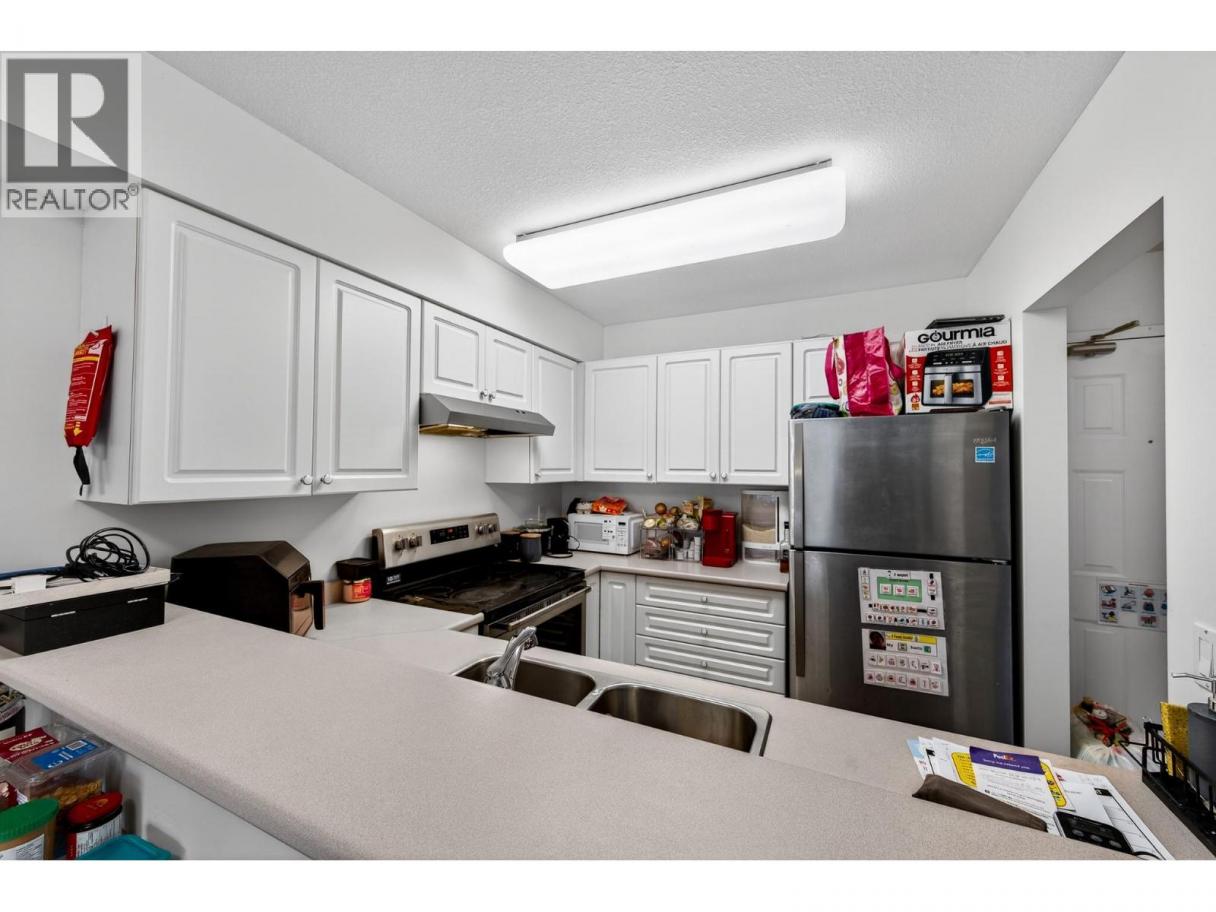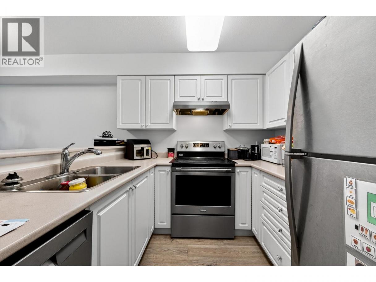 Nicely updated, spacious 1 bedroom condo that is centrally located, close to transportation, shopping and city amenities. This unit has seen upgrades to vinyl plank flooring throughout the unit. The open floor plan allows for seamless integration from the kitchen through to the living and dining room spaces. The kitchen features a good amount of storage and the stainless steel appliances have been updated. The living room walks out to a covered deck which has river and valley views. This unit is facing the east, getting great morning and mid day light! The bedroom is very large and has room for a good amount of furniture. There is a walk through closet to the 4 piece bathroom. The bathroom also has access from the hallway. Off of the hallway you will find laundry and additional storage. The building itself features a secure entry, elevator and a good amount of parking on site. Showings only Tuesdays, Wednesdays 12pm to 4pm and Saturdays 1pm to 5pm with 24 hours notice. 1 assigned parking stall plus visitor parking. Pets allowed, no taller that 15” at the shoulder. (id:6769)
