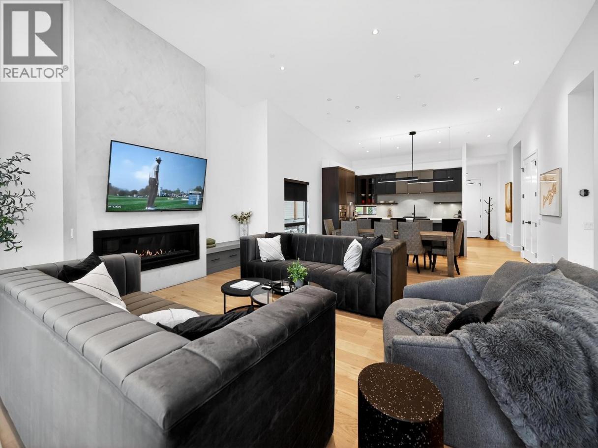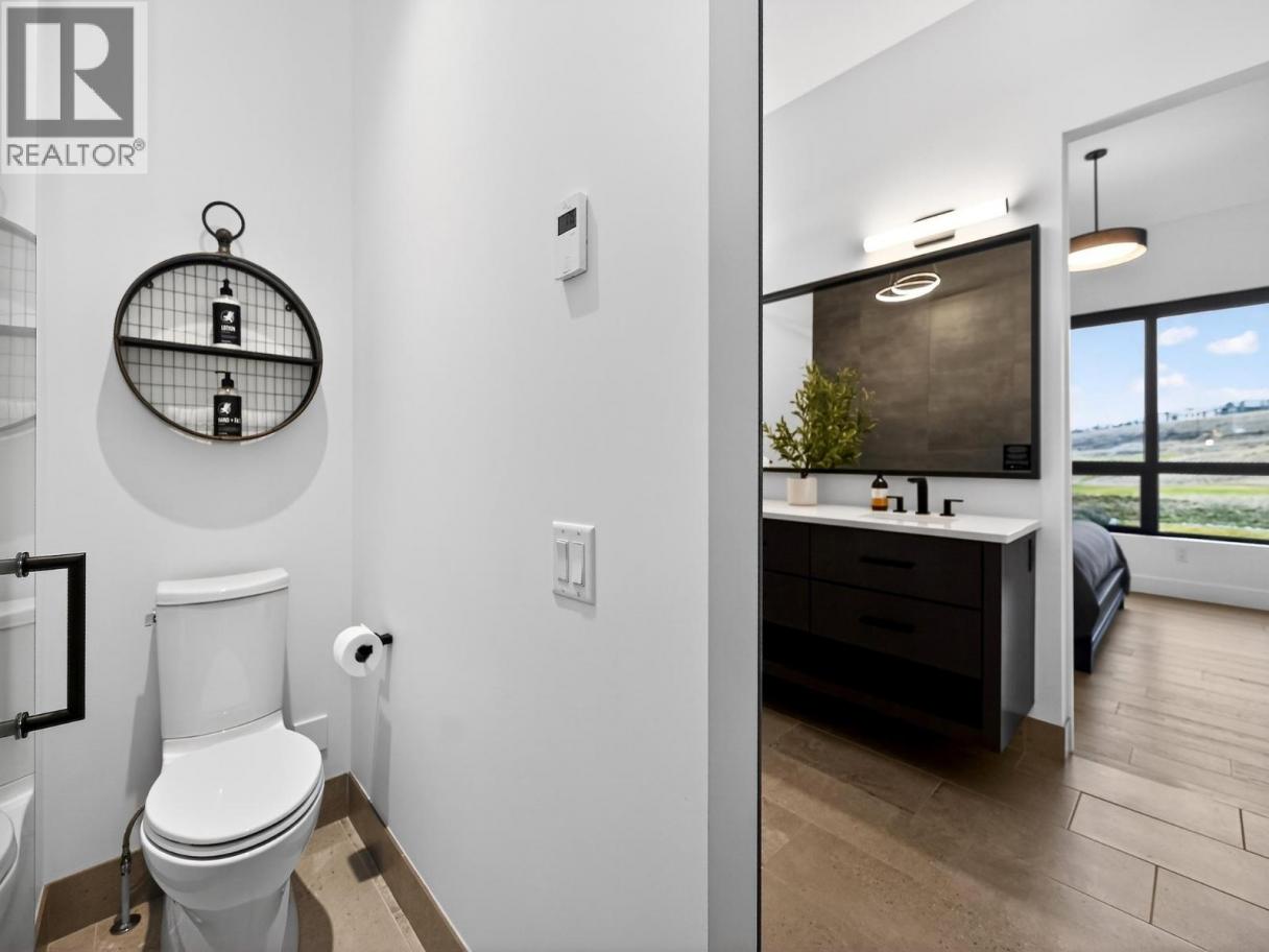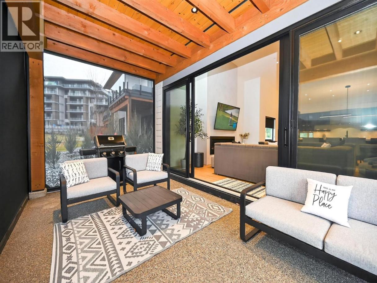 Live on the golf course—not just near it—in this exceptional Fieldglass residence overlooking the first fairway and green of the renowned Ridge Course. Designed for lifestyle and entertainment, the home features a spectacular fully enclosed outdoor living area with screens, offering privacy while preserving sweeping golf-course views and entertainment! SO FUN! The open-concept main level blends comfort and decadence with a gourmet kitchen featuring quartz counters, stainless appliances, and custom cabinetry(of course!) flowing seamlessly into bright, casually elegant dining and living spaces and effortless indoor-outdoor entertaining. A spacious main-floor primary suite with spa-inspired ensuite delivers true level living and private retreat comfort. Upstairs, two guest bedrooms—each with full ensuites—are complemented by a versatile office/flex room or optional fourth bedroom. The partially finished lower level provides additional rec or media space plus abundant storage, while the generous garage accommodates vehicles and all your Okanagan lifestyle essentials. The Fieldglass owners’ pool (the best there is! ) is just steps away. Owners and guests also enjoy access to multimillion $ recreation with gym, studios, indoor pool, hiking, biking, pickleball and tennis. Offered fully furnished and move-in ready, with optional short- or long-term rental participation for added flexibility and investment appeal. Monthly strata of $774 includes exterior/extensive coverage—owners insure contents only. NOTE: GST has been paid and there is no speculation tax (id:6769)
