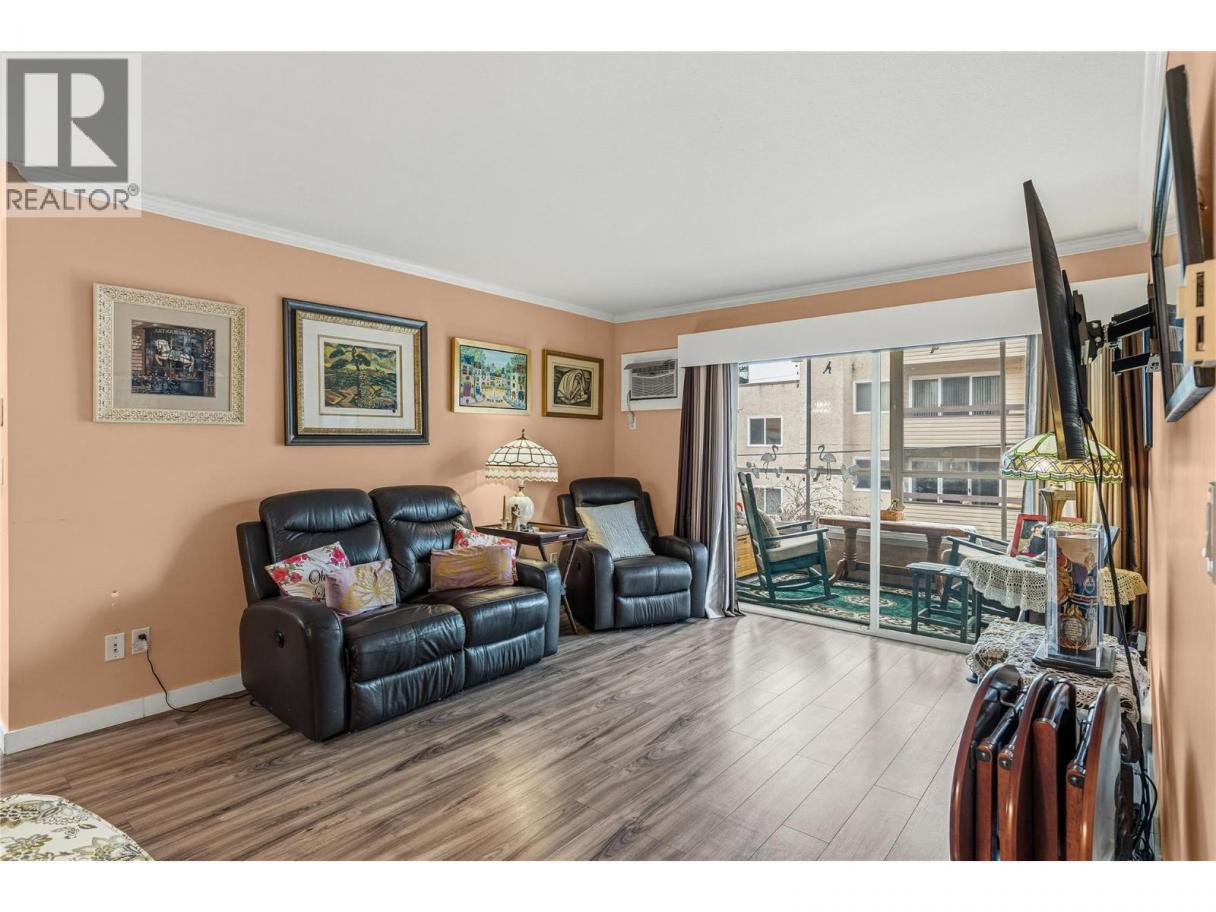 Move-in ready and beautifully maintained, this bright 2-bedroom, 2-bathroom condo is located in a desirable 55+ community just steps from the heart of downtown Vernon. Thoughtfully updated and cared for, the home features laminate flooring throughout and a smart, functional layout ideal for comfortable everyday living. The updated kitchen offers extra cabinet space and newer appliances, making meal prep both easy and enjoyable. Two full bathrooms add convenience, while the in-suite laundry room with extra storage keeps everything neatly organized. One of the highlights of this home is the spacious enclosed sunroom, perfect for year-round enjoyment—whether you’re sipping your morning coffee or unwinding with a book. The secure building is ideally situated within easy walking distance to shopping, grocery stores, and downtown Vernon, offering a truly convenient lifestyle. Additional features include common recreation room on the fourth floor, one well lite outdoor parking stall and a separate storage locker on the same floor. Please note: no cats or dogs permitted. A wonderful opportunity for those seeking a low-maintenance, central, and comfortable home—just move in and enjoy. (id:6769)