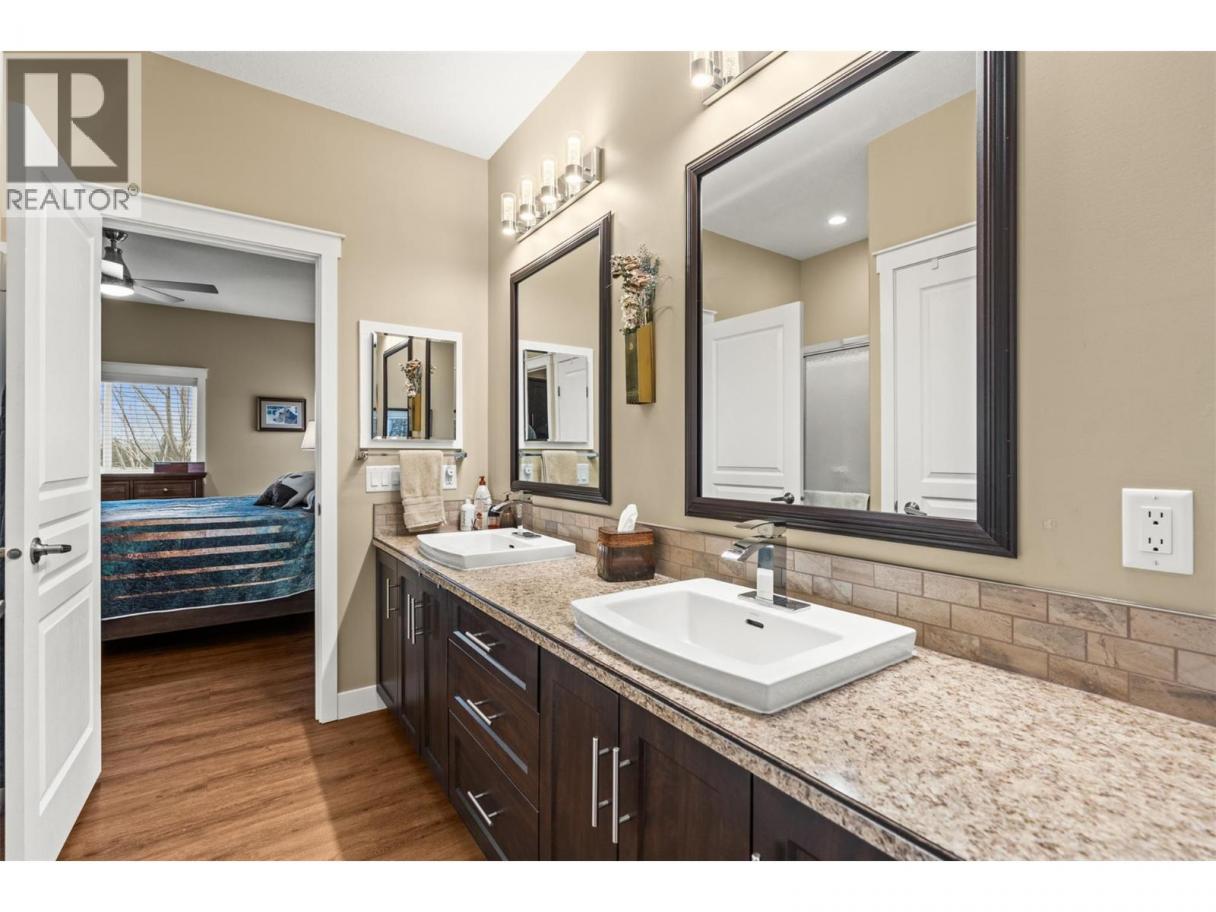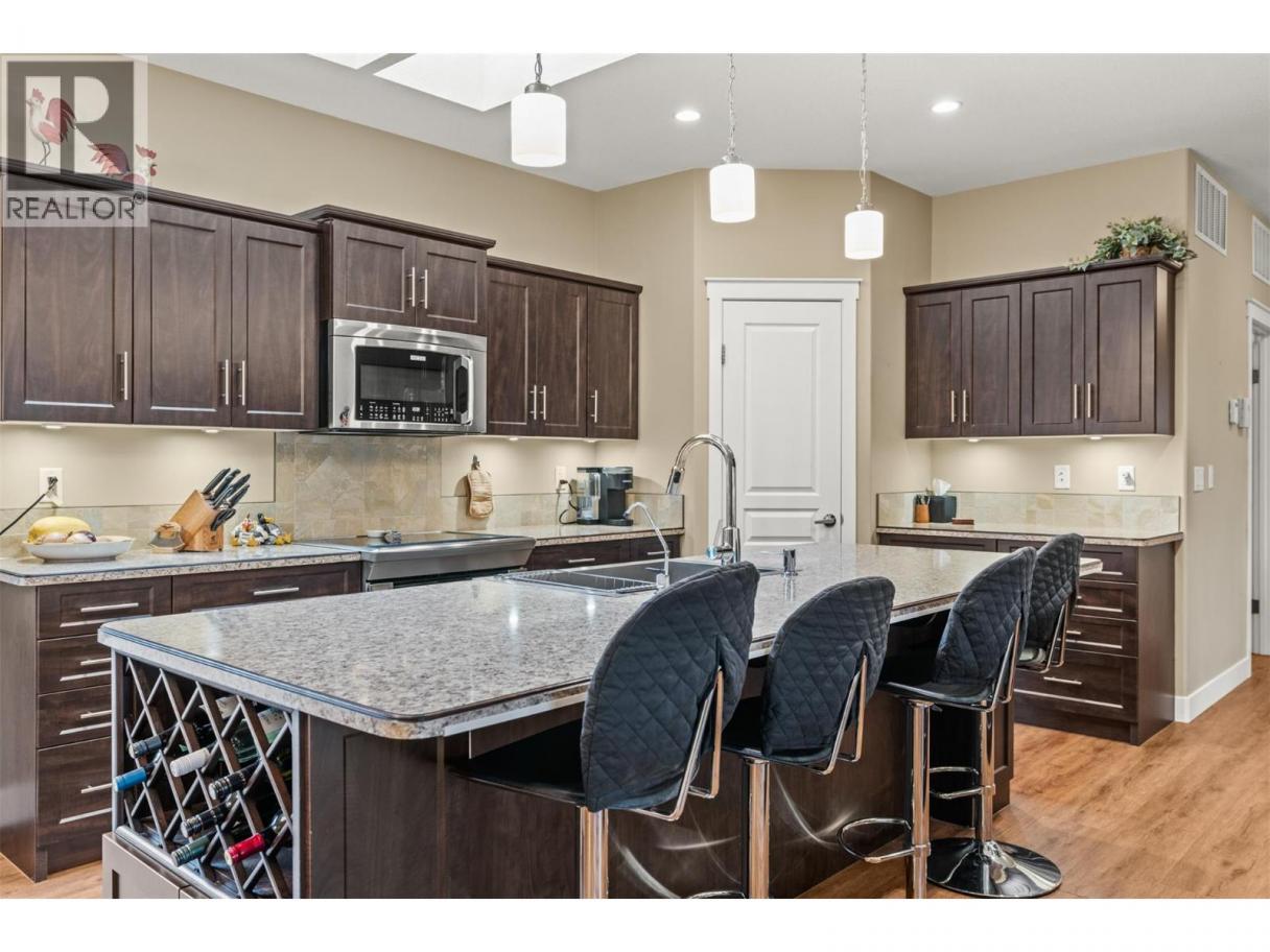 Set on one of the most desirable lots in the complex, this beautifully maintained home offers expansive views and a cozy feel throughout. Thoughtfully designed and meticulously cared for, it delivers the ease and comfort of newer construction without the wait. From the moment you arrive, a massive deck invites slow mornings with coffee or evenings unwinding with a glass of local Okanagan wine. Inside, the layout is both spacious and functional starting with a welcoming family room that flows into an open-galley style kitchen and dining area complete with island and pantry. A secondary living room adds flexibility for entertaining or quiet retreat. The home offers a guest bedroom and a quilting/craft room that's notably oversized and easily convertible into a third bedroom. An additional bathroom and laundry with a sink complete the space. Further a primary bedroom with walk-in closet and private double sink ensuite. Located in a quiet, adult-oriented park with flat walking paths perfect for you and your furry friends, and just minutes to Spallumcheen Golf & Country Club and only 13 minutes to Vernon. A newer home, premium lot, and effortless lifestyle- this one checks all the boxes if you’re looking for a fantastic community feel. (id:6769)