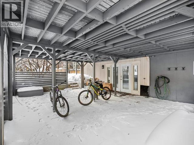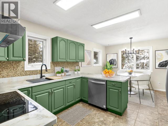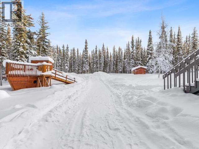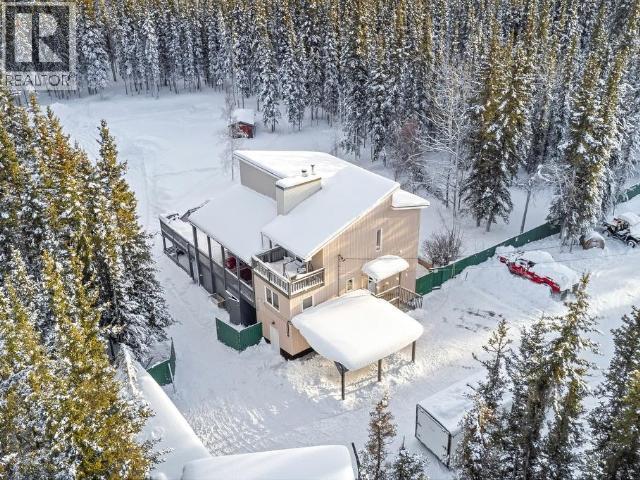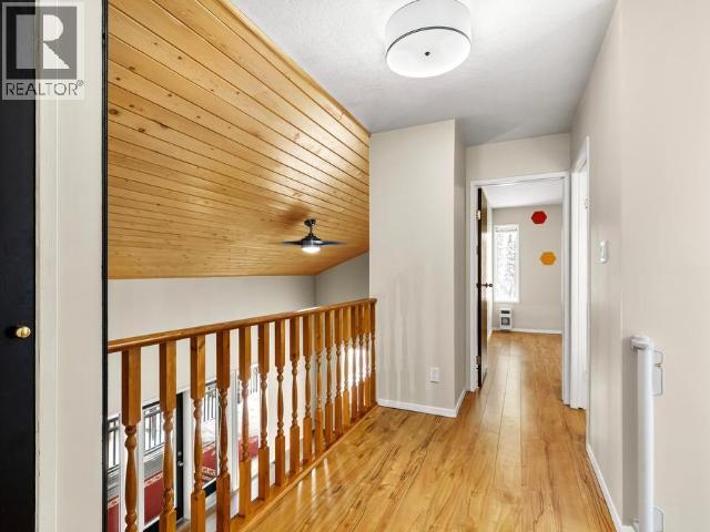 Contemporary 4-bed, 4-bath, 2,800 sqft home son 2.47 private acres in Pine Ridge. The main level offers a refreshed kitchen with dining space and access to the back deck, a formal dining or flexible space, a bright, open living room with vaulted ceilings and a striking wood-burning fireplace feature wall, overlooking the south-facing deck and fully fenced yard. A secondary bedroom with private deck and a convenient half bath complete the level. Upstairs, the primary suite features a walk-in closet, tiled-shower ensuite, and private deck, along with an additional bedroom with private balcony and a full bath. The full walk-out basement provides excellent guest or suite potential with kitchen, living area, bathroom, laundry, separate entry, and fenced area. Extensive upgrades since 2022 include electrical, windows, doors, decking, kitchen, bathrooms, radon mitigation, and water treatment. Detached shop, ample parking, approved septic, 175' well, and quick possession available. (id:6769)