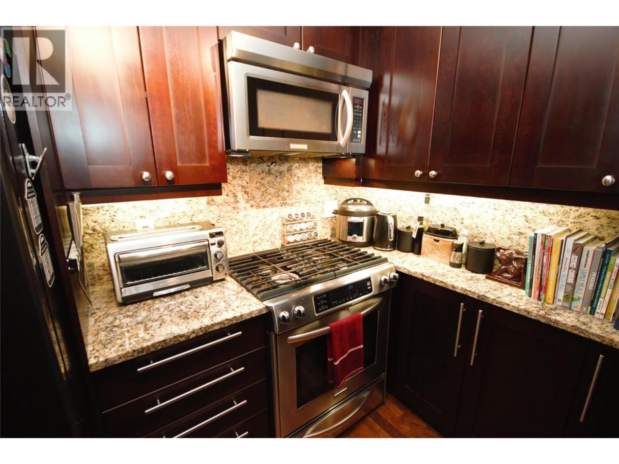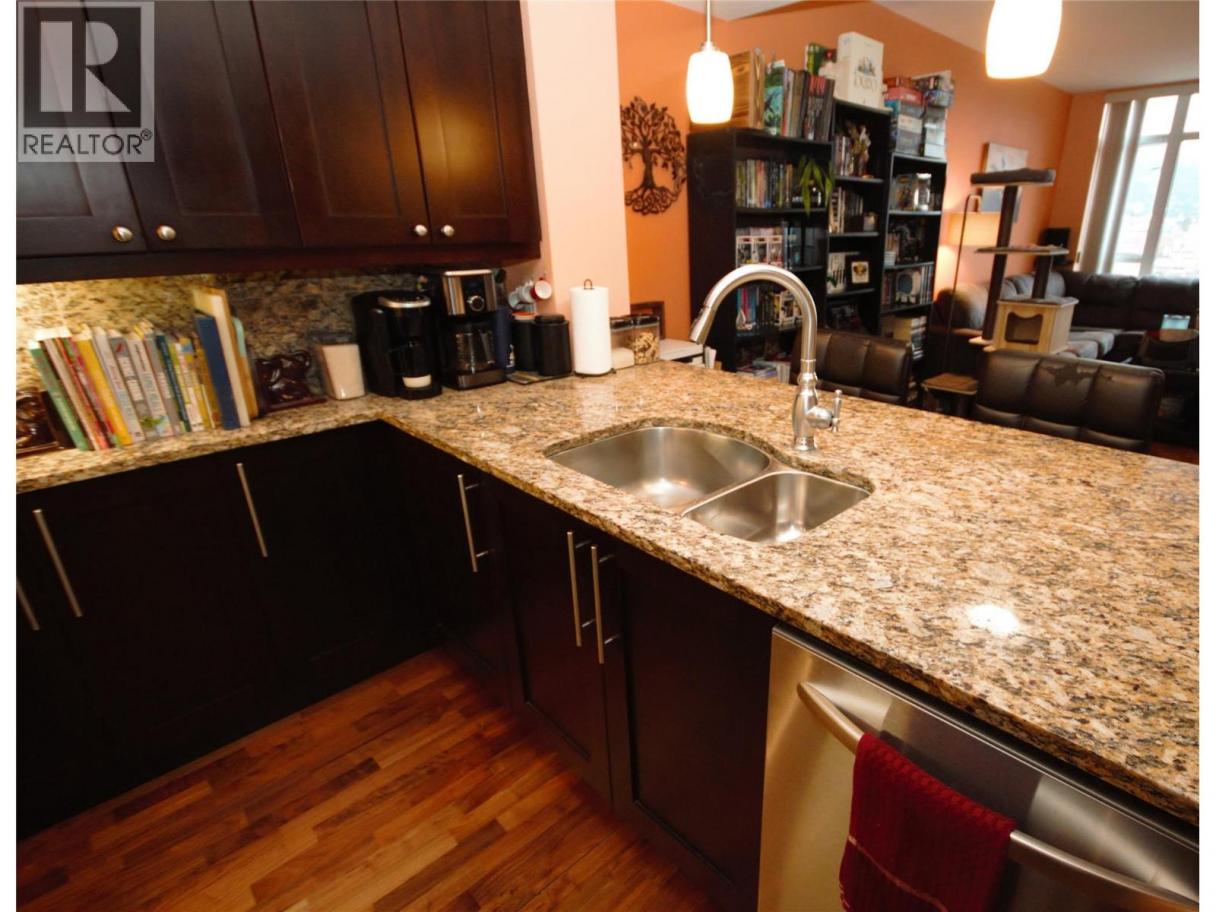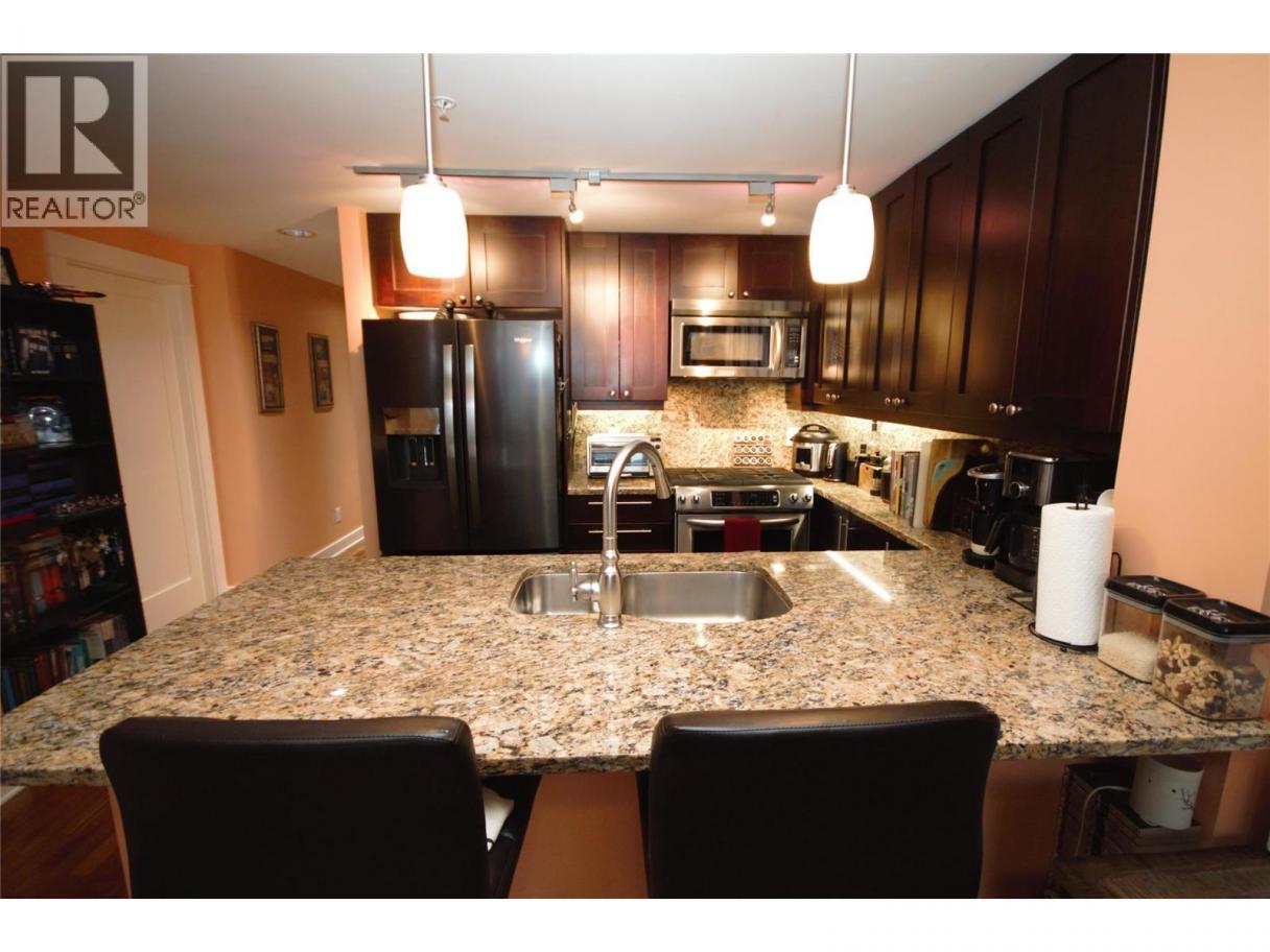 Experience the Okanagan lifestyle at its finest with this 1-bedroom plus den, 869 sqft. condo. Boasting exceptional craftsmanship and an open roomy layout, this unit is filled with natural sunlight and offers large comfortable living spaces. Views to the South offer a great vantage to overlook the city and mountains from the private balcony with gas BBQ hookup. High-quality finishes are evident throughout, with granite countertops, under cabinet lighting and stainless-steel appliances complementing the modern design. The three-building complex provides outstanding amenities, including guest suites, two fitness rooms, bicycle storage, extra storage, and secure underground parking. These buildings also go above and beyond by offering an outdoor pool, hot tub, saunas, social and games rooms, secured outdoor garden areas, a communal patio BBQ zone for entertaining, personal wine storage lockers, a car wash bay, and its own putting green for golf enthusiasts. Pets are welcome, so your furry friends can enjoy life here too! The location is unbeatable, just steps from beaches, parks, and recreational options, with Okanagan Lake directly across the street and the downtown shopping district, walking trails, marina, restaurants, pubs, and a golf course nearby. For more information or to book your private showing contact Cameron at 250-274-0100. (id:6769)