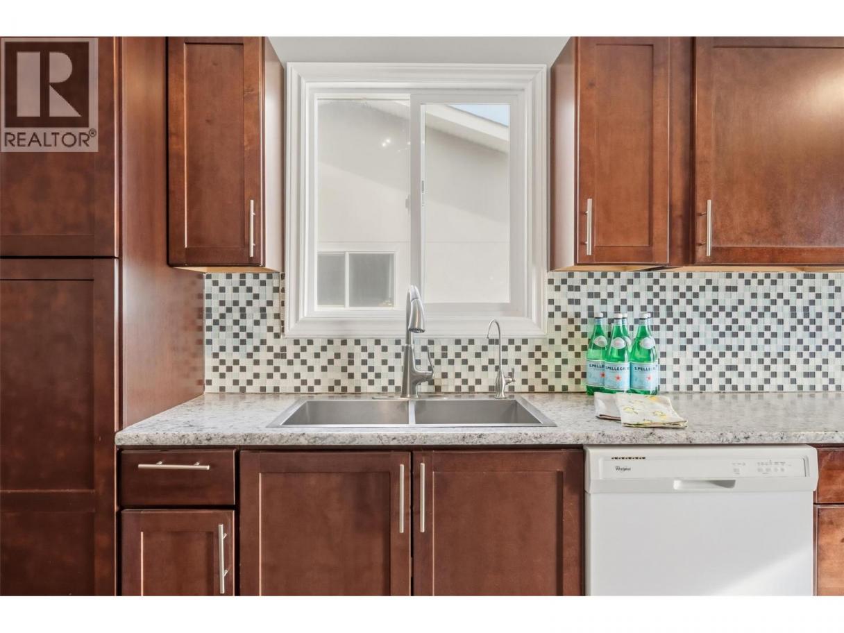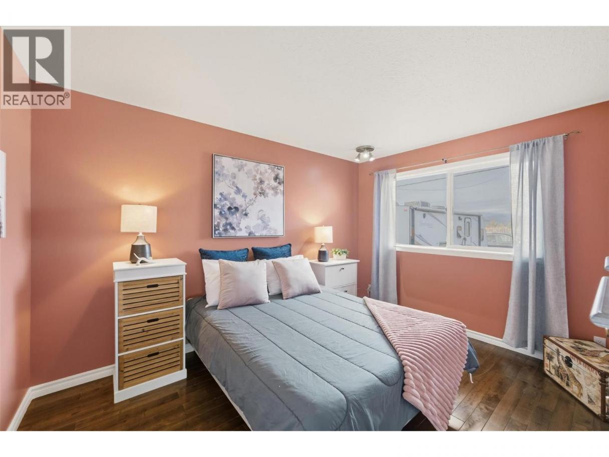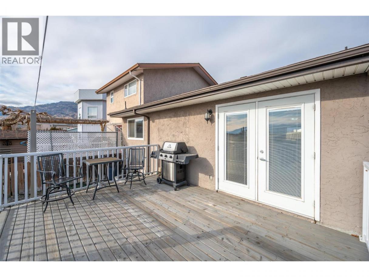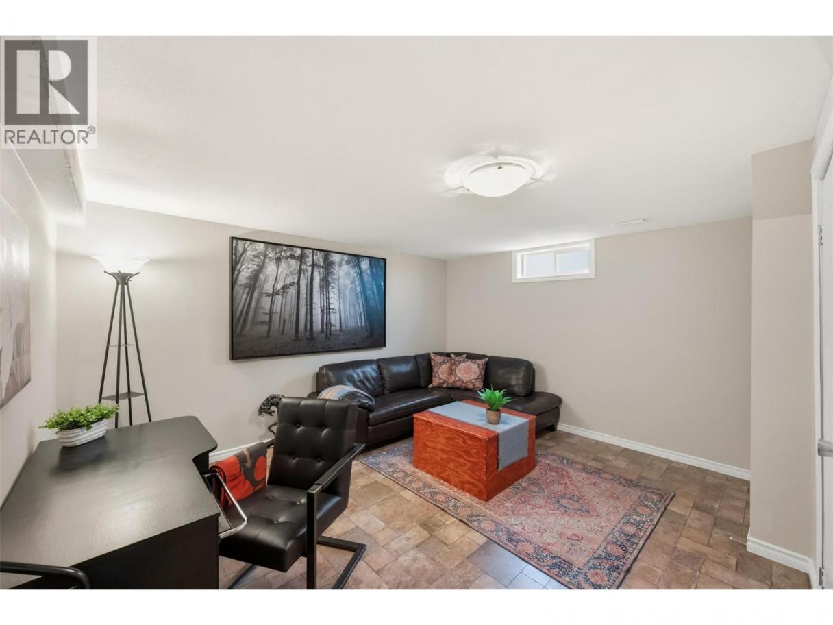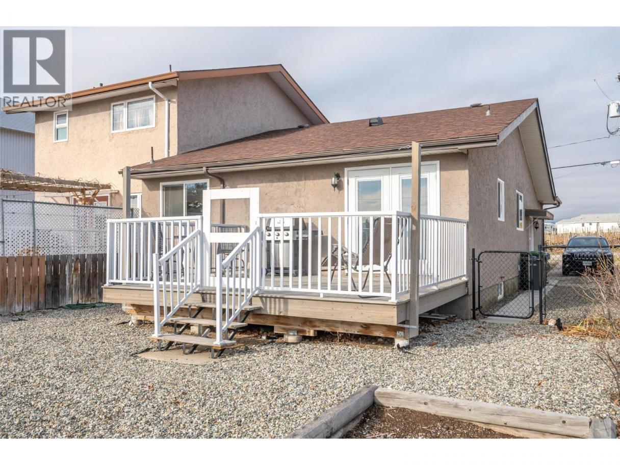 This updated, 2+1 bedroom, half duplex is ideal for first time buyers, a growing family or retirees. Alongside the generous driveway, the beautiful, desert-scaped front yard features massive, low maintenance cacti. Just a few steps up from the split level side entry, you'll find a bright, updated, open concept living room and spacious kitchen-dining combination. Oversized windows in the living and dining rooms, and a double French door walkout from the kitchen flood this space with natural light. Ideal for entertaining, the main level features continuous, chocolate brown hardwood flooring, abundant matching cabinetry including a kitchen island, and a gas range. Delivering easy, one-level living, the main floor is completed by two large bedrooms with generous closets, flanking a 5 piece bath with elegant double vanity and deep soaker tub. Downstairs you'll find a generous home office/den that could also serve as a guest bedroom, and a massive finished recreation room, both with practical vinyl flooring. This level also features a 4 piece bathroom with double vanity and glass enclosed corner shower, along with spacious, finished laundry, and unfinished utility and storage rooms. At the rear of this home the kitchen walks out to the generous, rear deck with gas BBQ and gate ideal for containing toddlers and pets. The rear yard is fully fenced with low maintenance gravel ground cover and features a raised gardening bed. Dimensions are approximate. Buyer to confirm if important. (id:6769)