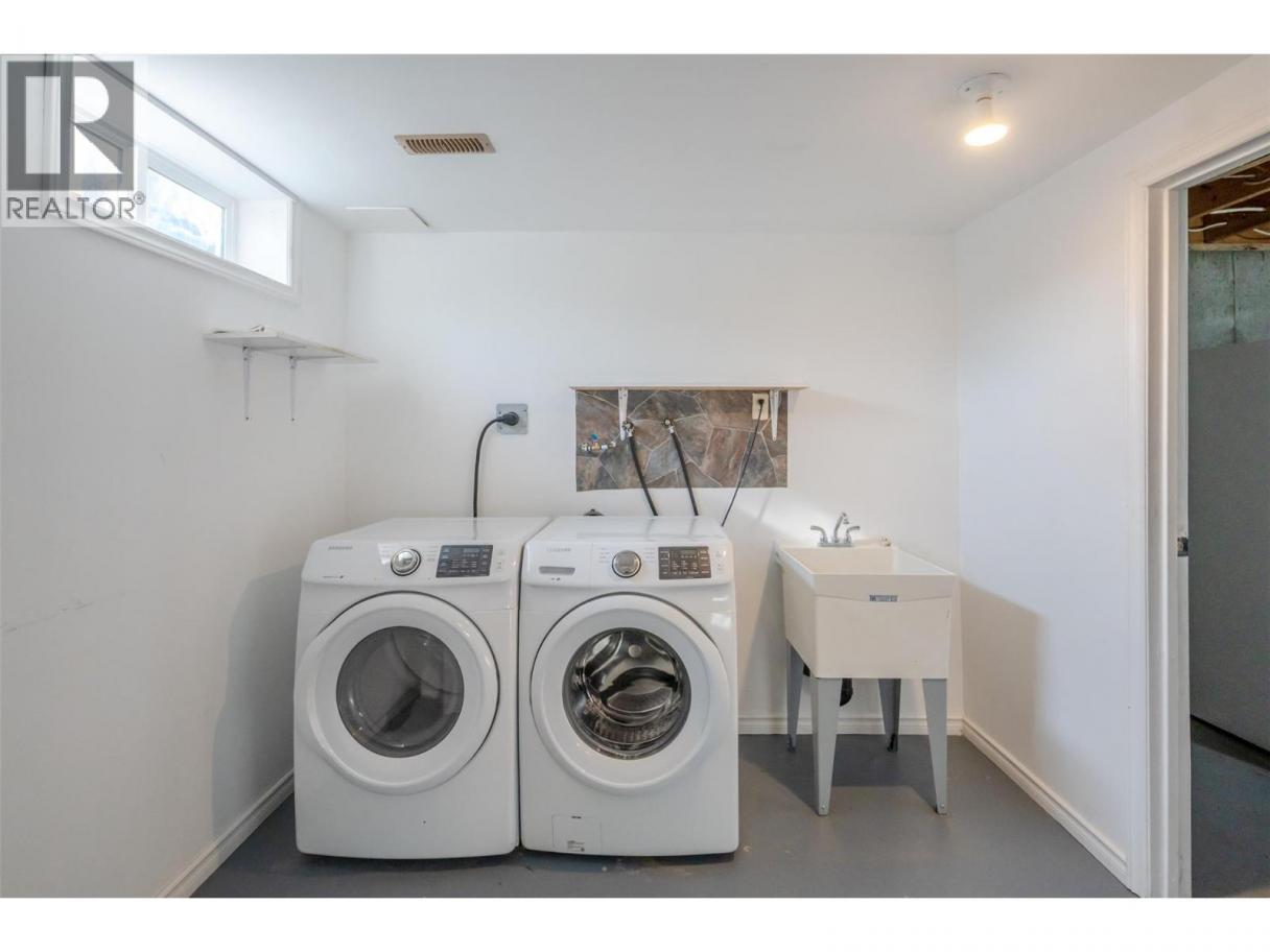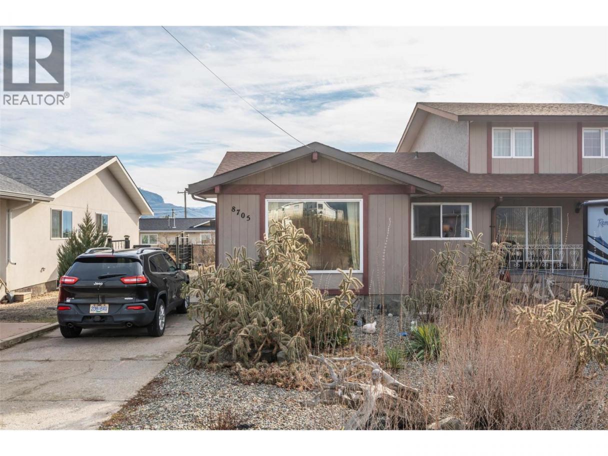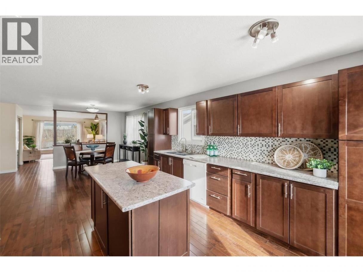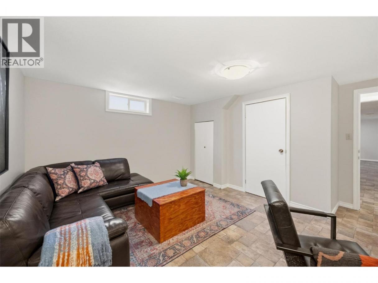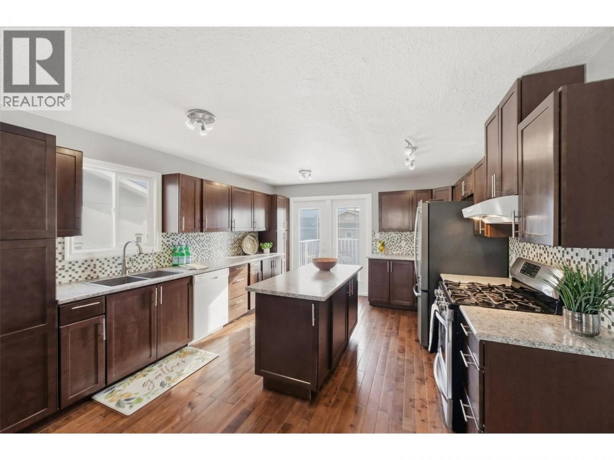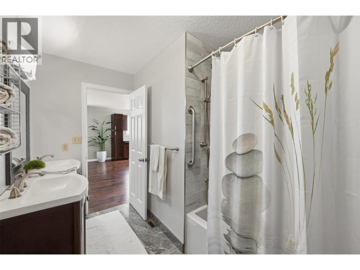 This updated, 2+1 bedroom, half duplex is ideal for first time buyers, a growing family or retirees. Alongside the generous driveway, the beautiful, desert-scaped front yard features massive, low maintenance cacti. Just a few steps up from the split level side entry, you'll find a bright, updated, open concept living room and spacious kitchen-dining combination. Oversized windows in the living and dining rooms, and a double French door walkout from the kitchen flood this space with natural light. Ideal for entertaining, the main level features continuous, chocolate brown hardwood flooring, abundant matching cabinetry including a kitchen island, and a gas range. Delivering easy, one-level living, the main floor is completed by two large bedrooms with generous closets, flanking a 5 piece bath with elegant double vanity and deep soaker tub. Downstairs you'll find a generous home office/den that could also serve as a guest bedroom, and a massive finished recreation room, both with practical vinyl flooring. This level also features a 4 piece bathroom with double vanity and glass enclosed corner shower, along with spacious, finished laundry, and unfinished utility and storage rooms. At the rear of this home the kitchen walks out to the generous, rear deck with gas BBQ and gate ideal for containing toddlers and pets. The rear yard is fully fenced with low maintenance gravel ground cover and features a raised gardening bed. Dimensions are approximate. Buyer to confirm if important. (id:6769)