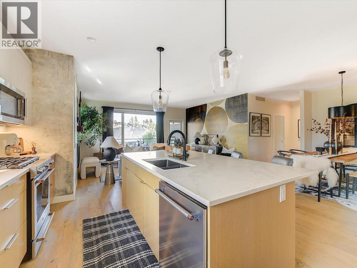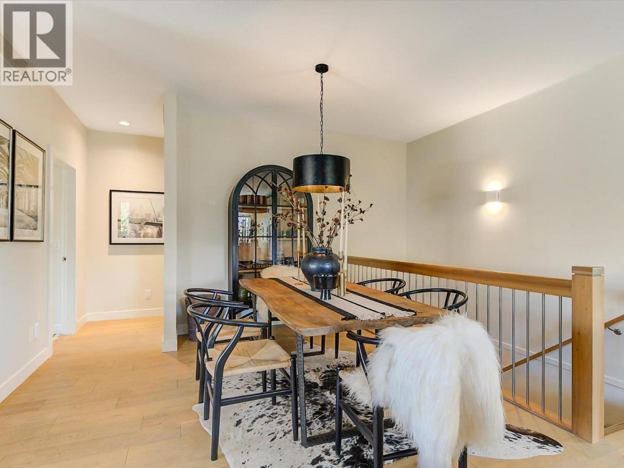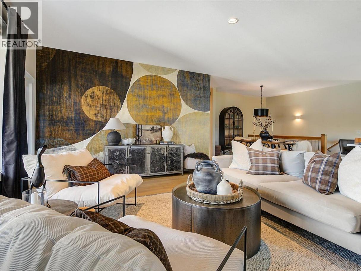 This semi-custom rancher-style townhome combines timeless design with thoughtful, designer finishes that elevate both comfort and style. With over 2,700 sq. ft. of living space, 4 bedrooms, 3 bathrooms, and more than $30,000 in premium upgrades, it offers true main floor living. The open-concept main level showcases wide-plank hardwood floors, a gas fireplace, and expansive windows that flood the home with natural light. Curated details such as feature walls, modern lighting, and custom HD blinds add a refined touch throughout. The chef-inspired kitchen is the heart of the home, featuring quartz countertops, an oversized island, pantry, KitchenAid stainless appliances with gas range, and soft-close cabinetry—ideal for family living or effortless entertaining. The main-floor primary suite is a private retreat with a spa-like 5-piece ensuite and walk-in closet. The fully finished walkout basement extends the living space with a paneled feature wall, LED fireplace, wet bar, wine room, 2 bedrooms, a full bath, and a covered BBQ patio—perfect for gatherings. Additional features include a heated garage with custom cabinets, on- demand hot water, high-efficiency furnace, ample parking, and remaining home warranty. Situated in a quiet neighbourhood with a strong sense of community and steps from scenic Wilden trails, this home offers the perfect blend of style, functionality, and location for families or anyone seeking something truly special. (id:6769)
