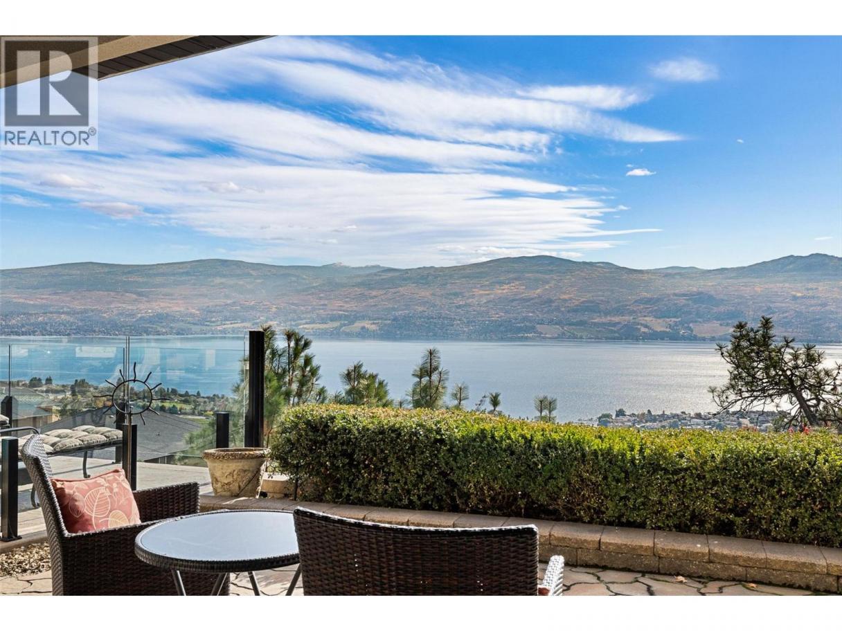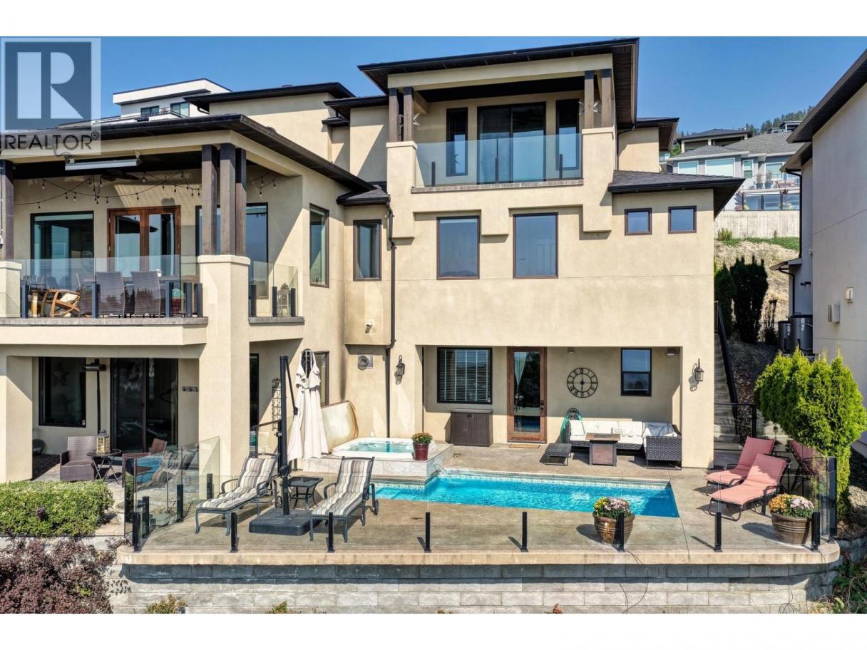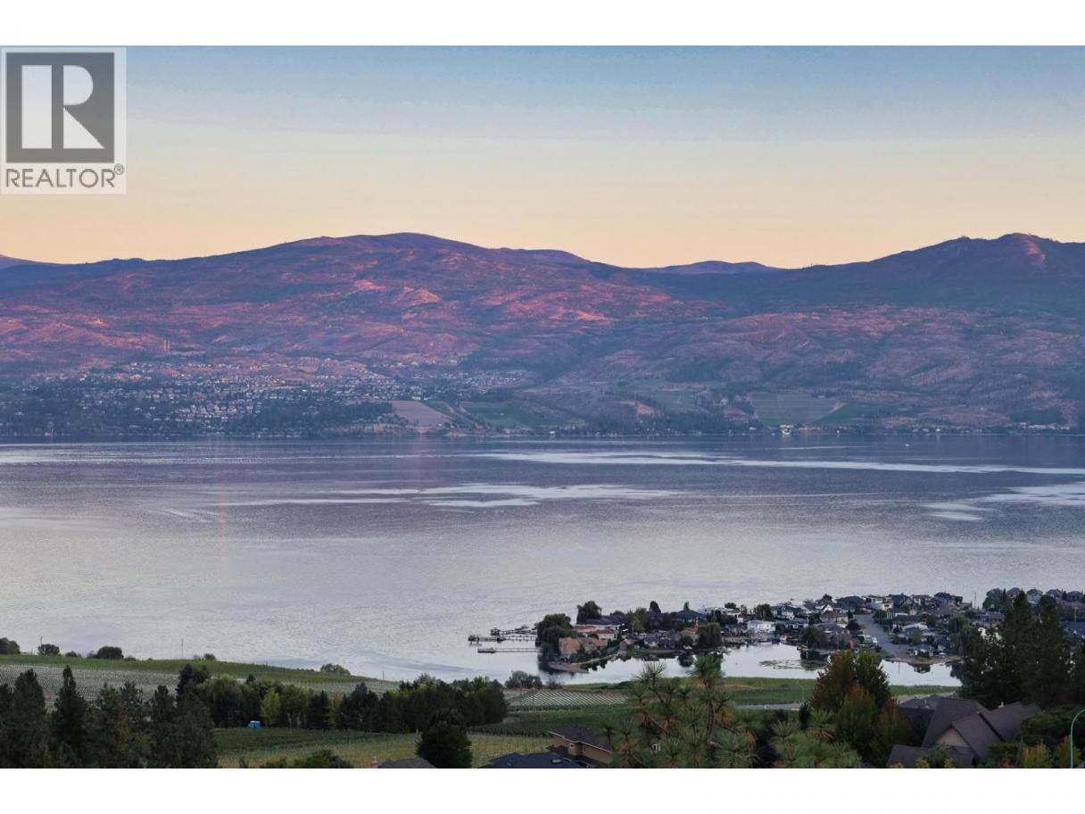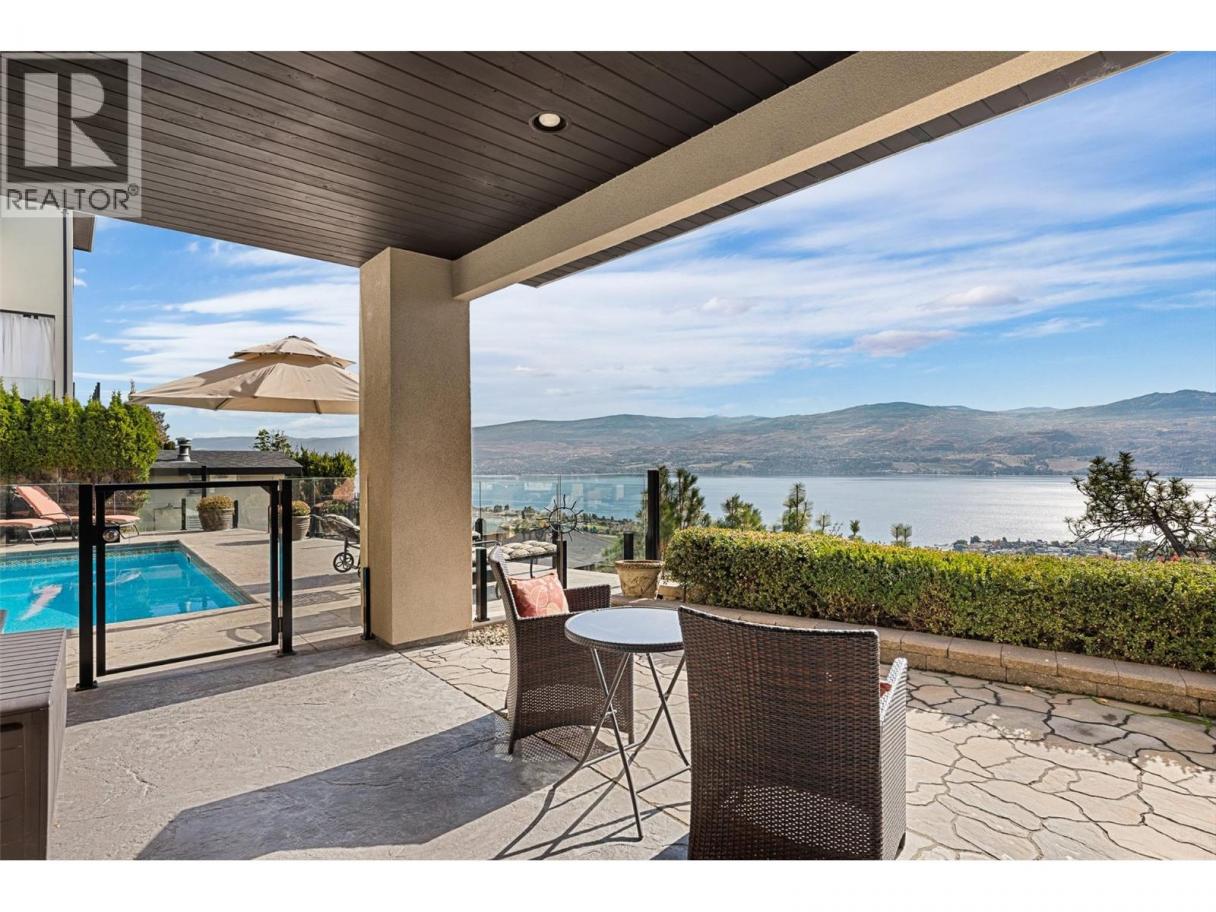 Set above Okanagan Lake in Lakeview Heights, this West Kelowna home offers the warmth and character of a Mediterranean-inspired villa, subtly echoing the relaxed hillside homes of Tuscany. Just minutes from the Westside Wine Trail, it feels connected to the surrounding vineyards, with natural stone, rich wood detailing, and sunlit rooms that open to the lake. On the main level, timber beams, textured walls, and a stone fireplace anchor the great room, where French doors lead to a covered lakeview patio with wood-inlay ceilings, infrared heaters, and space for relaxed dinners outdoors. The kitchen features hardwood floors, granite countertops, a contrasting island with seating, timeless cabinetry, and Bosch and Bertazzoni appliances. The entire upper floor is devoted to the primary suite, offering two walk-in closets, a spa-style ensuite with heated travertine, soaker tub, and walk-in shower, plus a private covered balcony with lake and valley views. On the walkout level, a generous recreation room, custom bar, and direct access to the pool terrace make entertaining effortless, from afternoon swims to evenings in the hot tub or around the firepit. A self-contained studio suite on the lower level adds flexibility for extended stays, or multi-generational living. Manicured landscaping, water features, an oversized double garage with abundant storage, and a convenient tiled dog wash complete a home that blends classic Mediterranean detailing with the relaxed Okanagan lifestyle. (id:6769)