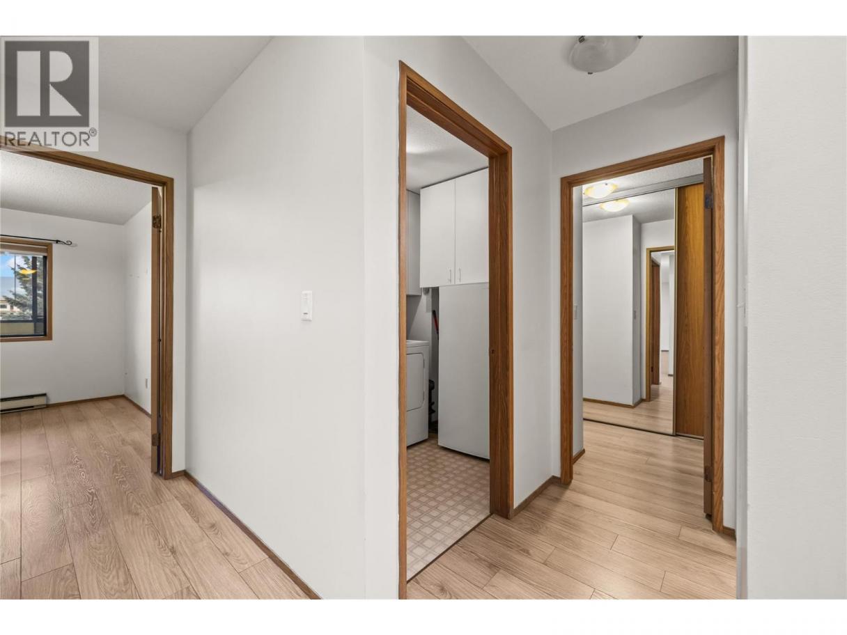 You will love living here at Springfield Manor a +55 community, no pets, quiet building and a great central location. Top Floor offers lessor noise as no occupants above unit, also 2 skylights offer more natural light. East facing sunroom to greet the morning sun as you look up onto Black Mountain views and a sunroom that is not too hot in the summer afternoons. 2 skylights for lots of natural light, primary bedroom /ensuite/ large closet and 2nd bedroom with adjacent 2nd full bathroom. Kitchen has newer counter top, newer laminate flooring throughout, laundry has pantry extra storage too. This unit offers wheelchair access as all doors for wheelchair allowance, that is if required. This is a well maintained building offering, presently hallways being freshly painted and new carpets being installed. 2 storage lockers (1 on the 3rd floor and the other off parkade) and 1 covered parking stall to secure entry at the elevator. Lots of guest parking. (id:6769)