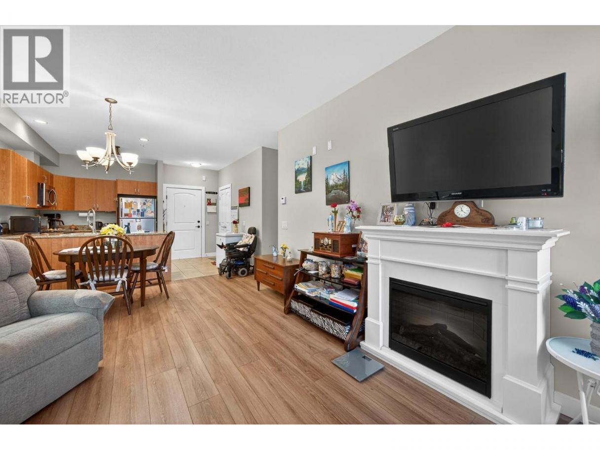 An exceptional opportunity awaits at Mayfair–RiverBend! This bright, spacious 2-bedroom home offers an inviting open-concept design, complete with a well-equipped kitchen featuring abundant cupboard space. The oversized bathroom includes a walk-in shower and direct access to a generous walk-in closet. Large windows fill the dining and living areas with natural light, complemented by an electric built-in fireplace and access to a private balcony that enjoys warm morning and early afternoon sun. Thoughtfully designed for accessibility, the unit features widened doorways and hallways suitable for wheelchair use. Situated in an executive 55+ community with secure entry, the building welcomes you with a beautifully appointed lobby that includes a piano, fireplace, and comfortable seating. River Bend Seniors Community offers a vibrant lifestyle with daily activities and impressive amenities such as an optional dining room, library, media room, gym, community room, storage locker, and electric scooter parking. Outdoors, residents can enjoy a raised community garden, gazebo, and a scenic walkway leading to the riverfront beach. Convenience is at your doorstep with direct access to a dentist, pharmacy, and hair salon, plus an easy stroll to Brock Shopping Centre—home to Save-On-Foods, Dollar Store, restaurants, a bakery, liquor store, insurance office, and Tim Hortons. Optional outdoor parking is available for $25 per month (waiting list). Rentals and small pets are permitted with some restrictions. A wonderful place to embrace retirement living—contact your REALTOR® today to arrange a viewing! (id:6769)