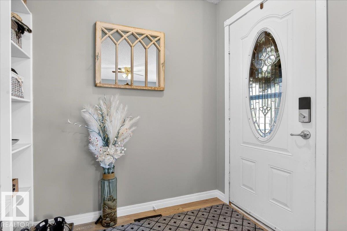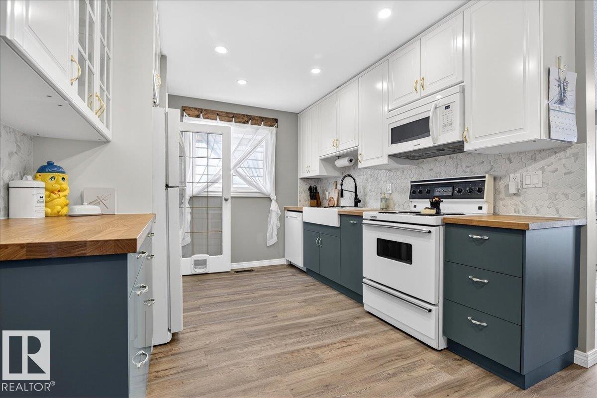 One Look Will Do! Beautifully updated & well maintained bungalow located in the Town of Gibbons. The main floor features newer vinyl windows & luxury vinyl plank flooring. An inviting foyer, front living room with lots of natural light. Brand New Kitchen with Oak Veneer Countertops, Mosaic Back Splash, Apron Farm Sink, Walk-In Pantry etc. Spacious dining area & side door to the fenced in back yard. 3 bedrooms & a 4pc bathroom. The basement has a cozy family room, 3pc bathroom, 4th bedroom, impressive storage space & utility/laundry room with a sink. Lovely east facing back yard with a gazebo & deck, raised garden bed, flowerbeds, large storage shed, parking & alley access. Shingles 2016 & a New Hot Water Tank. Enjoy small town living with just a short commute to Fort Saskatchewan, North Edmonton & CFB Edmonton. Welcome Home! (id:6769)