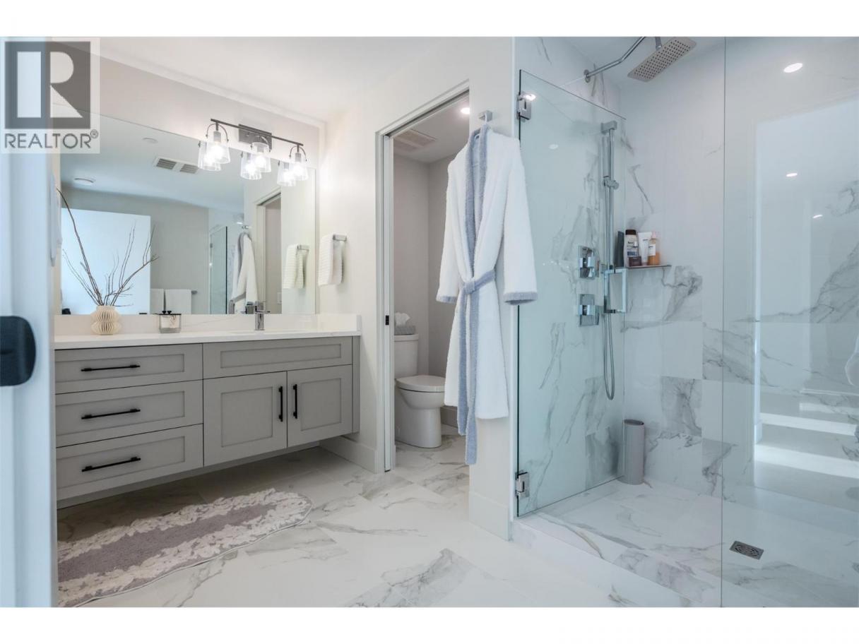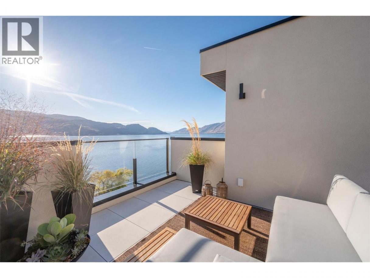 Experience modern Okanagan living in Somerset Heights, Peachland—where top-tier construction, upscale finishes and a West Coast architectural influence meet unparalleled views of Okanagan Lake. This meticulously built townhome is the largest walkout floor plan in the development and benefits from its corner unit location, offering additional windows and enhanced privacy. A private elevator provides effortless access to all floors, suiting a range of lifestyles and age groups. The main floor features a timeless and stunning kitchen with premium appliances, custom cabinetry, and a spacious island. The living and dining area is highlighted by an elegant gas fireplace and a balcony with a barbecue gas hookup while the floor-to-ceiling windows create the sensation of floating above the lake. A dedicated level offers two generous bedrooms and a beautifully appointed 4-piece bathroom for family and guests. The primary suite has its own floor, complete with a walk-in closet, laundry room, and a spa-inspired ensuite with heated floors, soaker tub, and custom tile shower. Above the main floor is a large family/flex room that accesses the crown jewel of the home—a private rooftop patio oasis with a built-in kitchen, tiled flooring, and electric louvered roof, all framed by spectacular lake views. Whether a full-time home or retreat, this residence blends luxury, comfort, and proximity to an abundance of Okanagan amenities and activities. (id:6769)